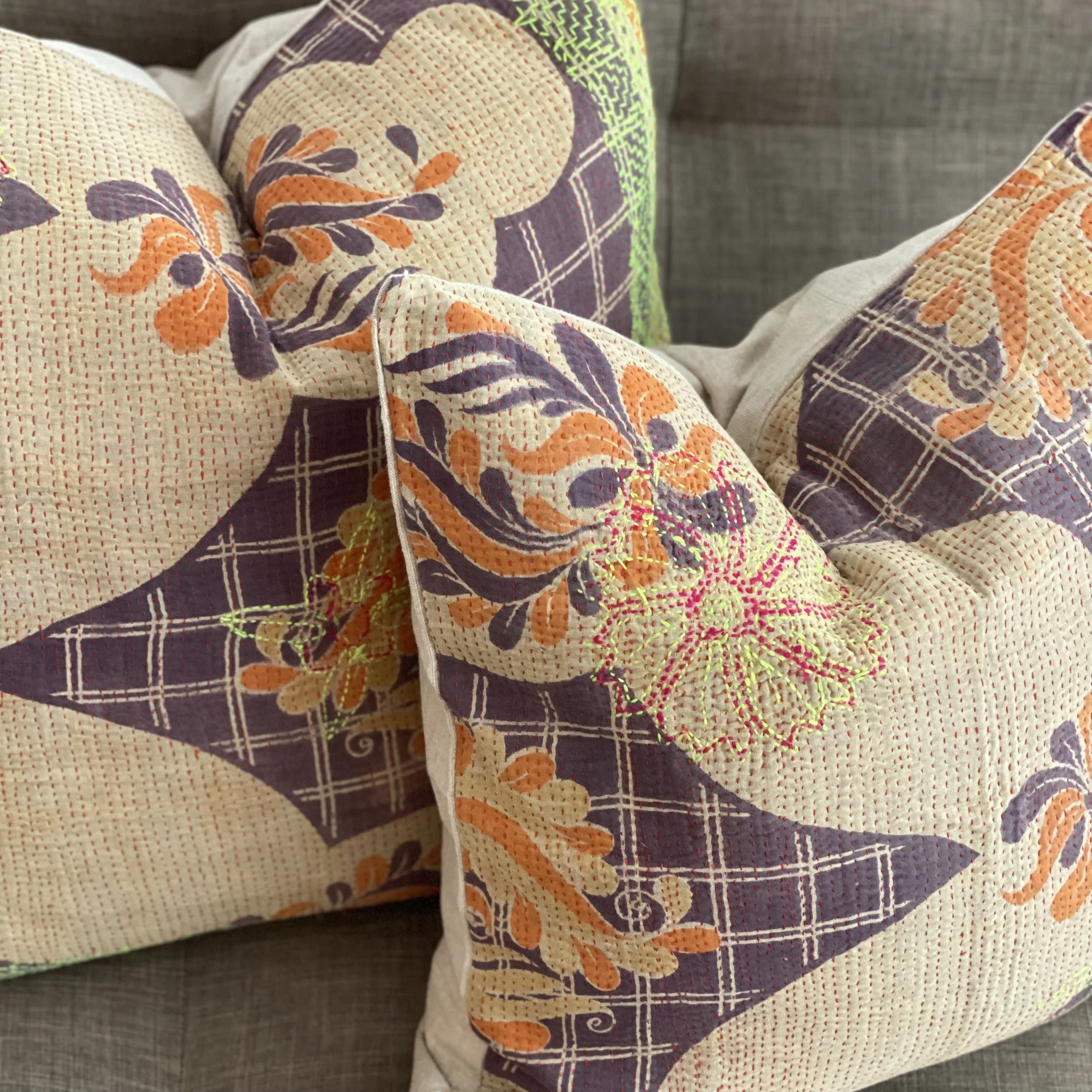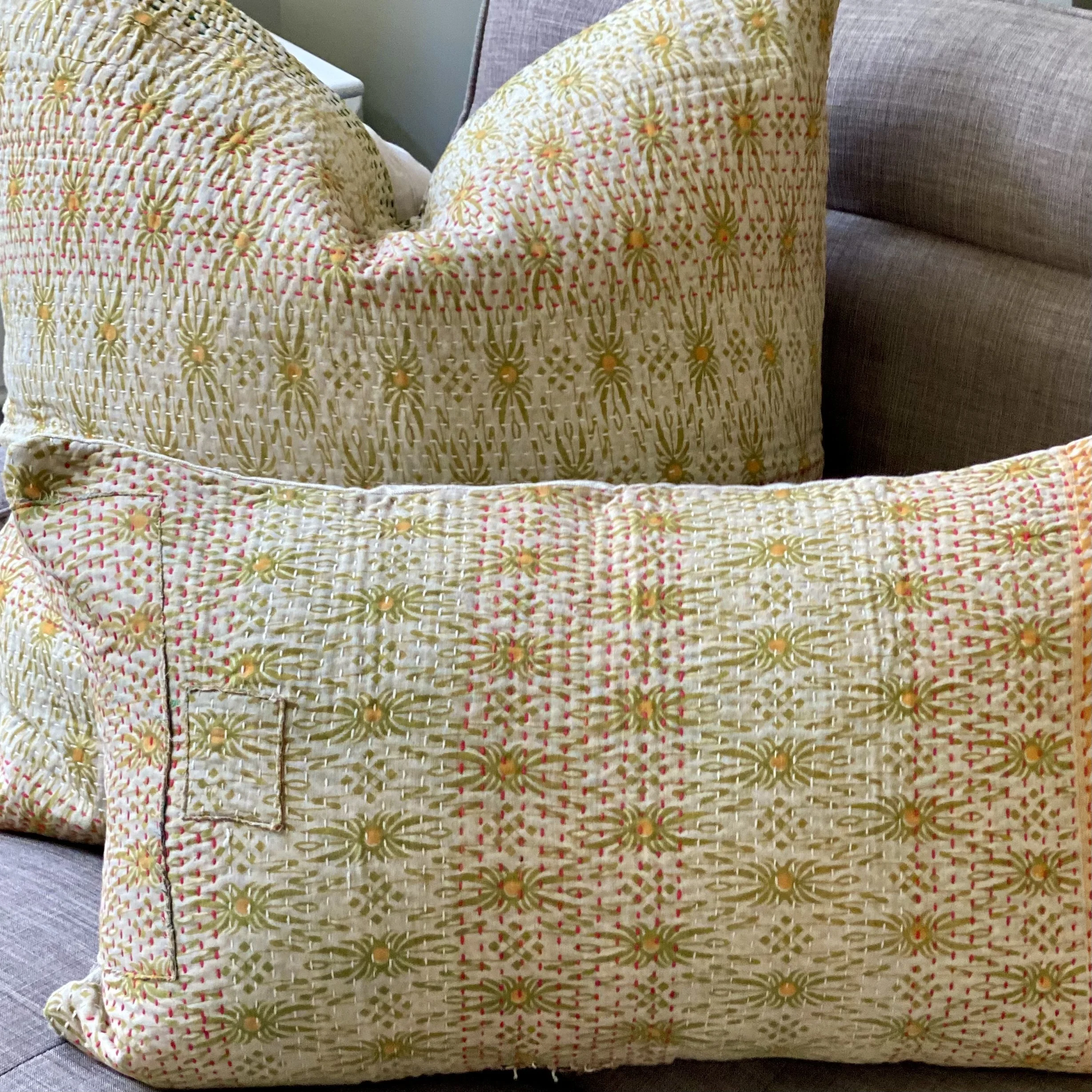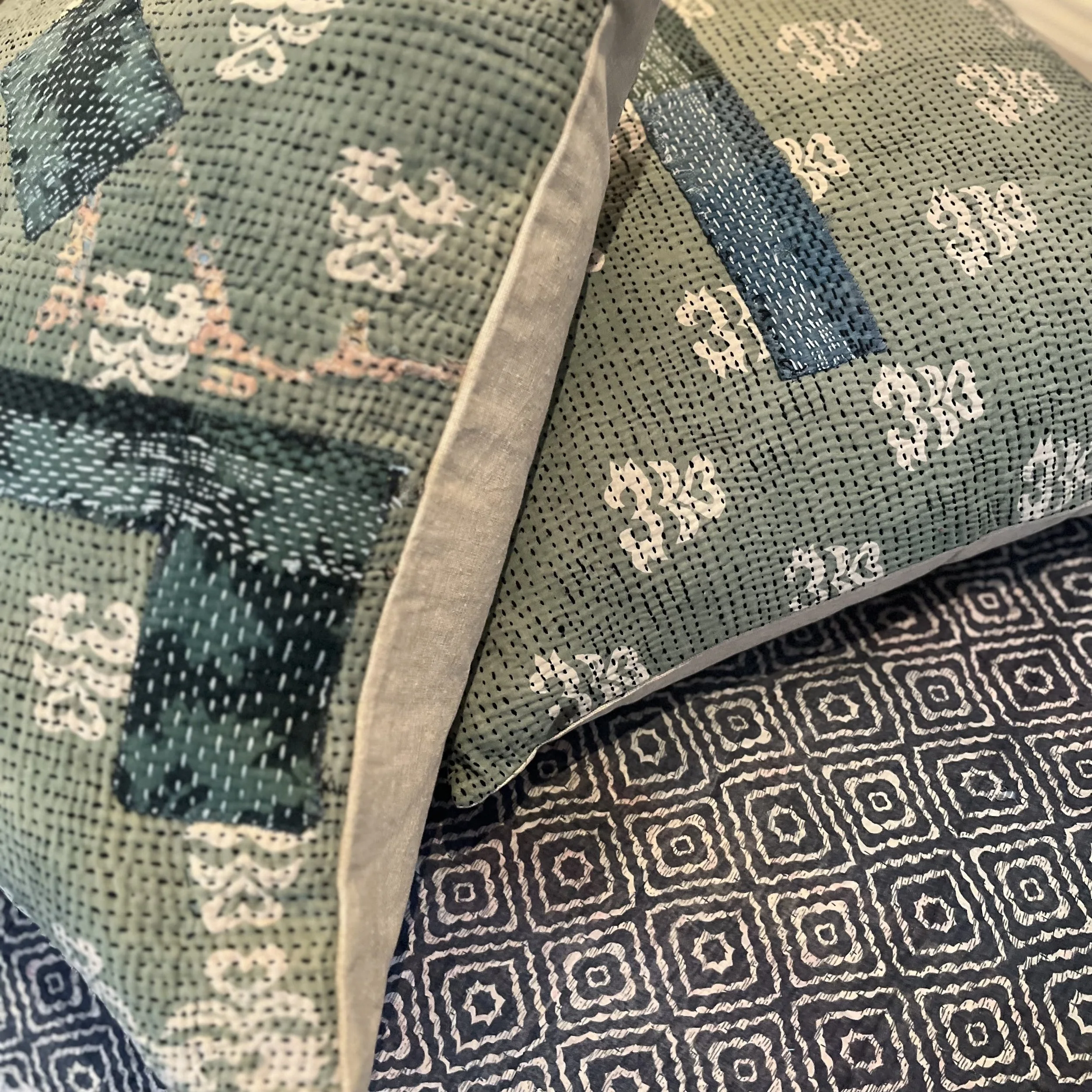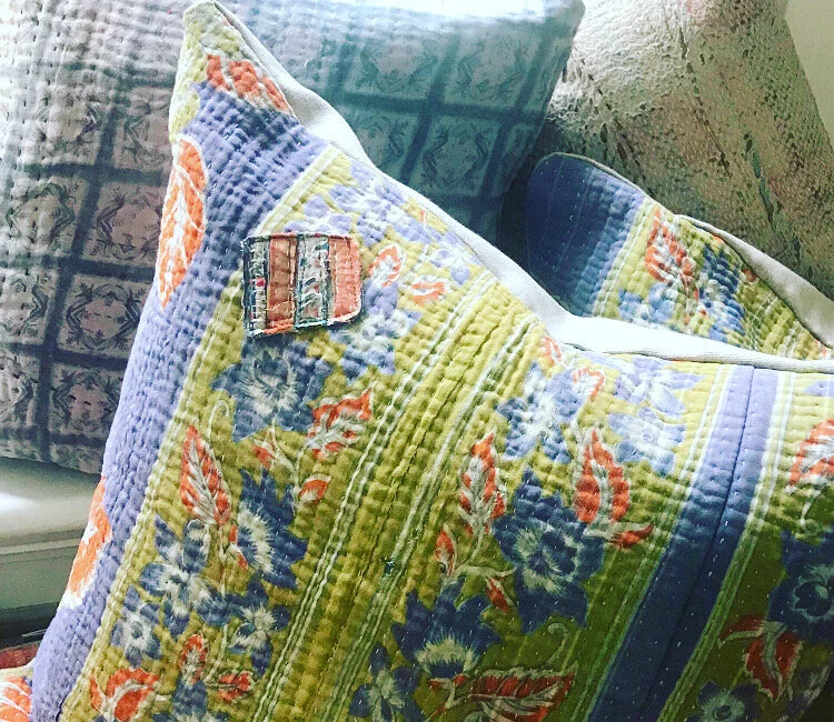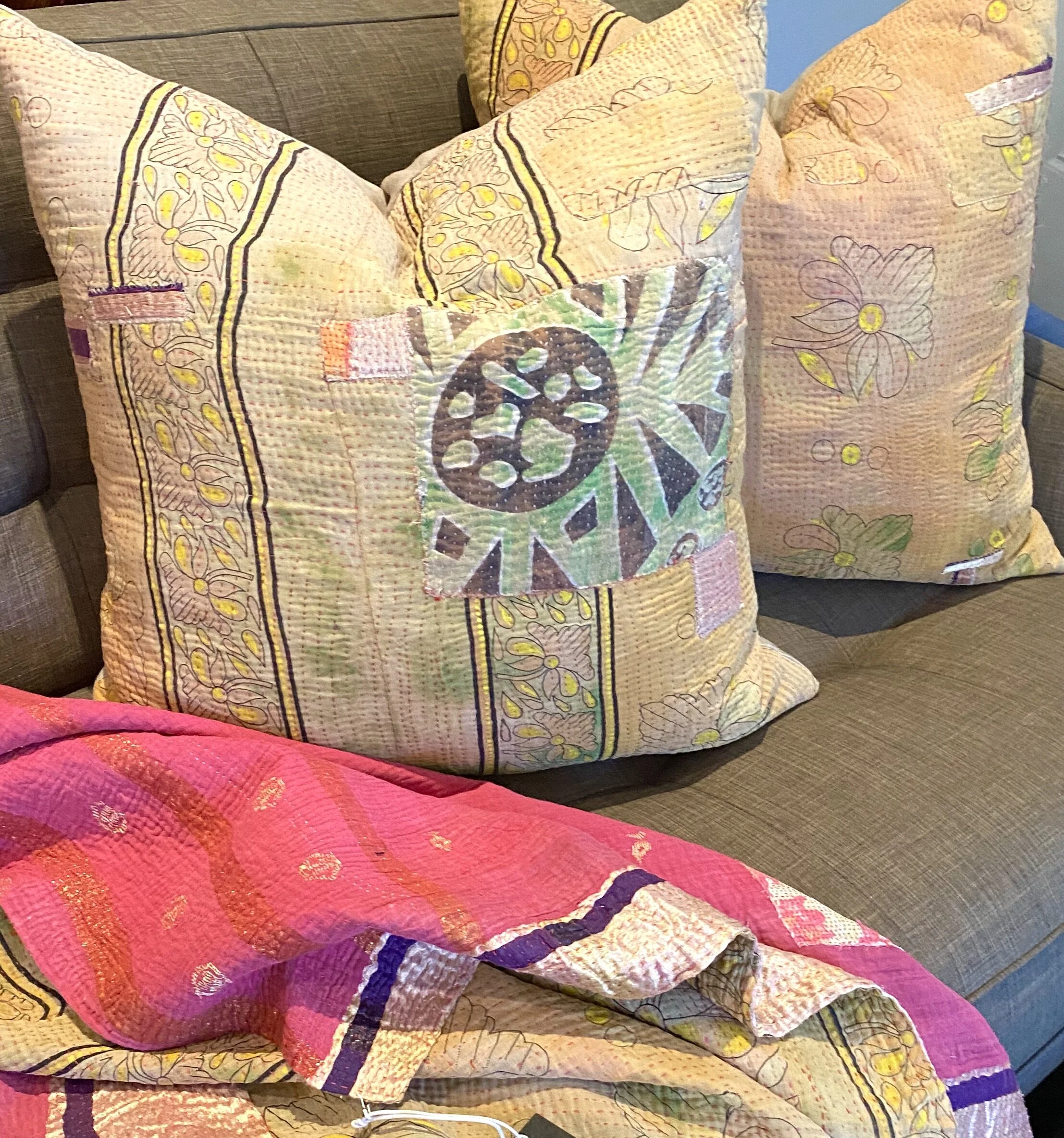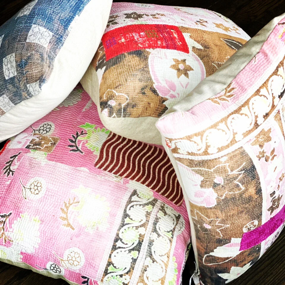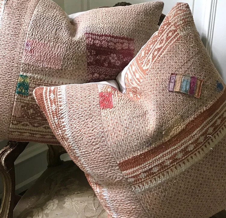 The Face - The face of our pillows are made with organic hand stitched tribal vintage kantha textiles.