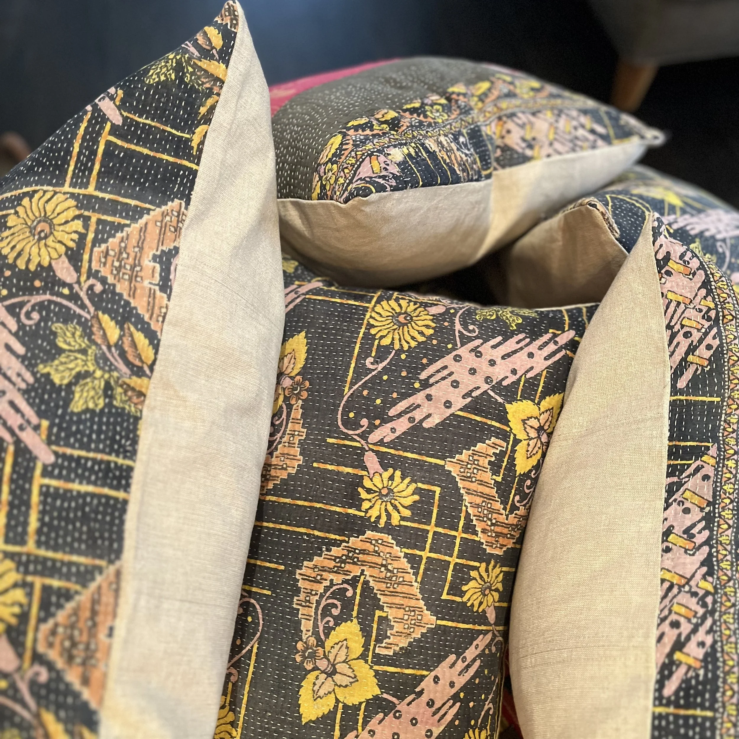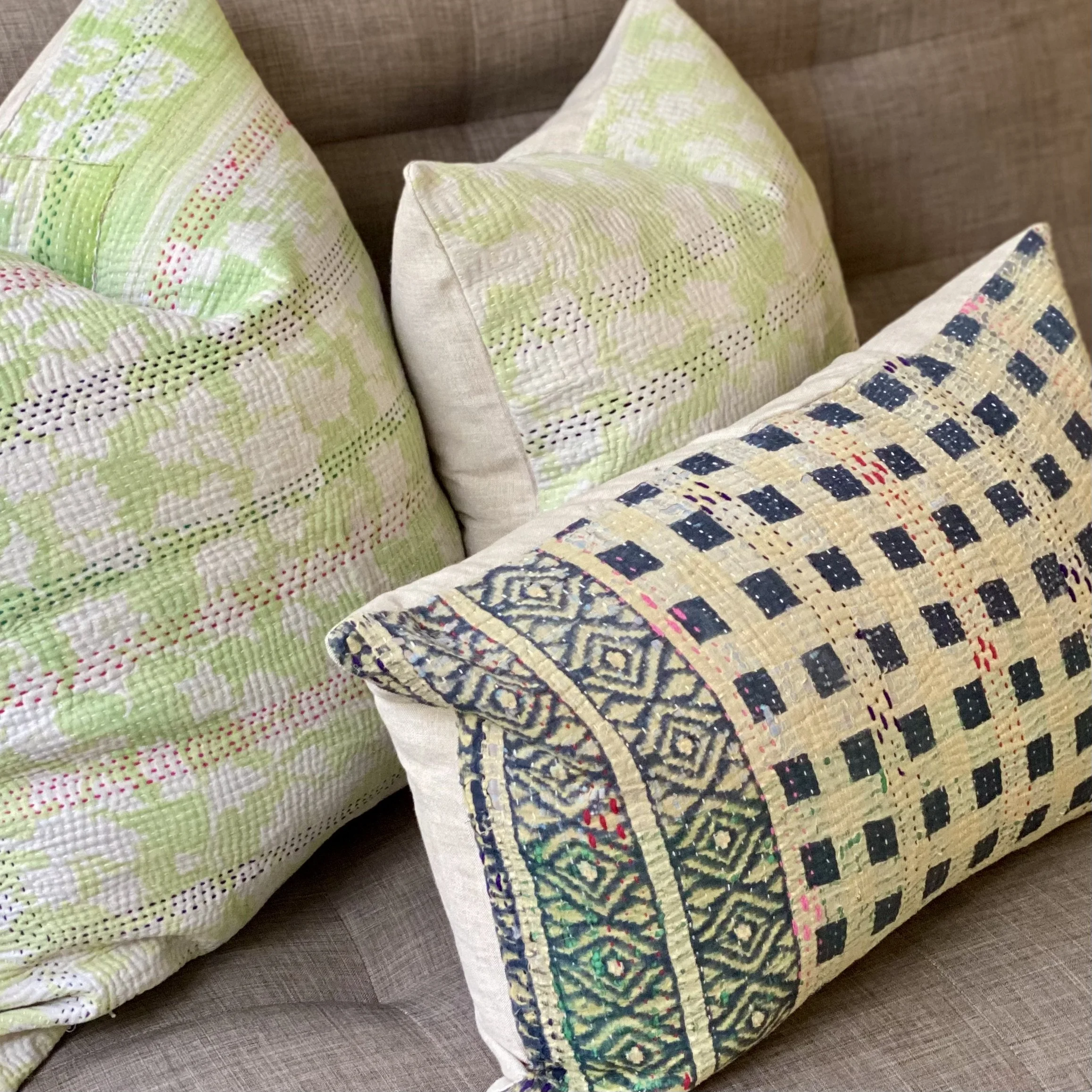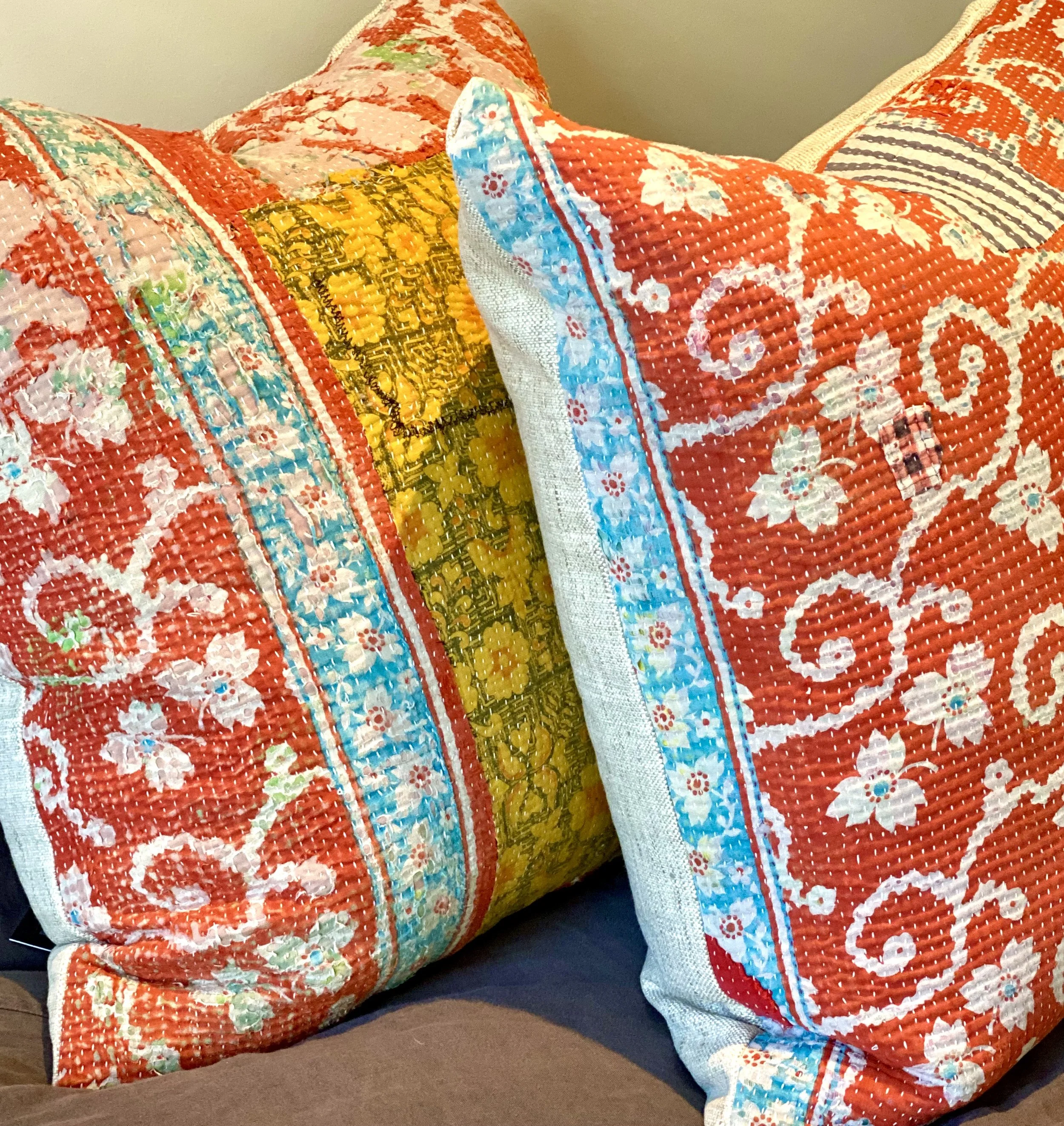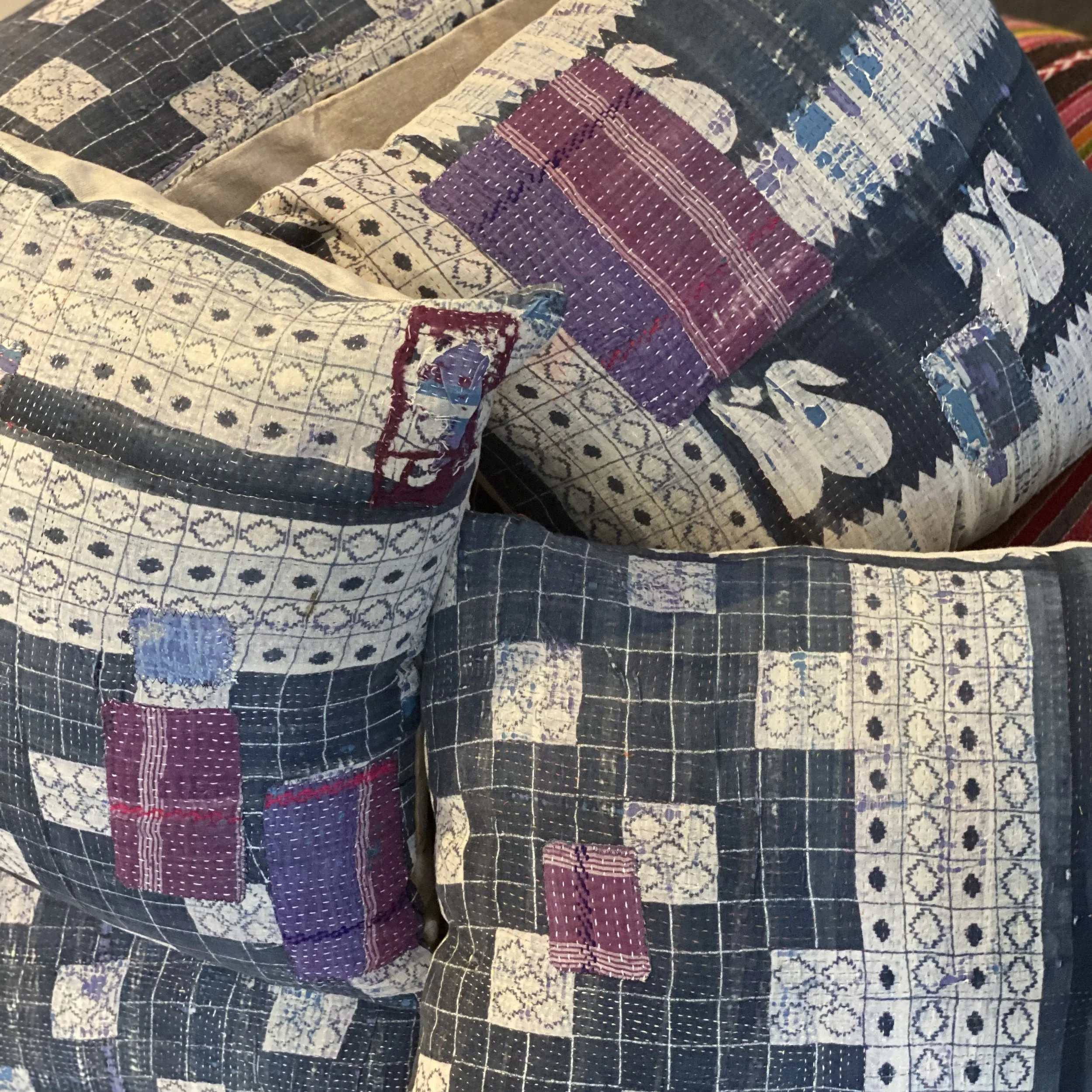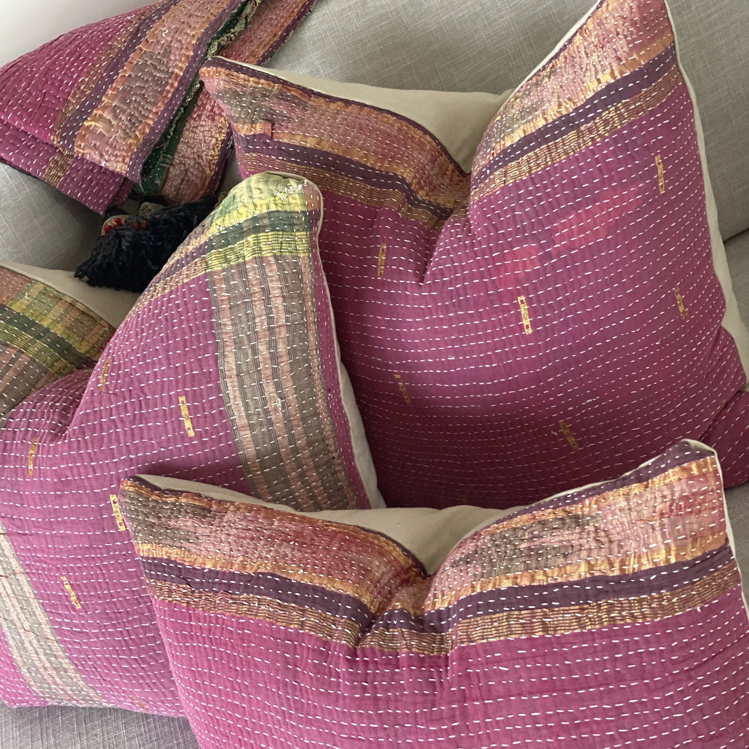 The Face - The face of our pillows are made with organic hand stitched tribal vintage kantha textiles.