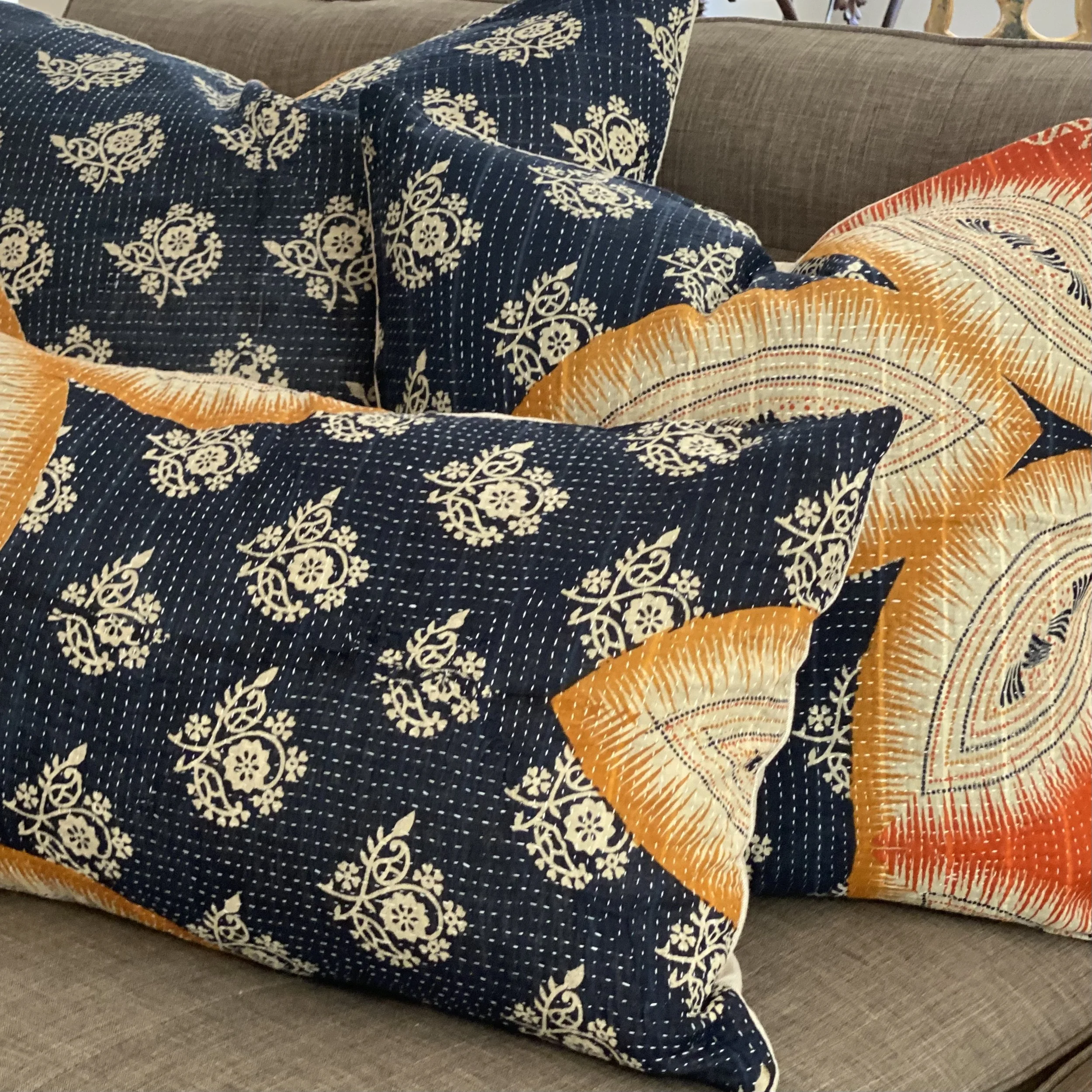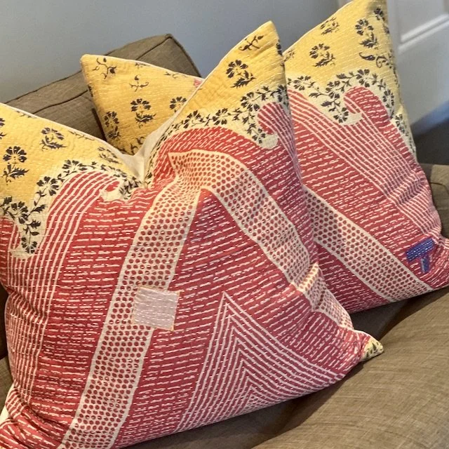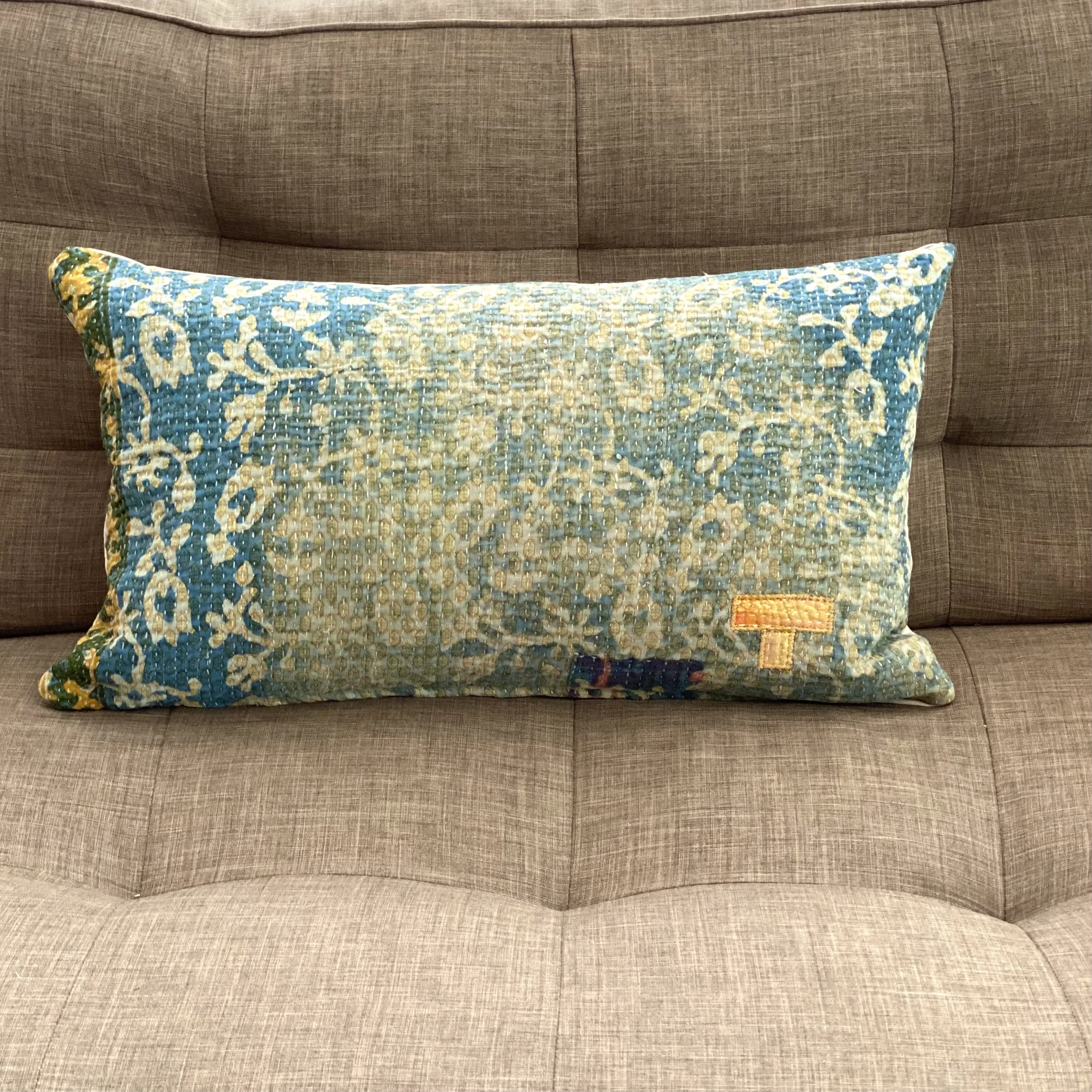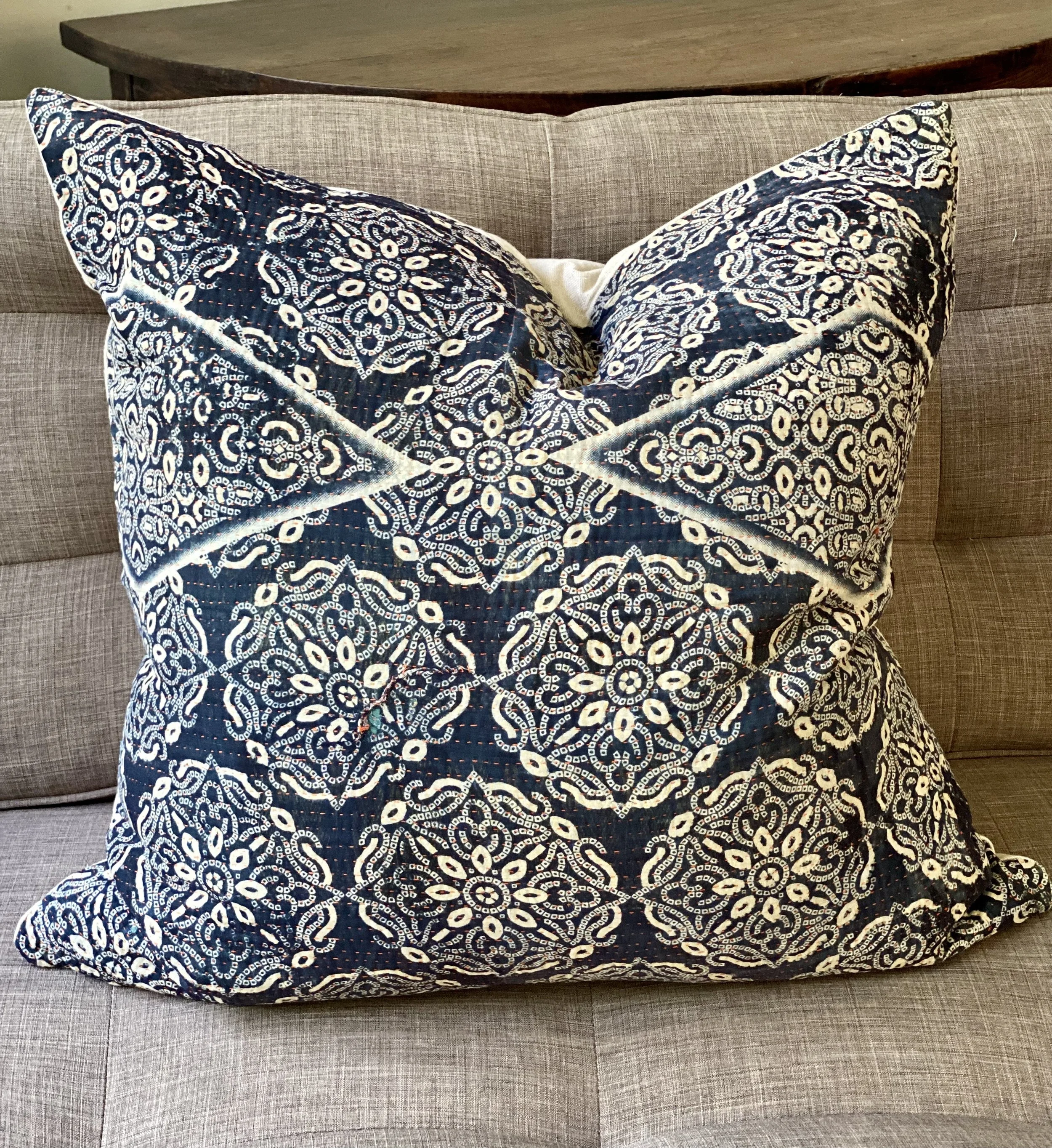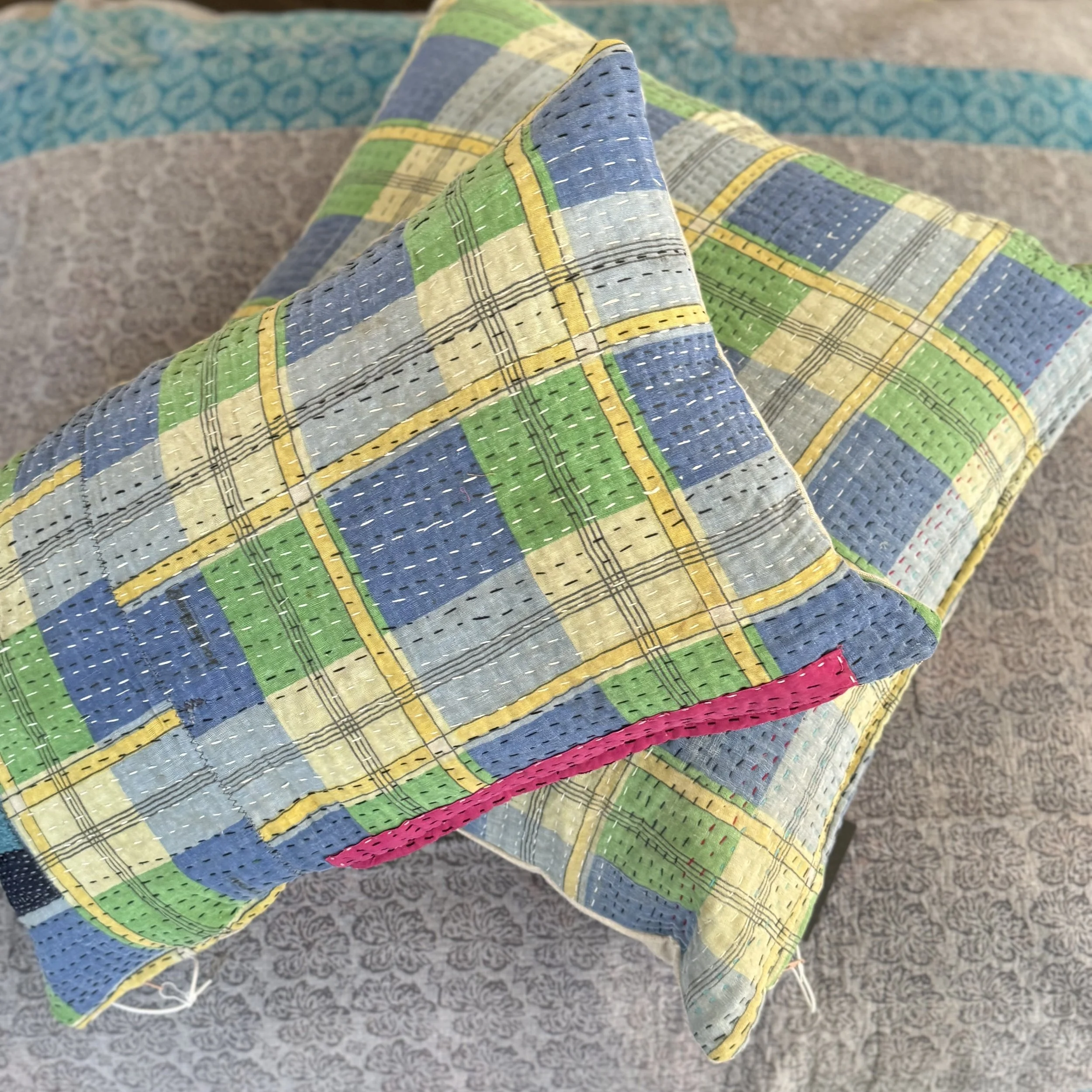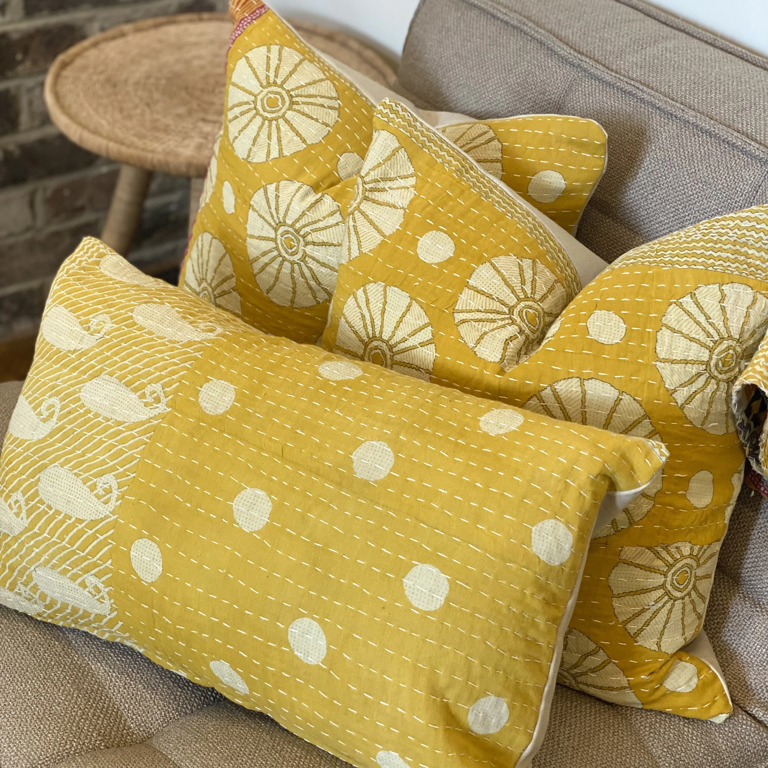 The Face - The face of our pillows are made with organic hand stitched tribal vintage kantha textiles.