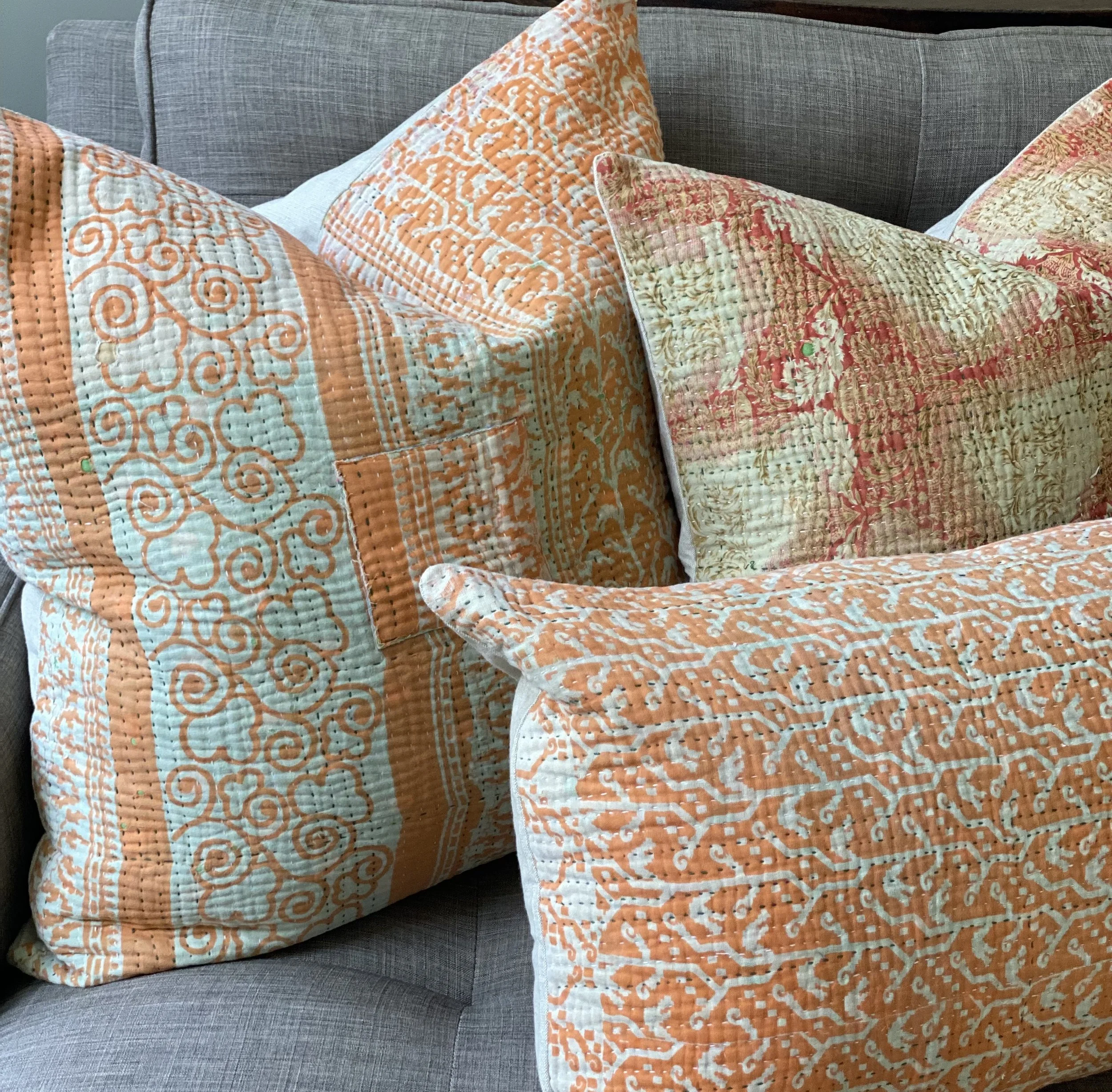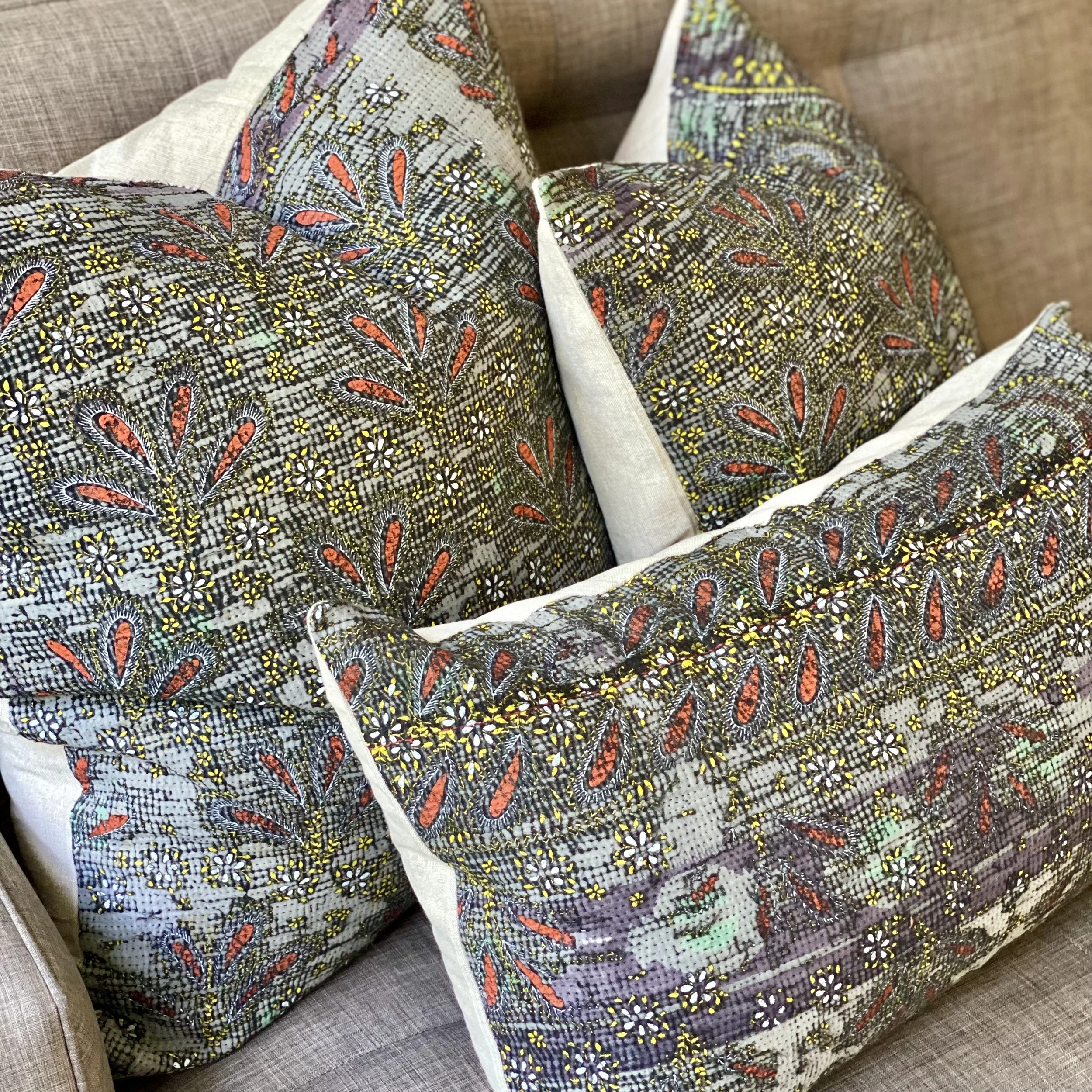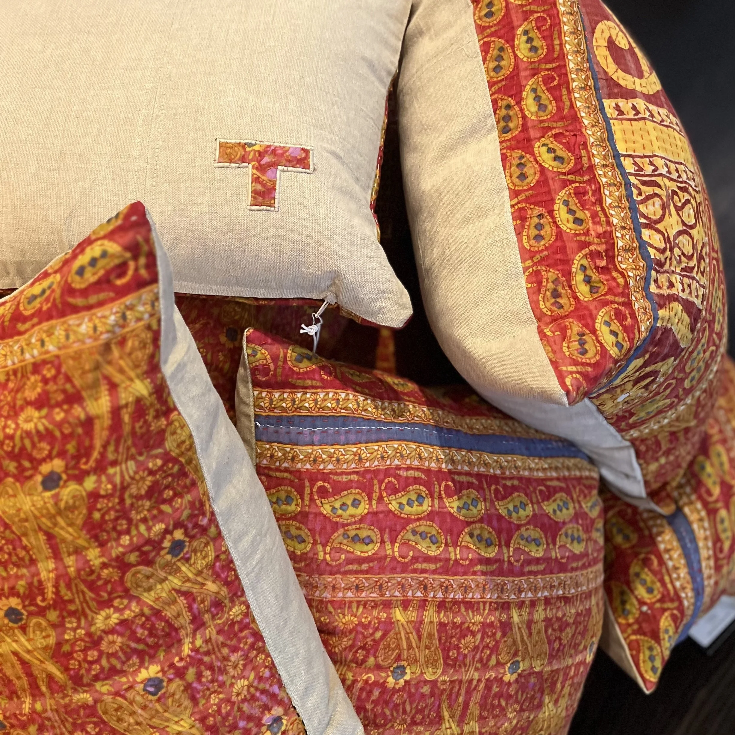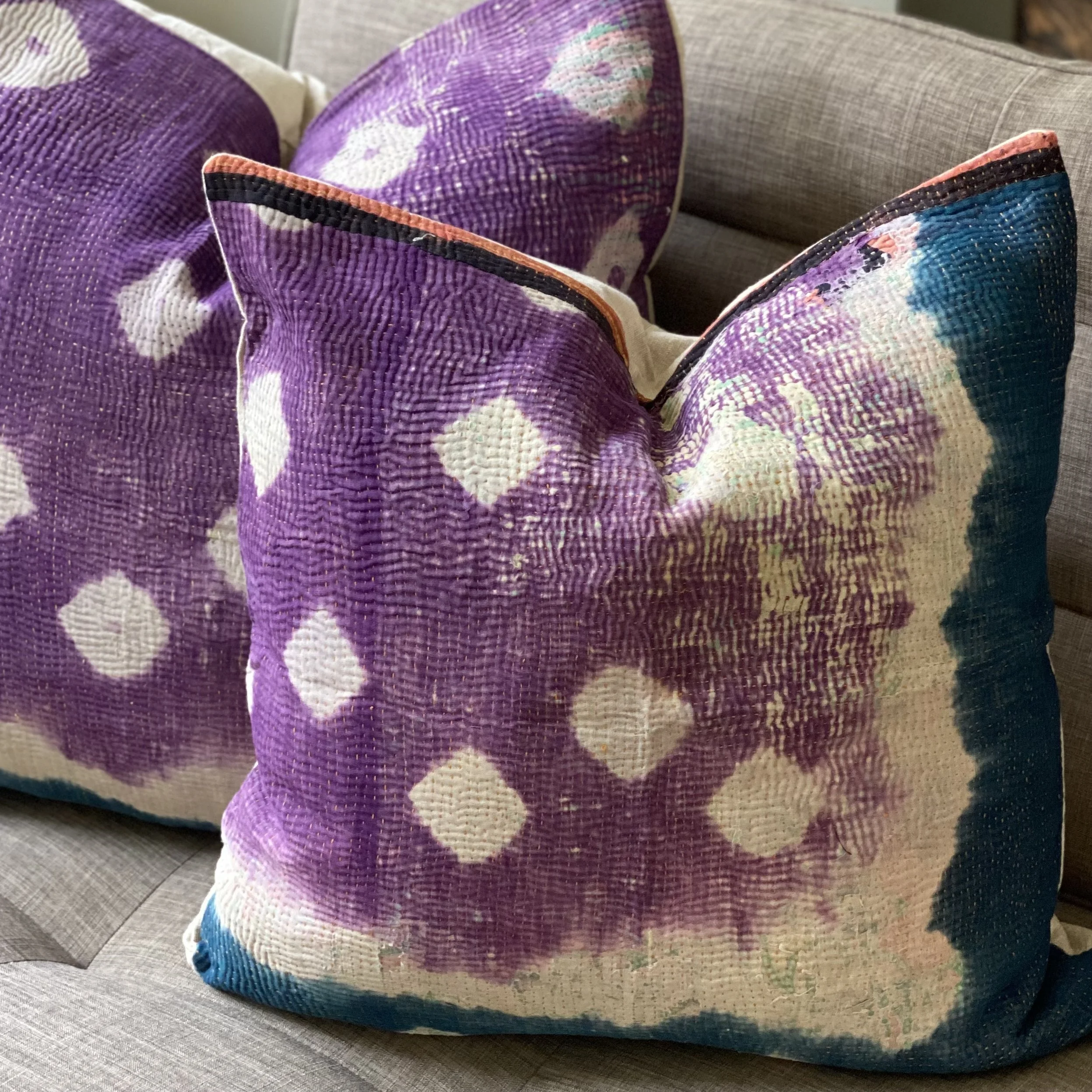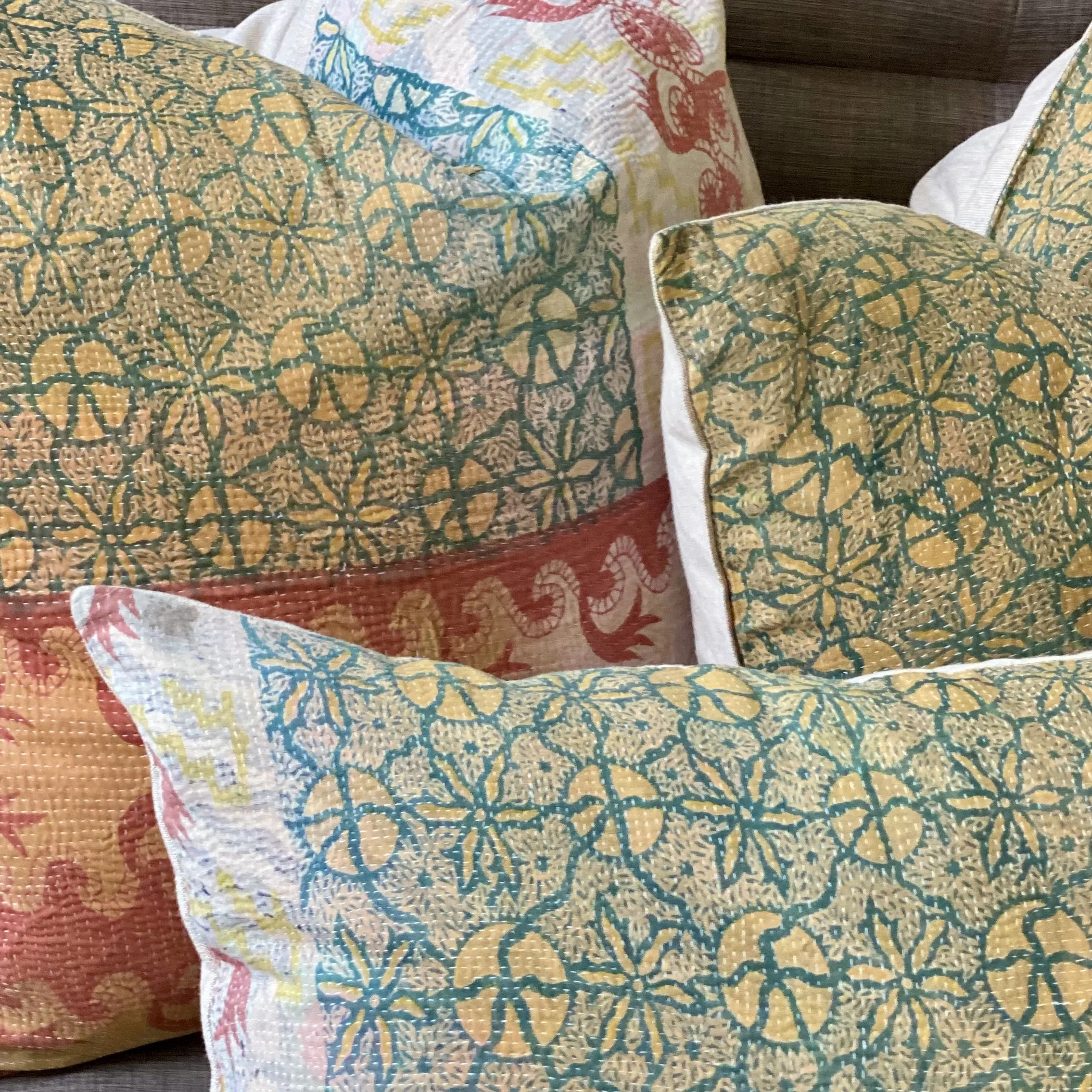The Face - The face of our pillows are made with organic hand stitched tribal vintage kantha textiles.
