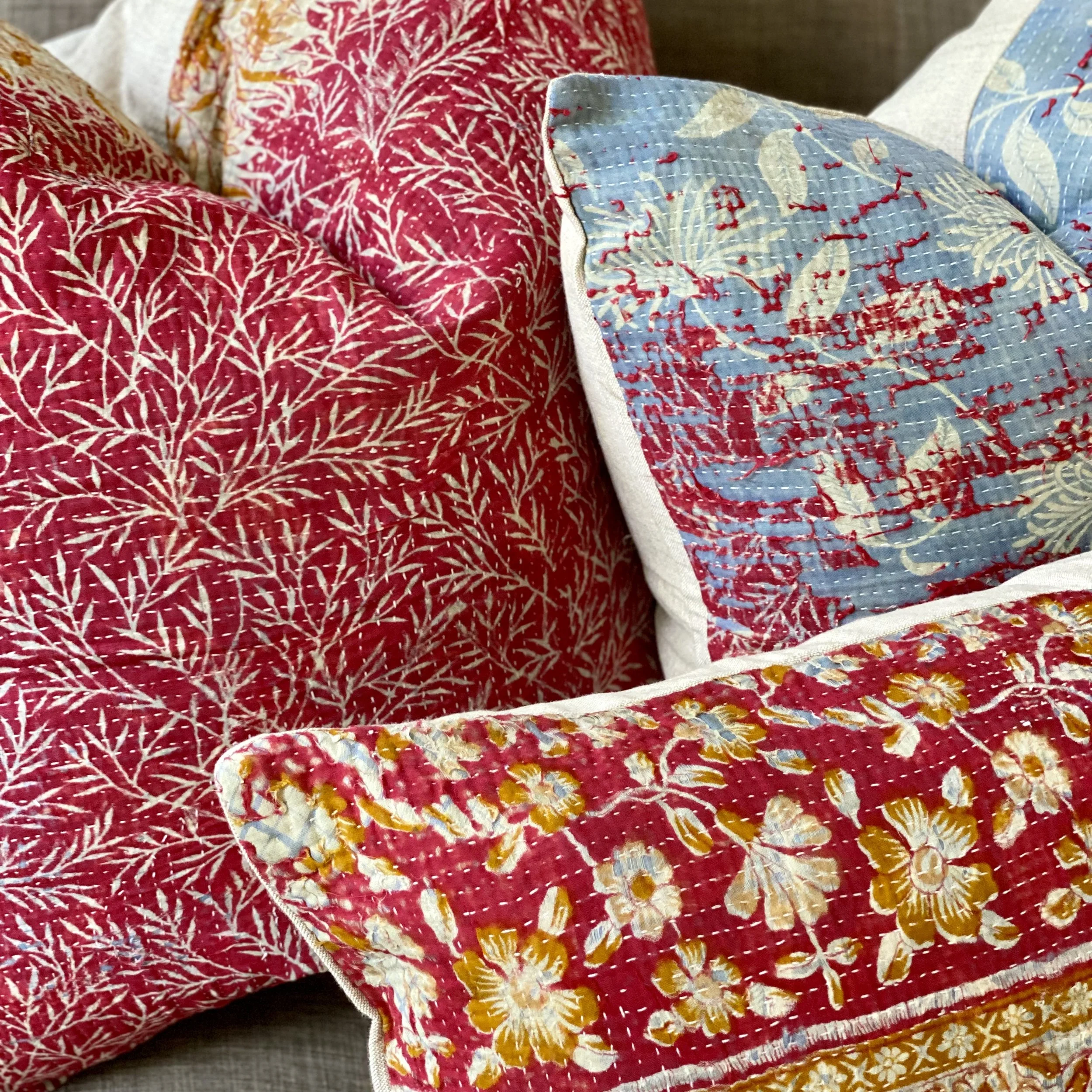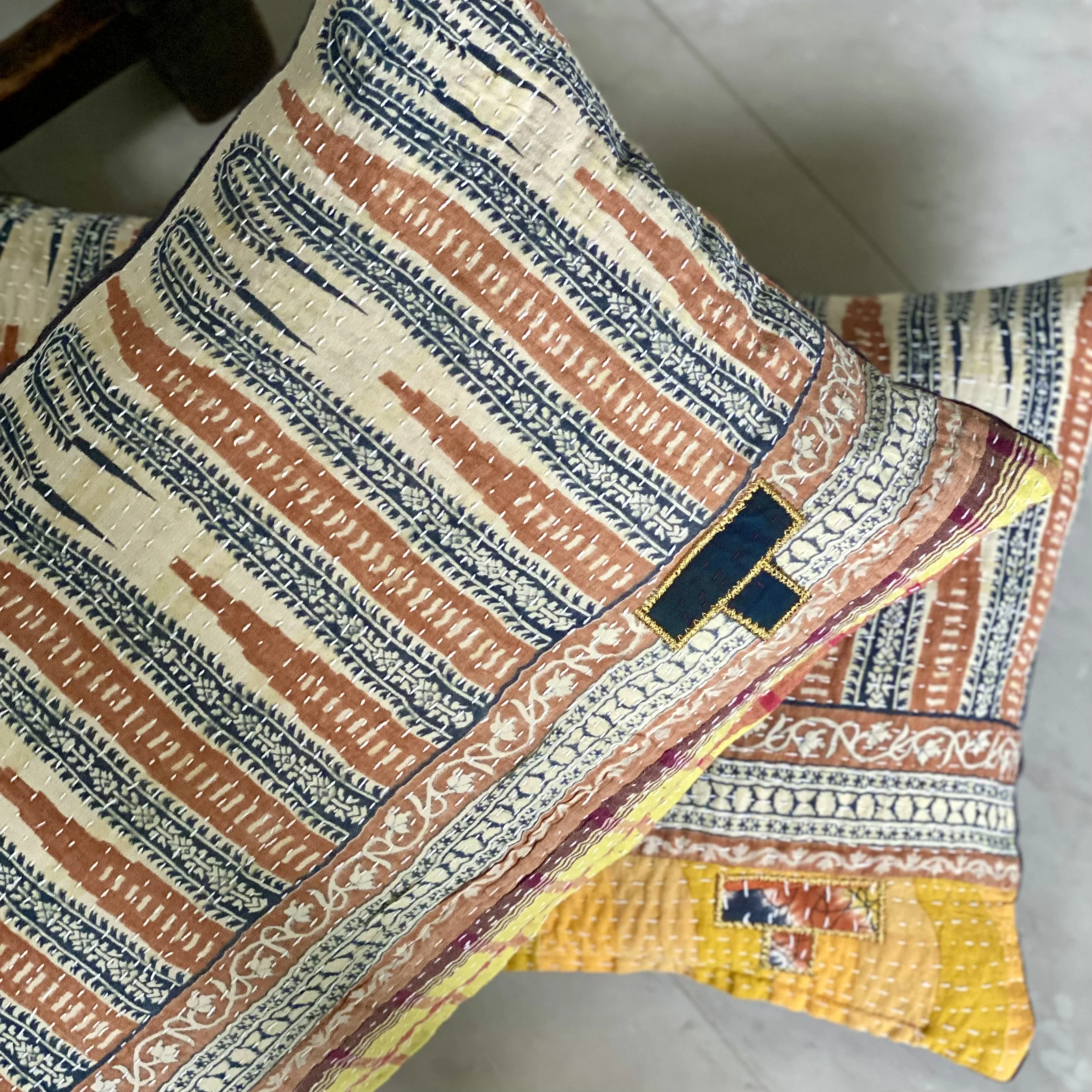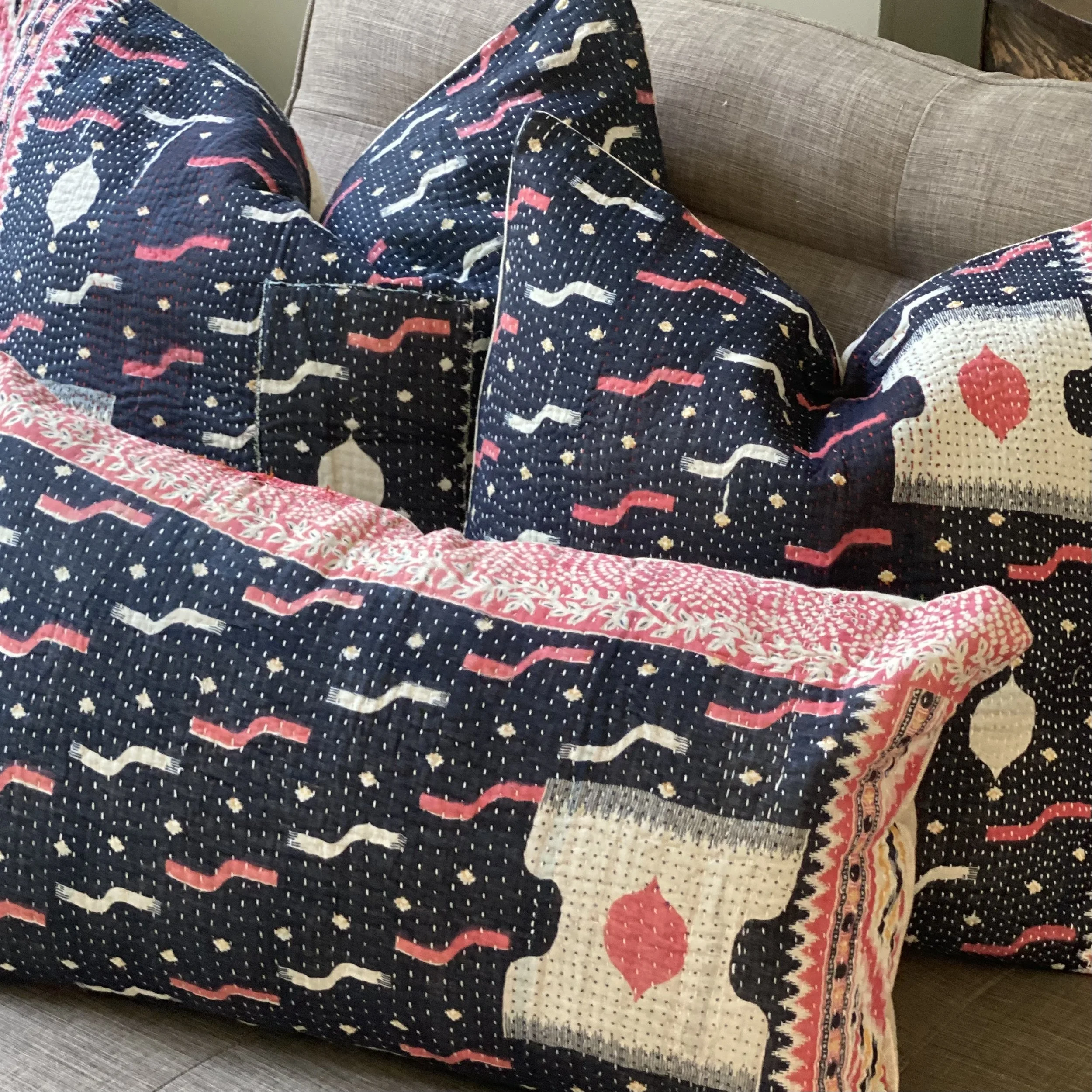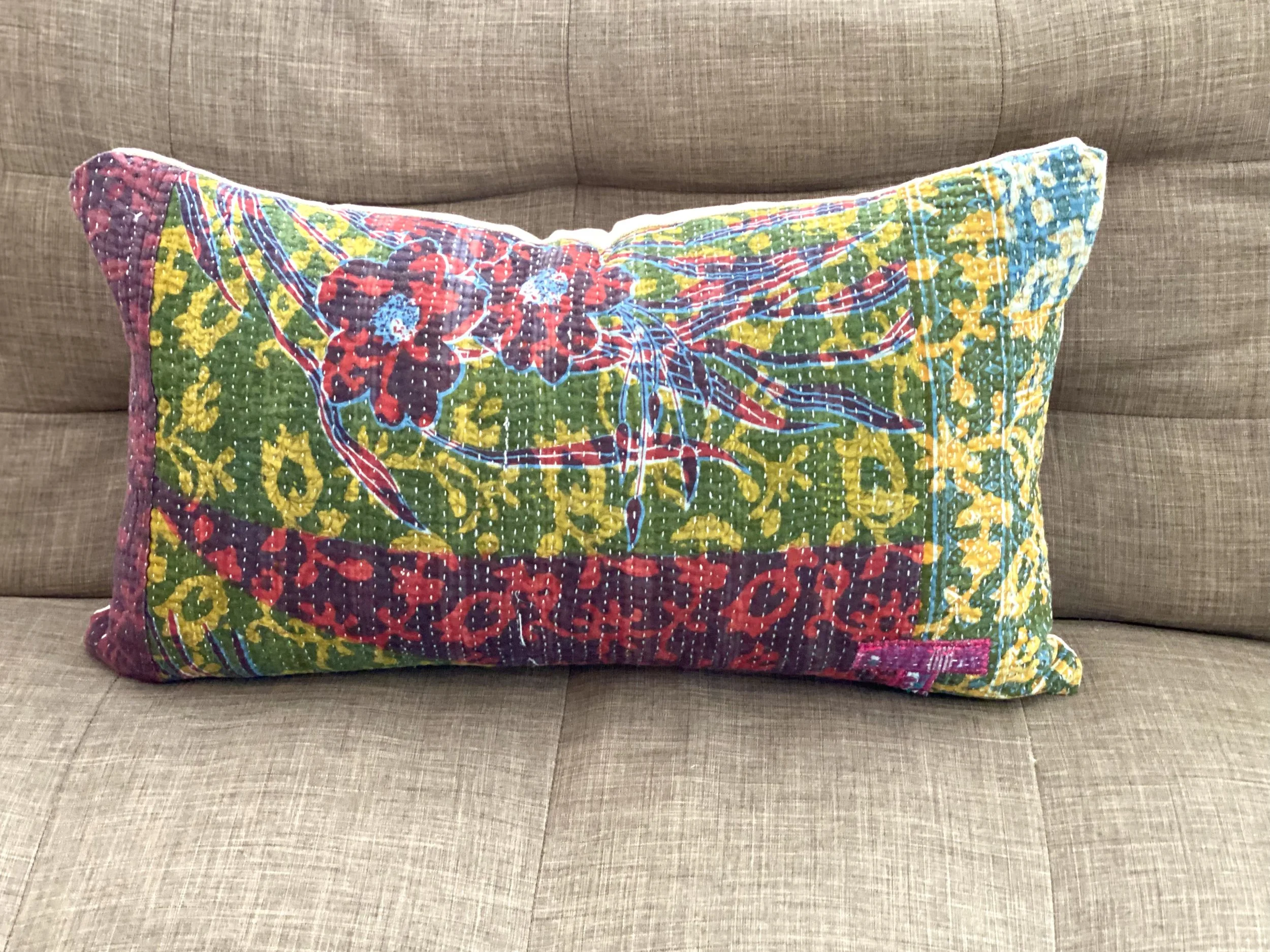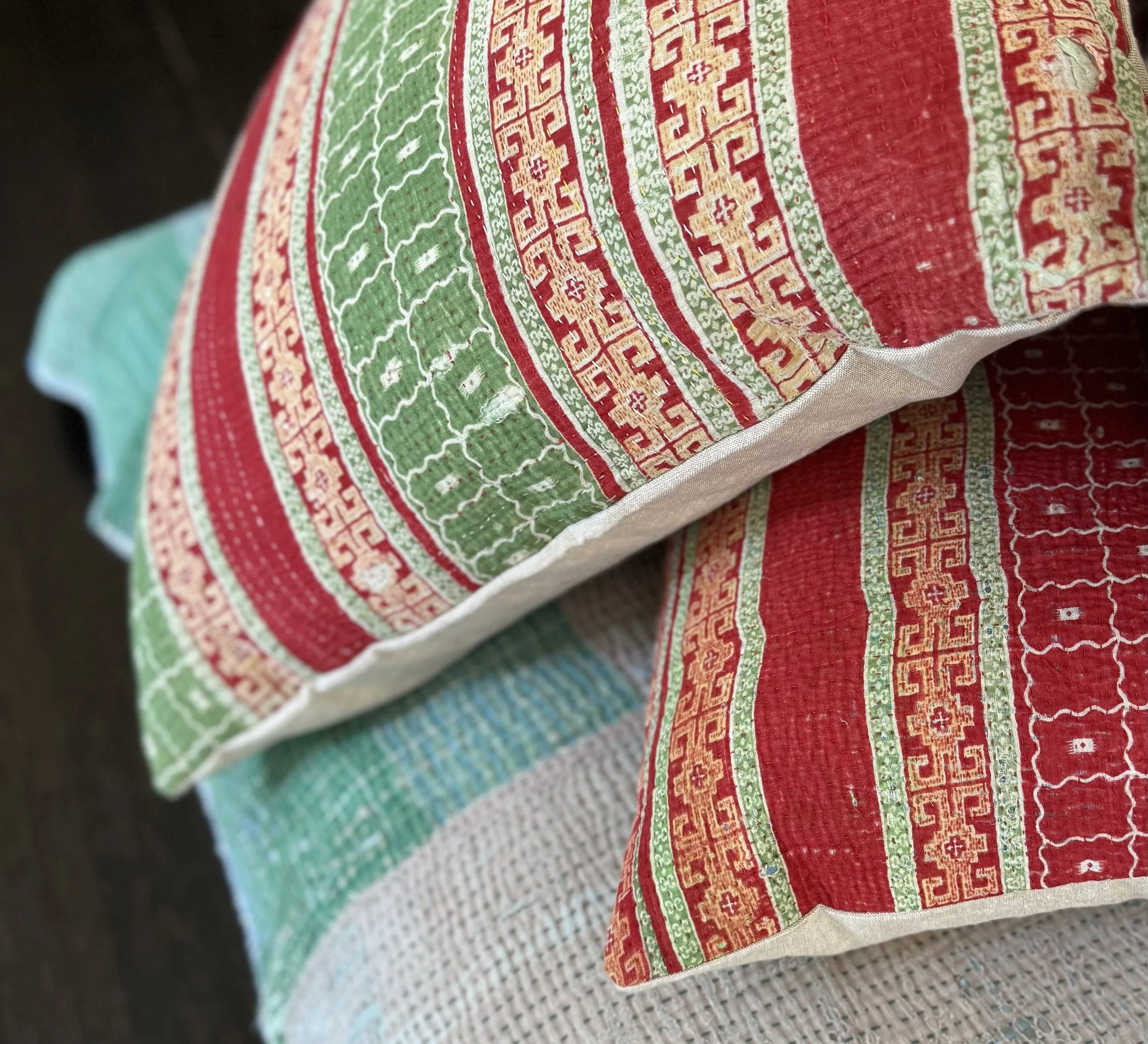 The Face - The face of our pillows are made with organic hand stitched tribal vintage kantha textiles.