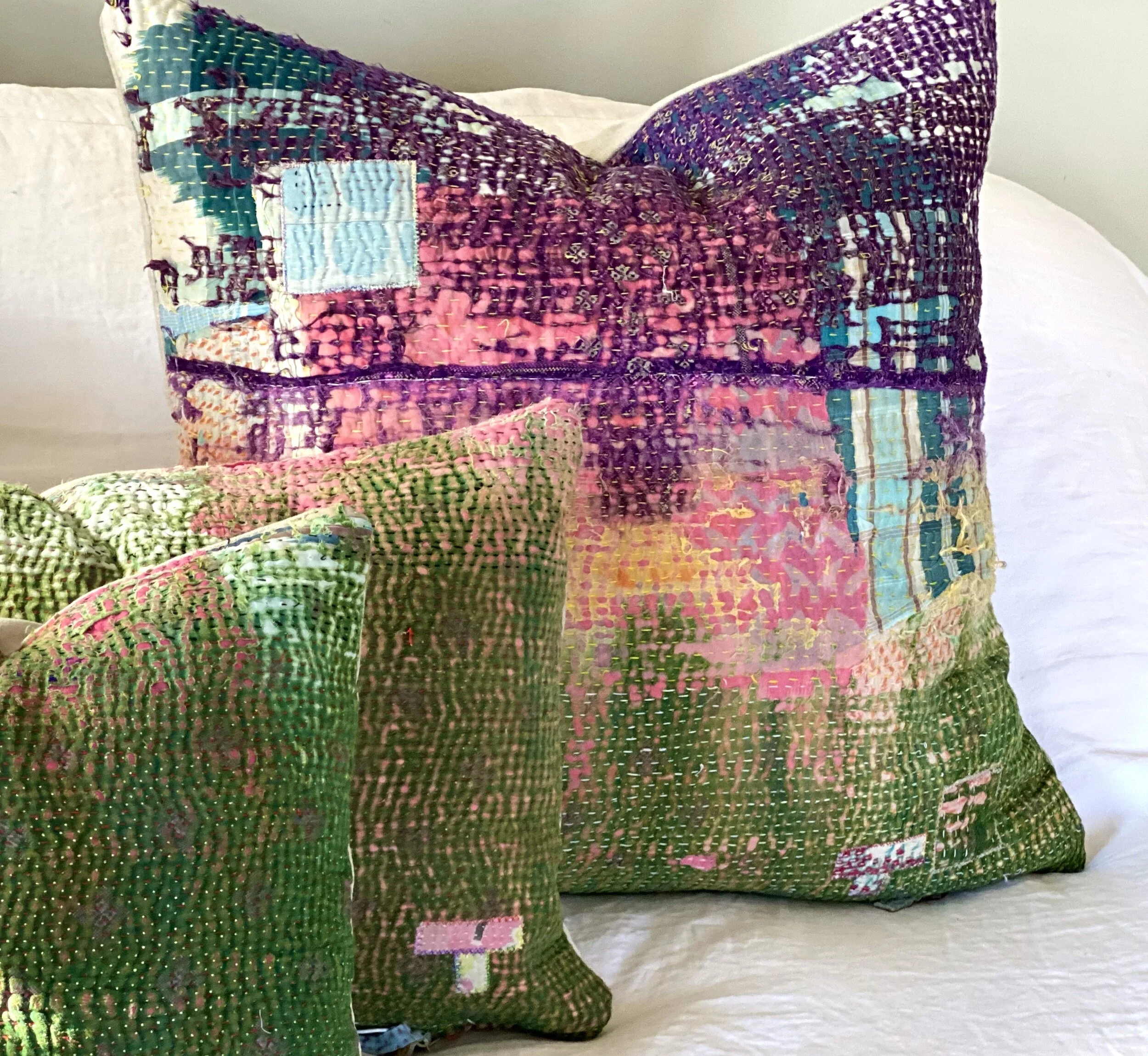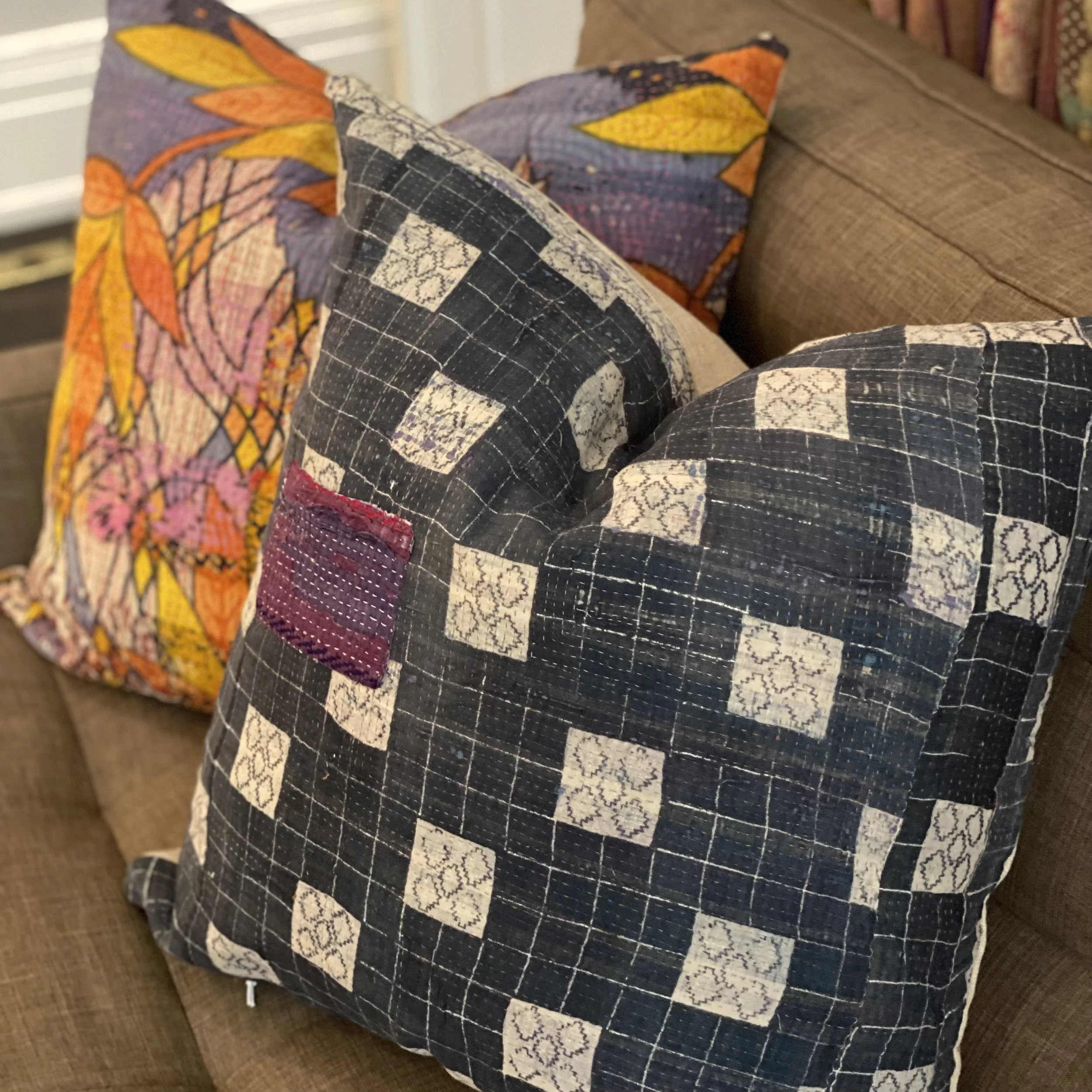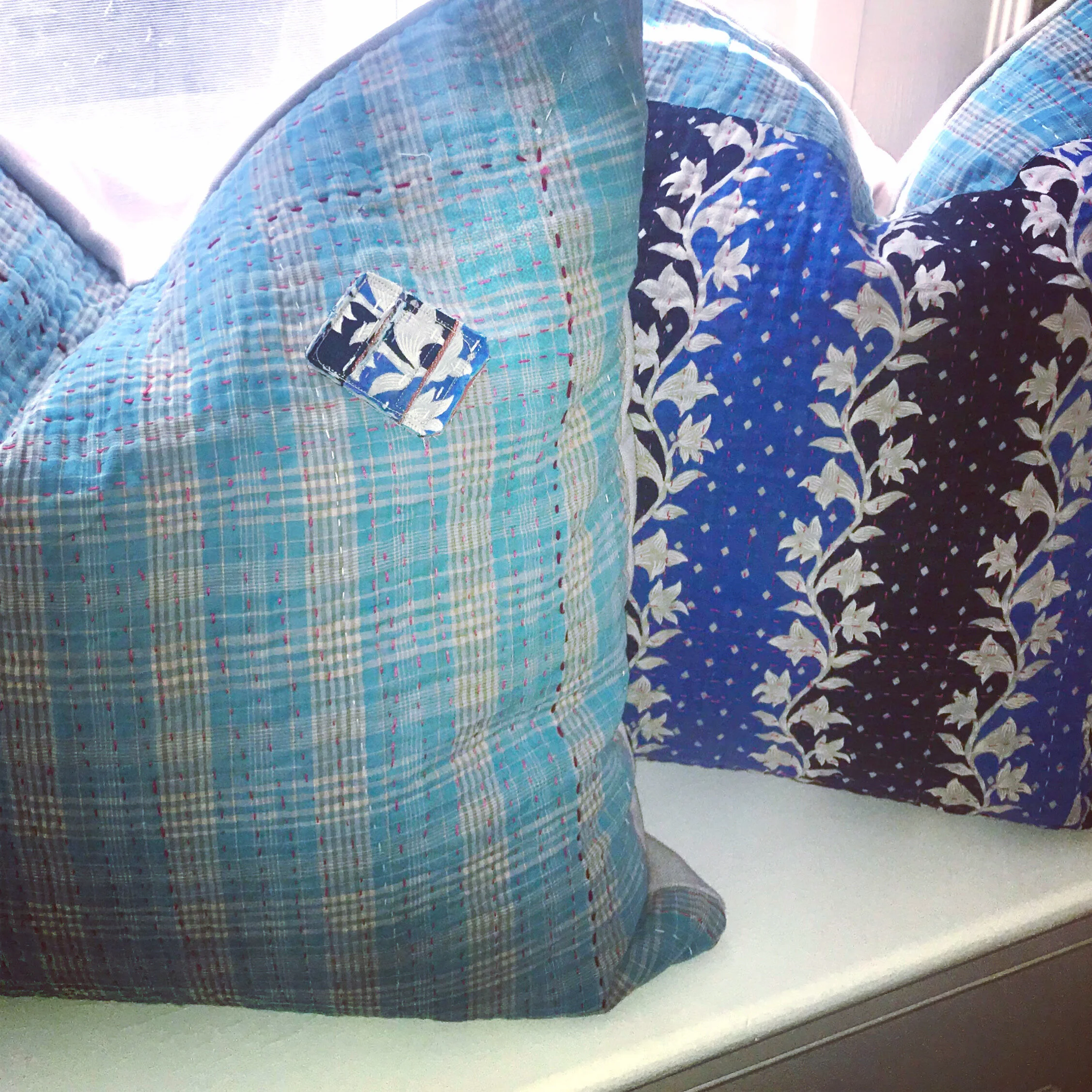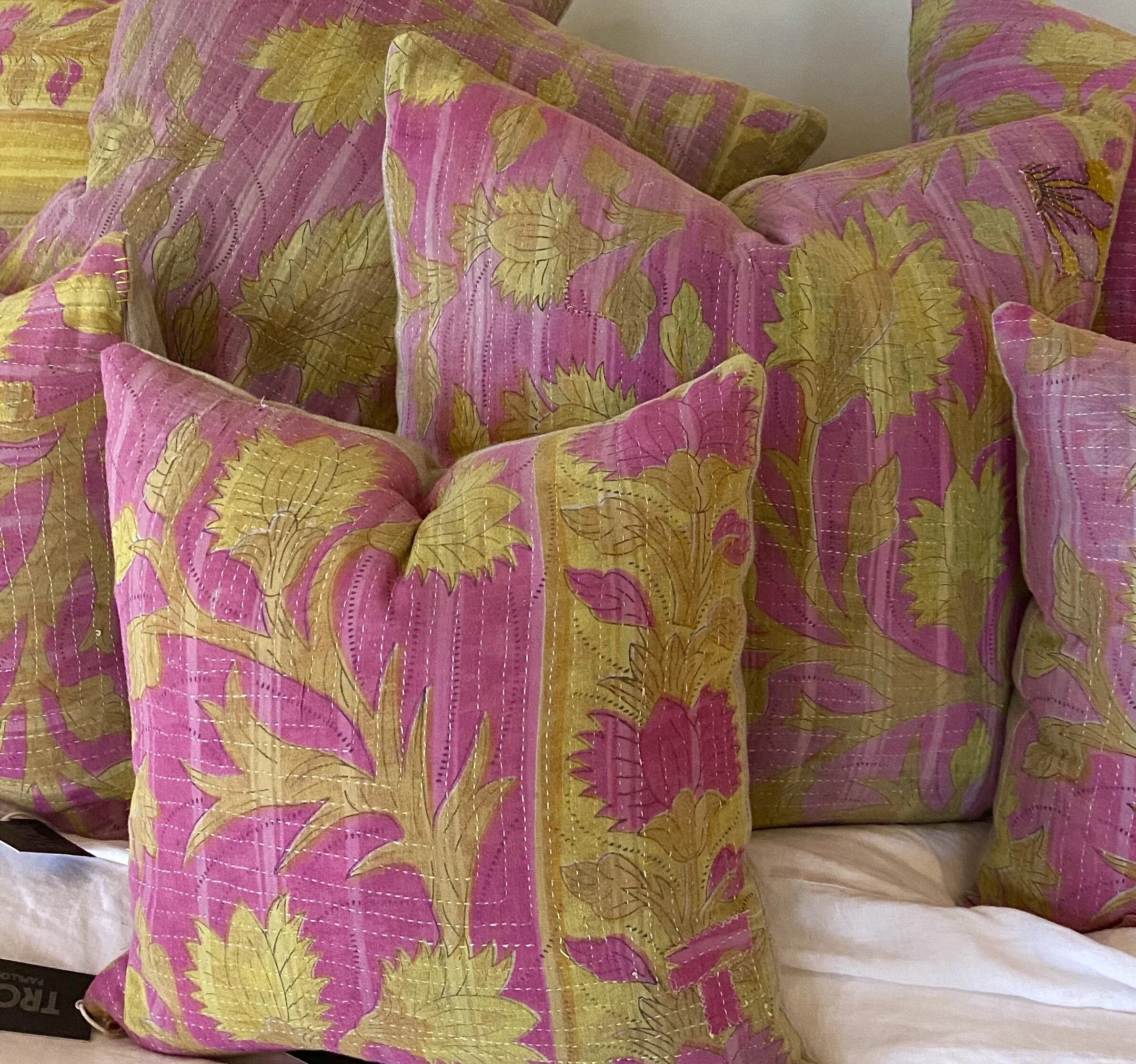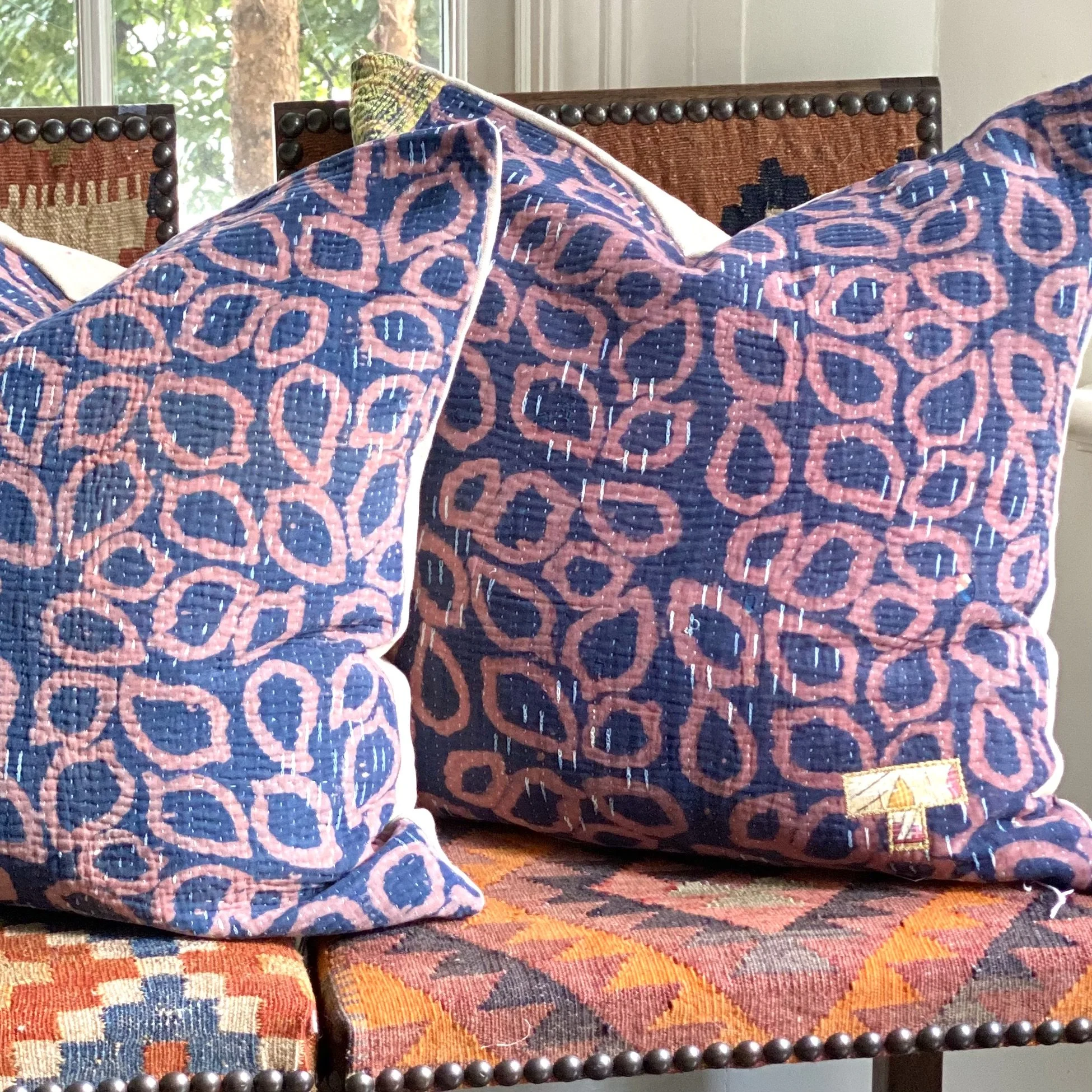The Face - The face of our pillows are made with organic hand stitched tribal vintage kantha textiles.