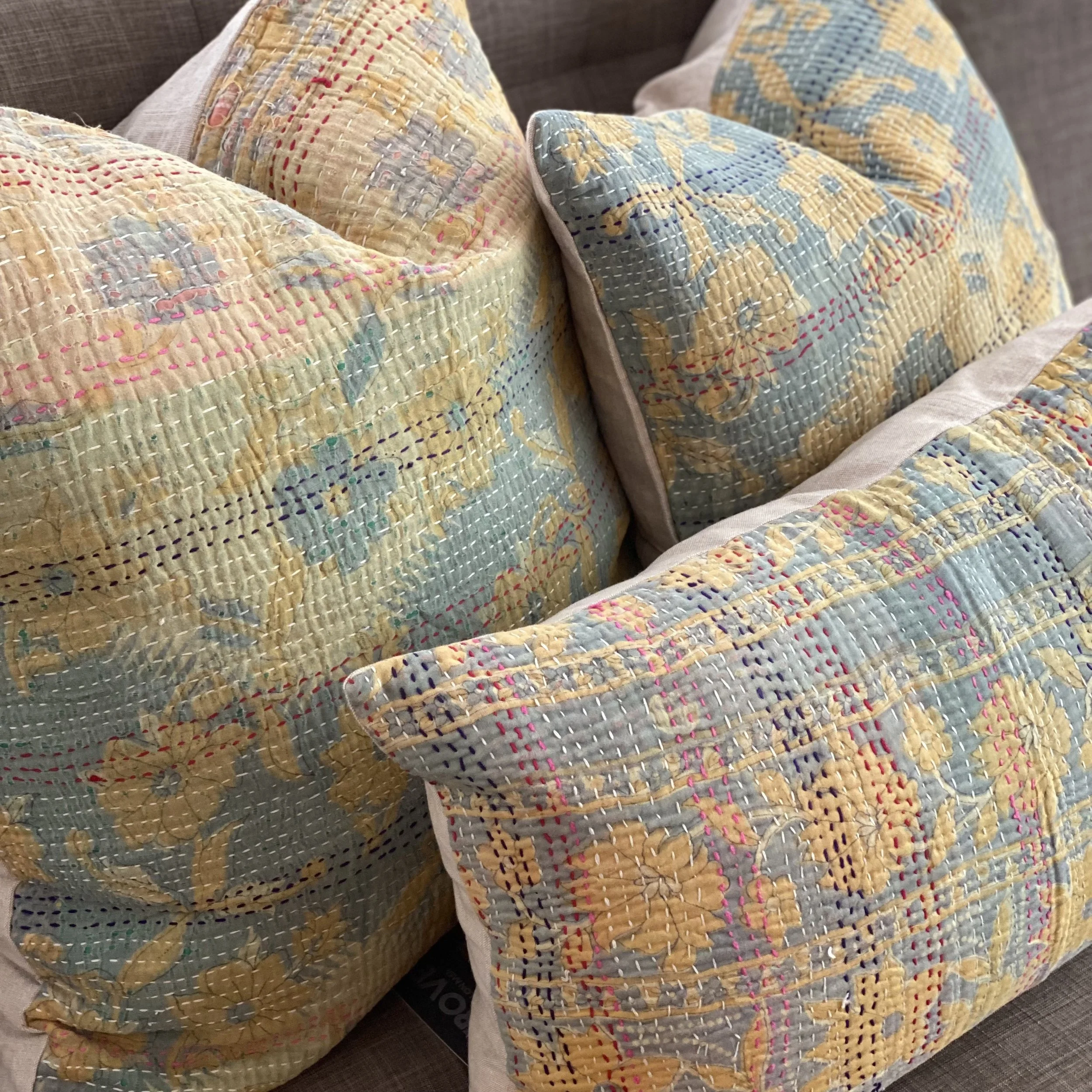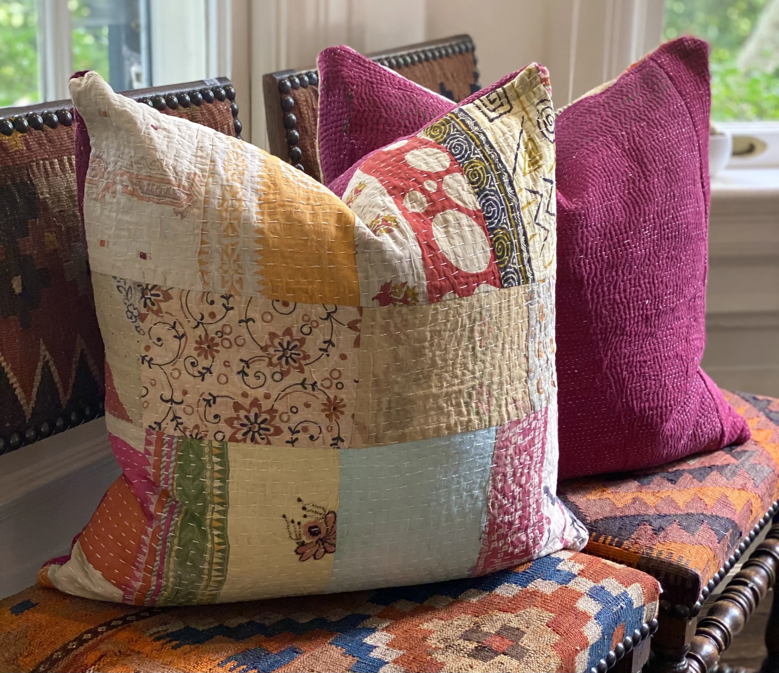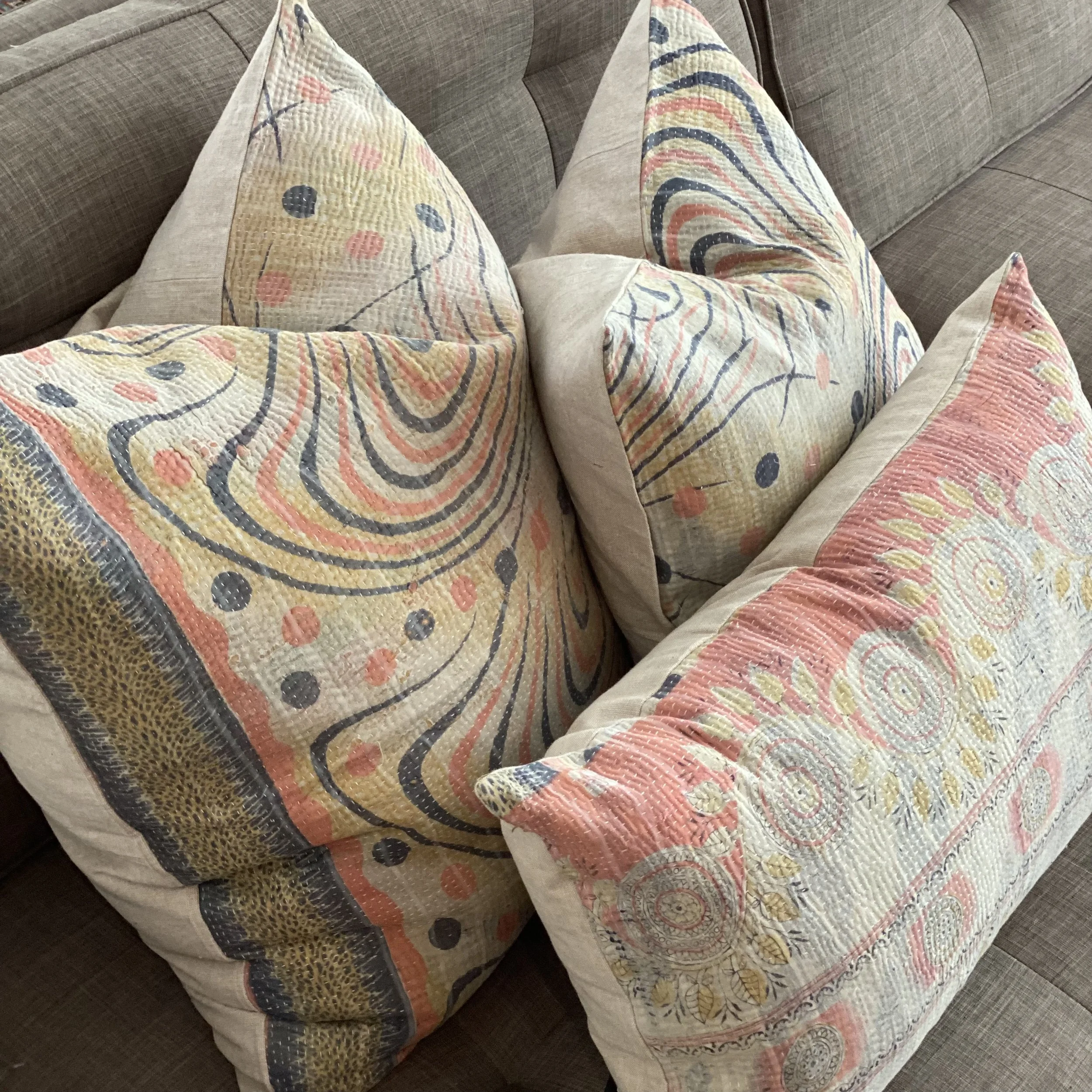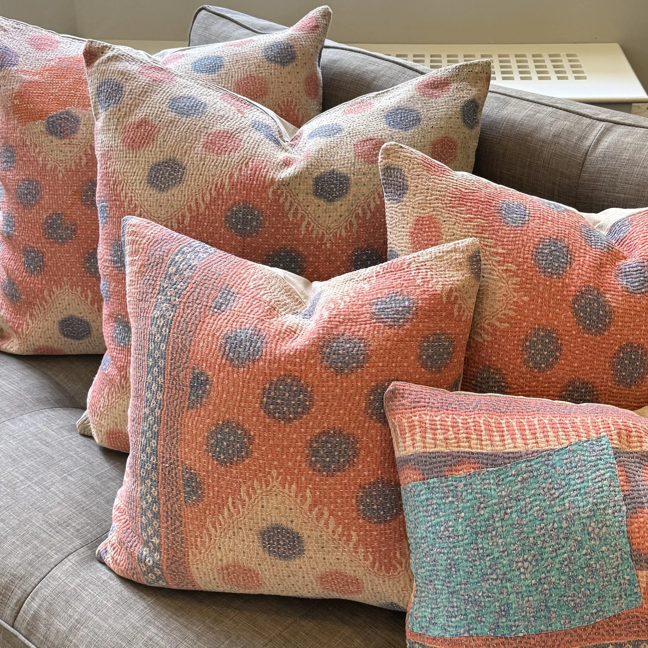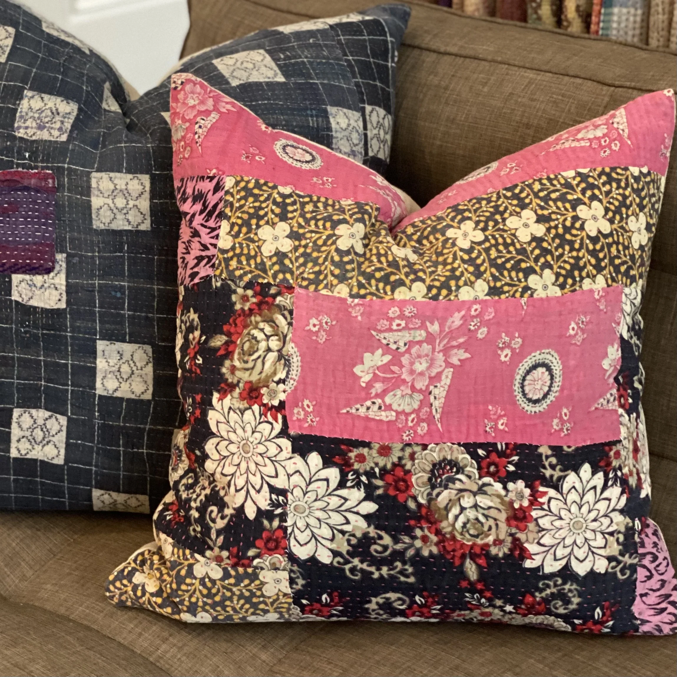 The Face - The face of our pillows are made with organic hand stitched tribal vintage kantha textiles.