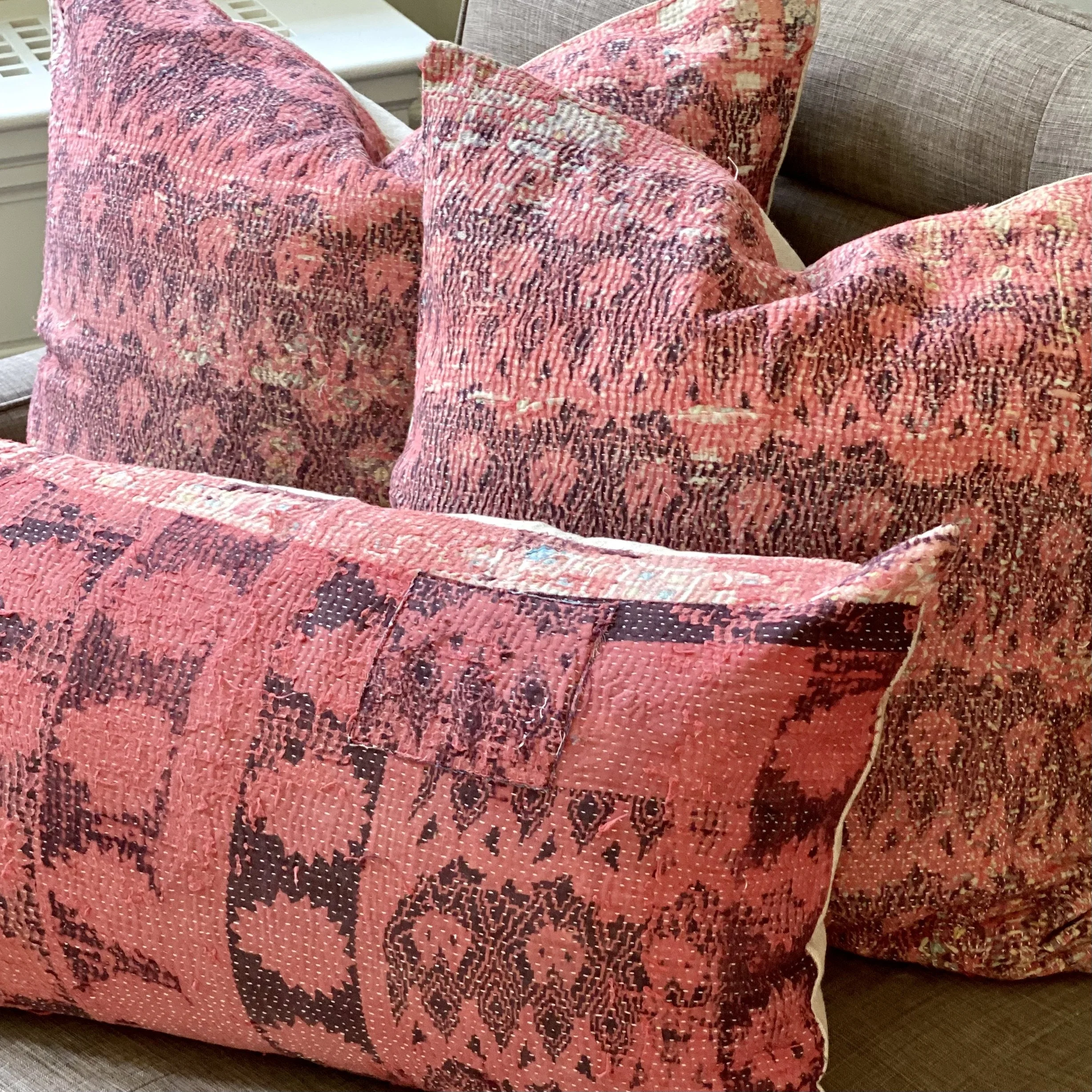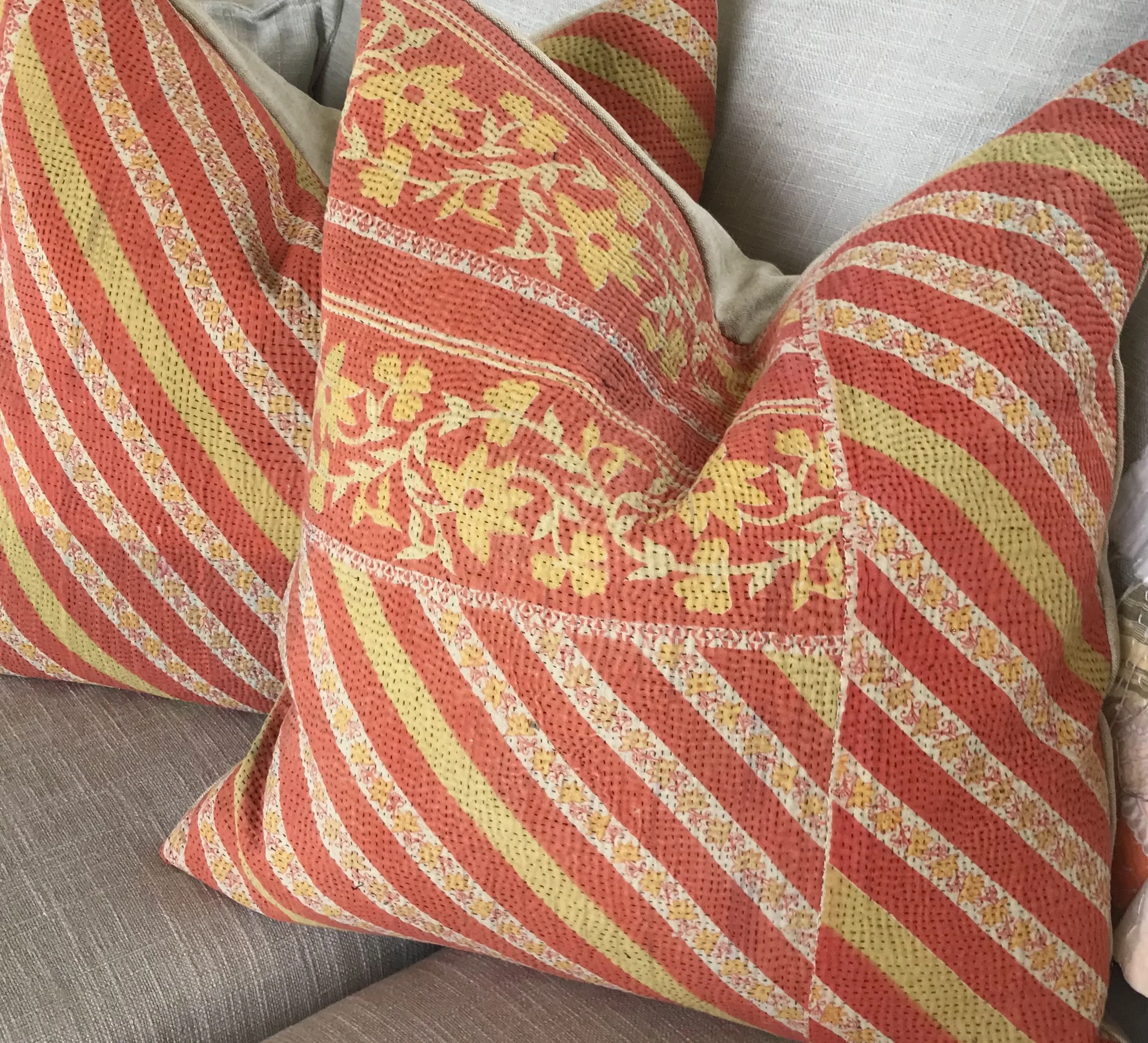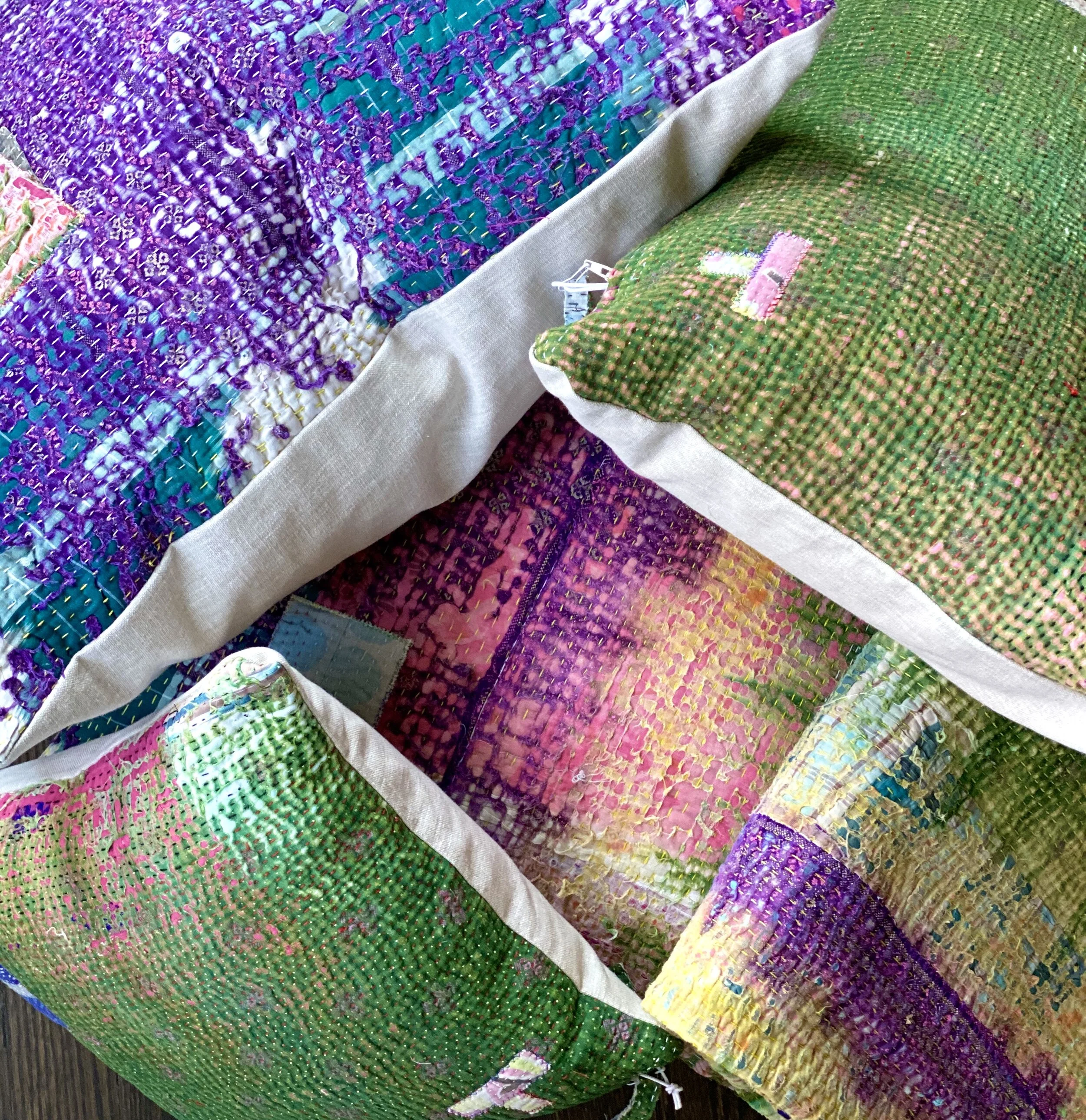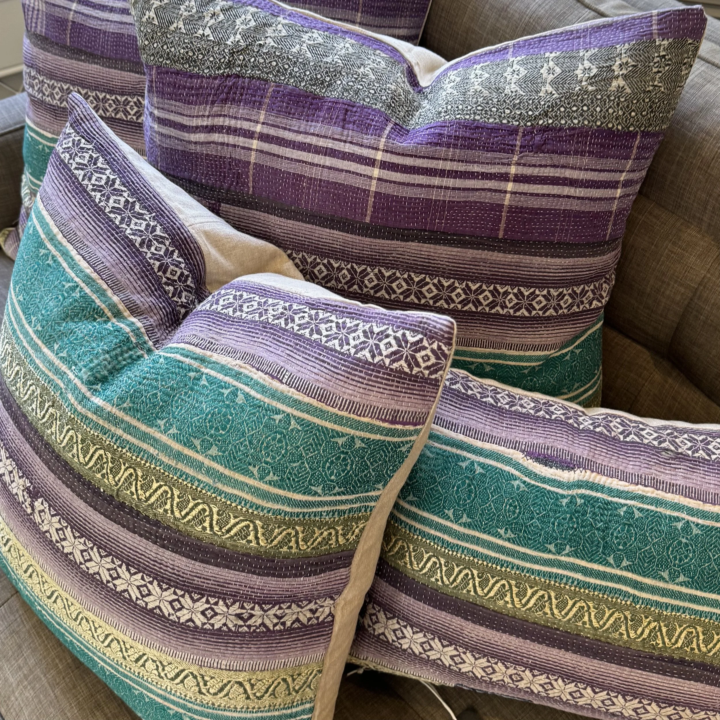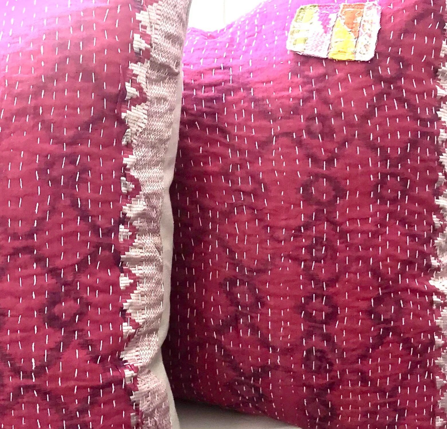 The Face - The face of our pillows are made with organic hand stitched tribal vintage kantha textiles.