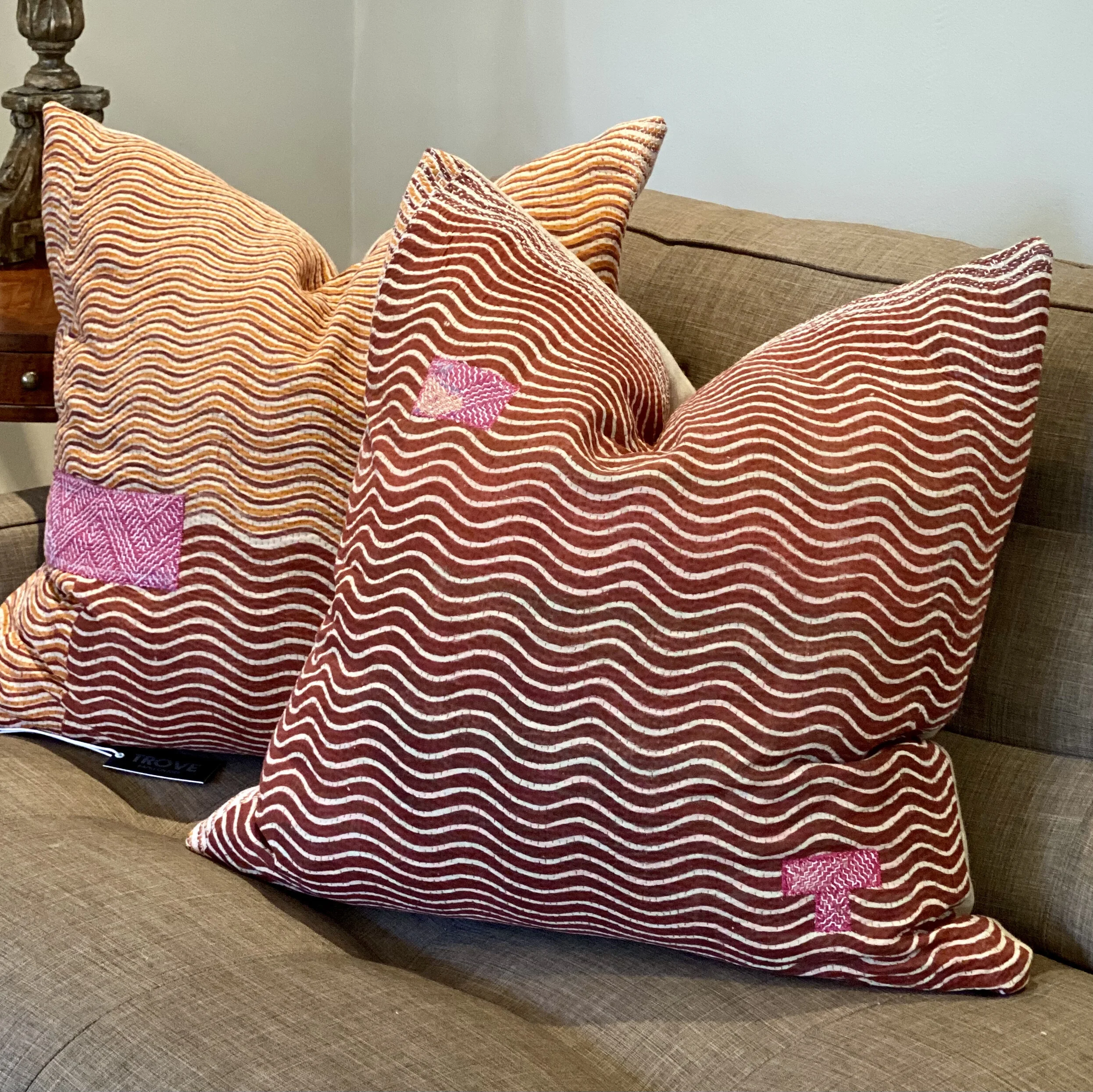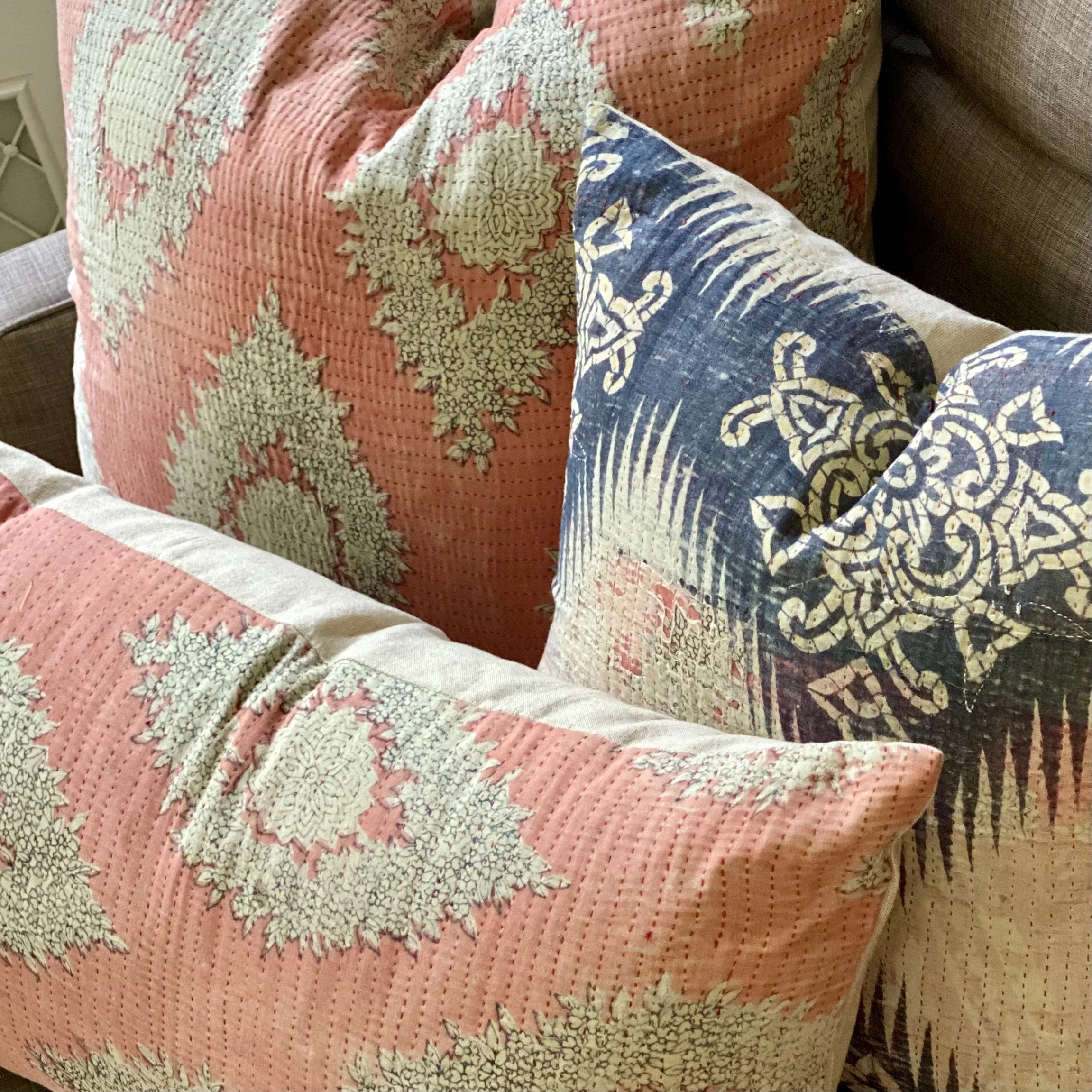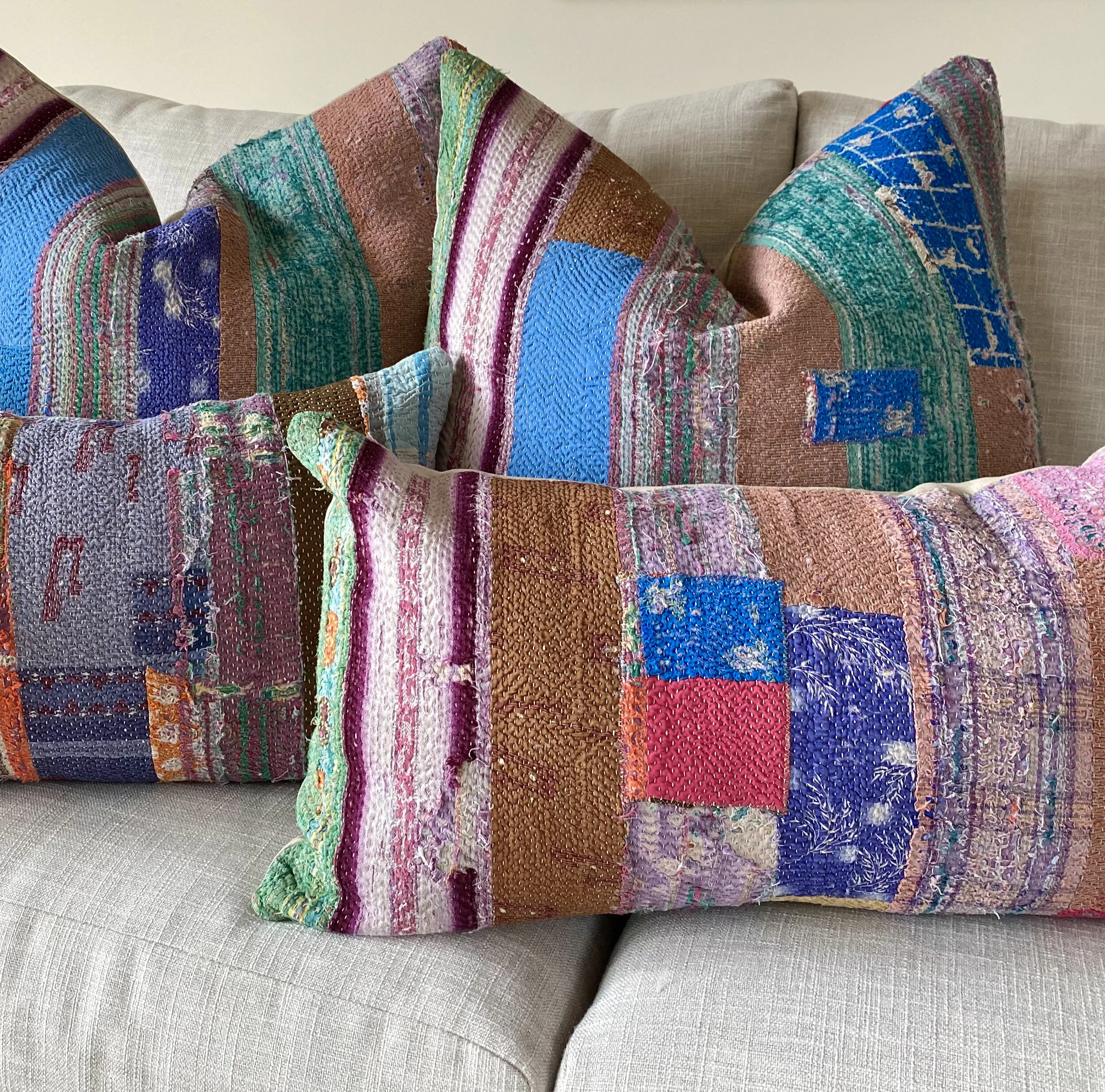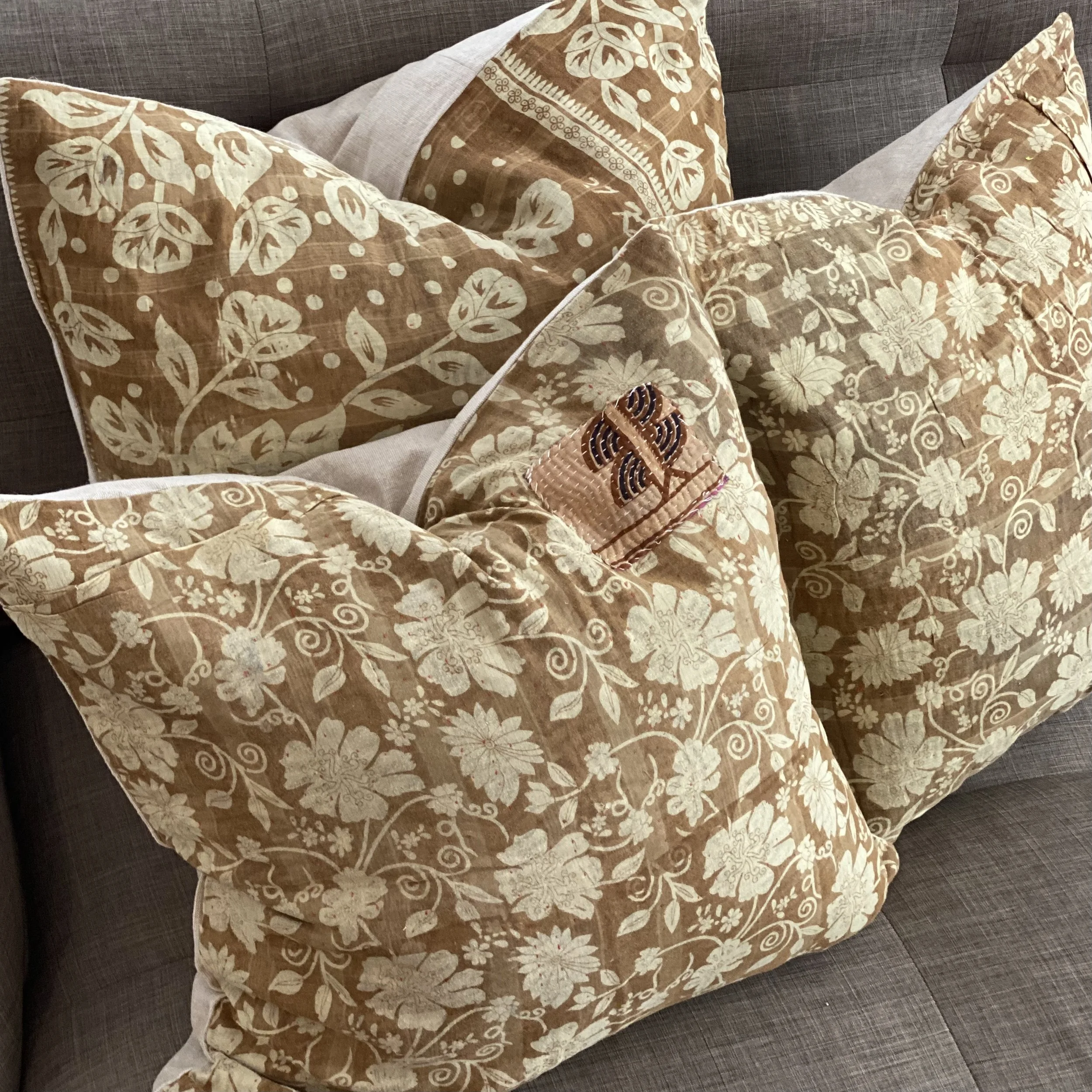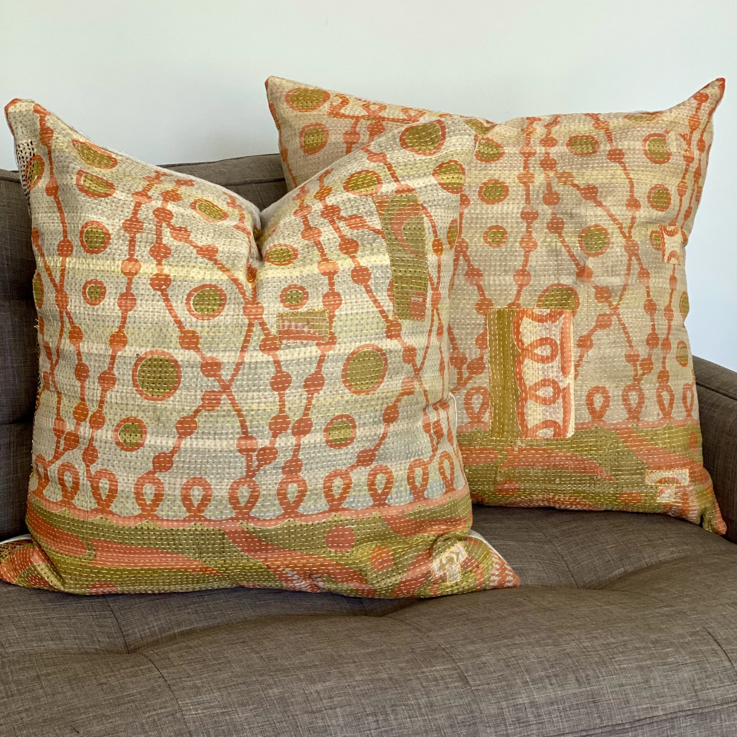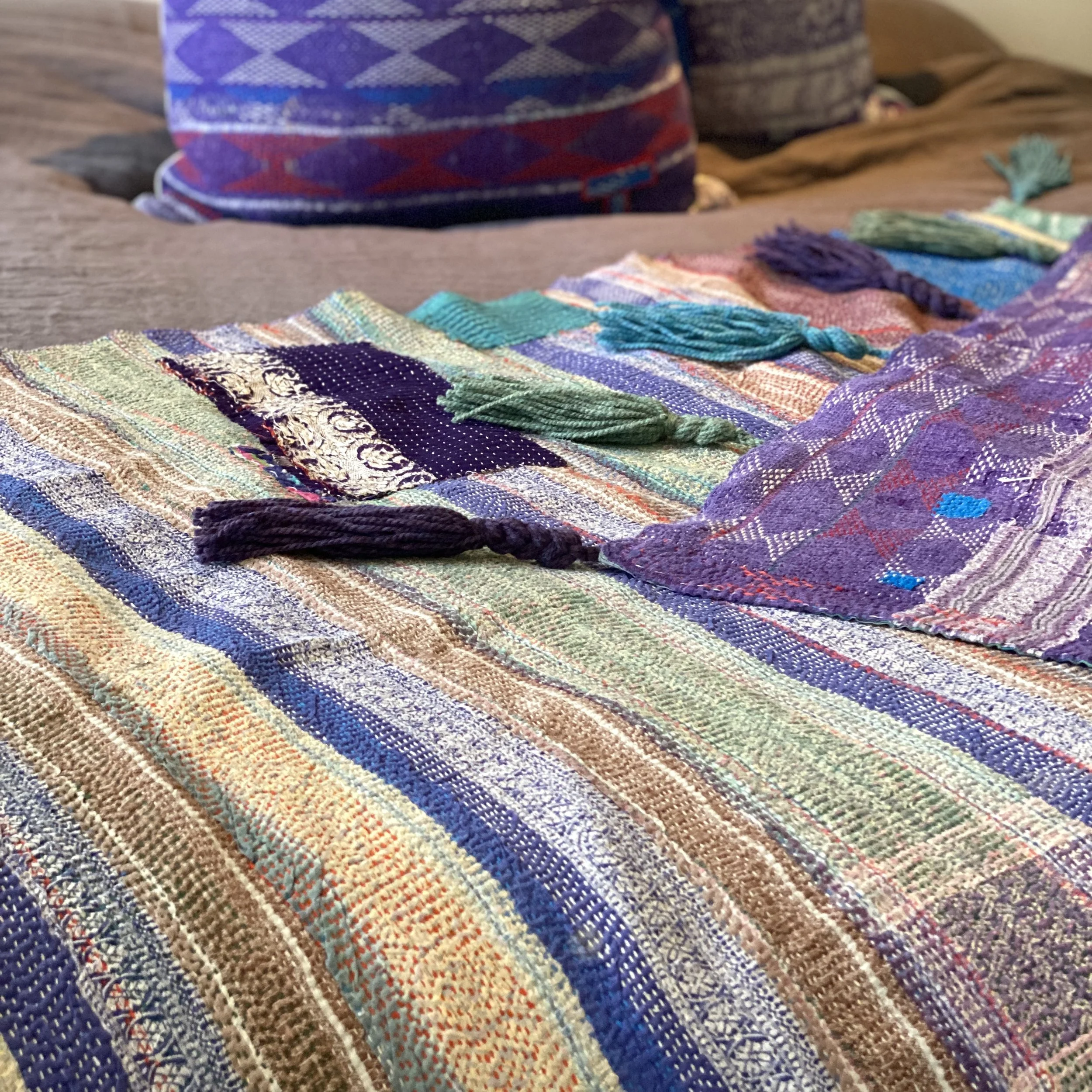 The Face - The face of our pillows are made with organic hand stitched tribal vintage kantha textiles.