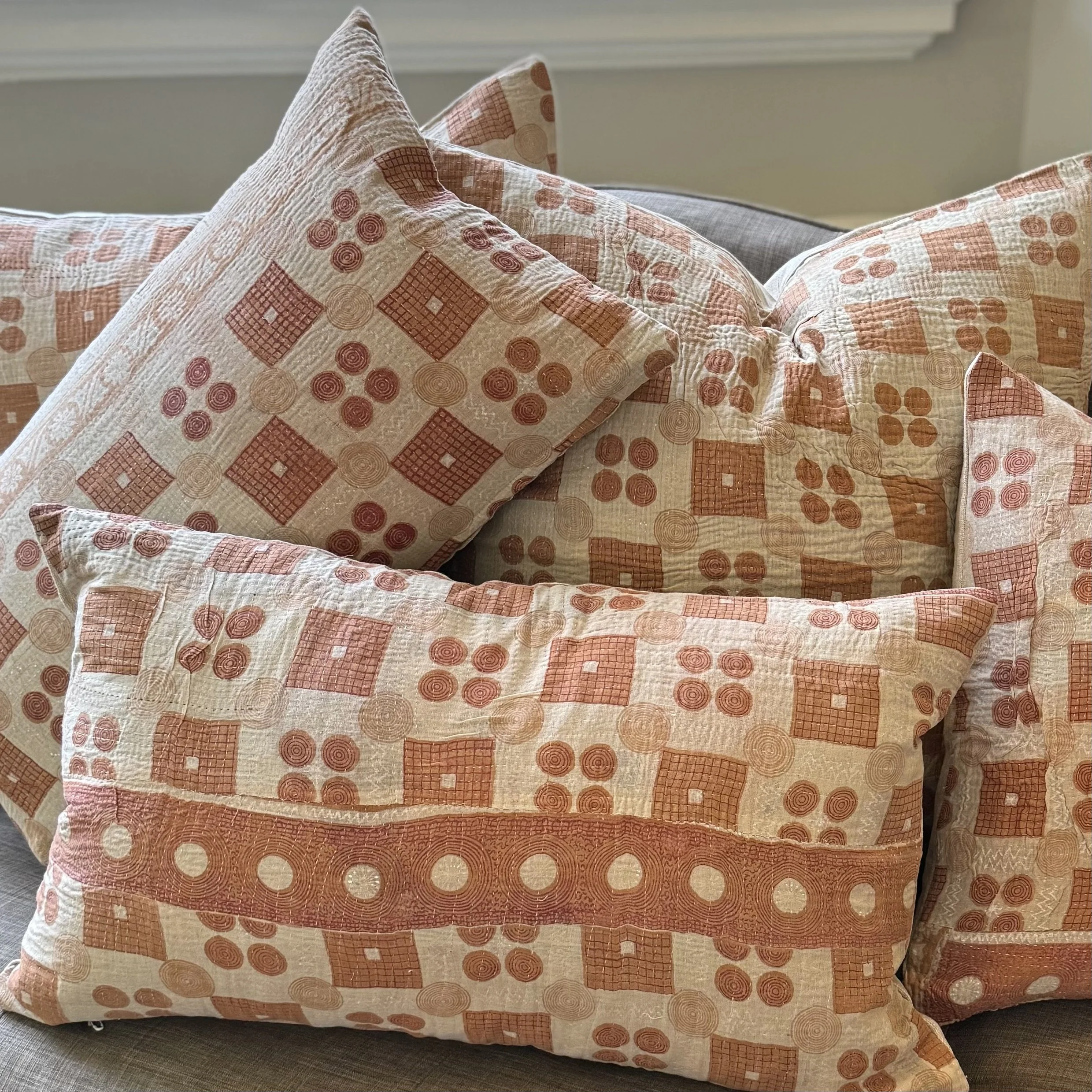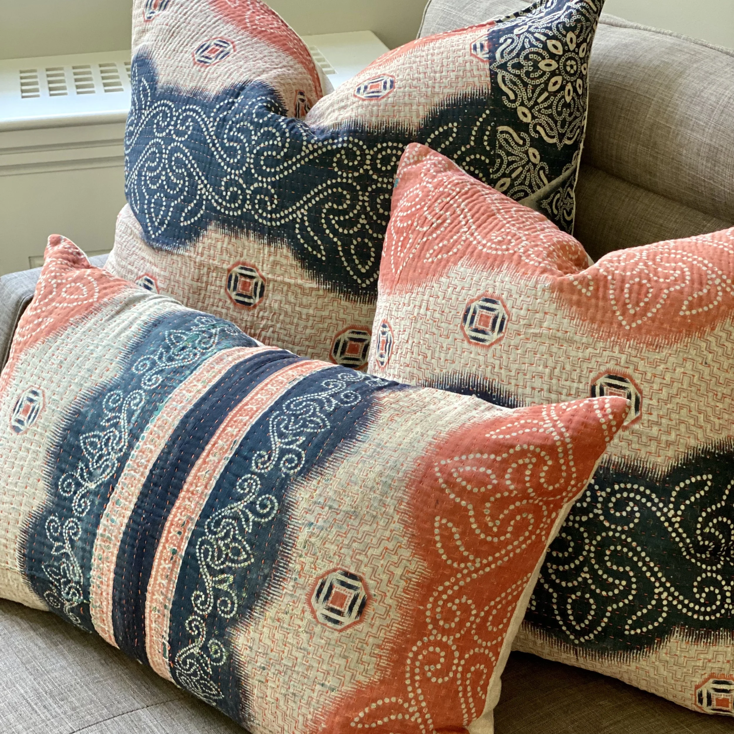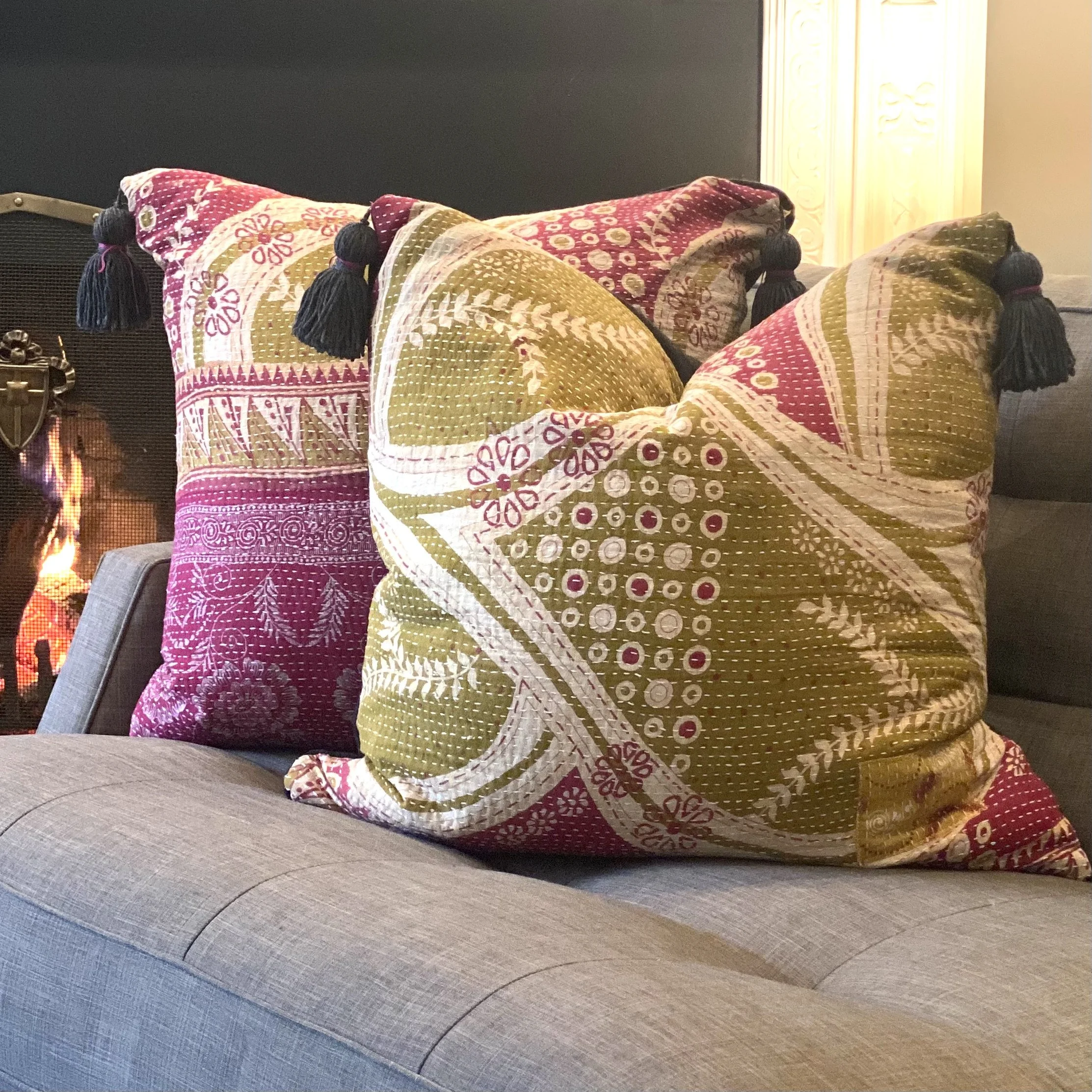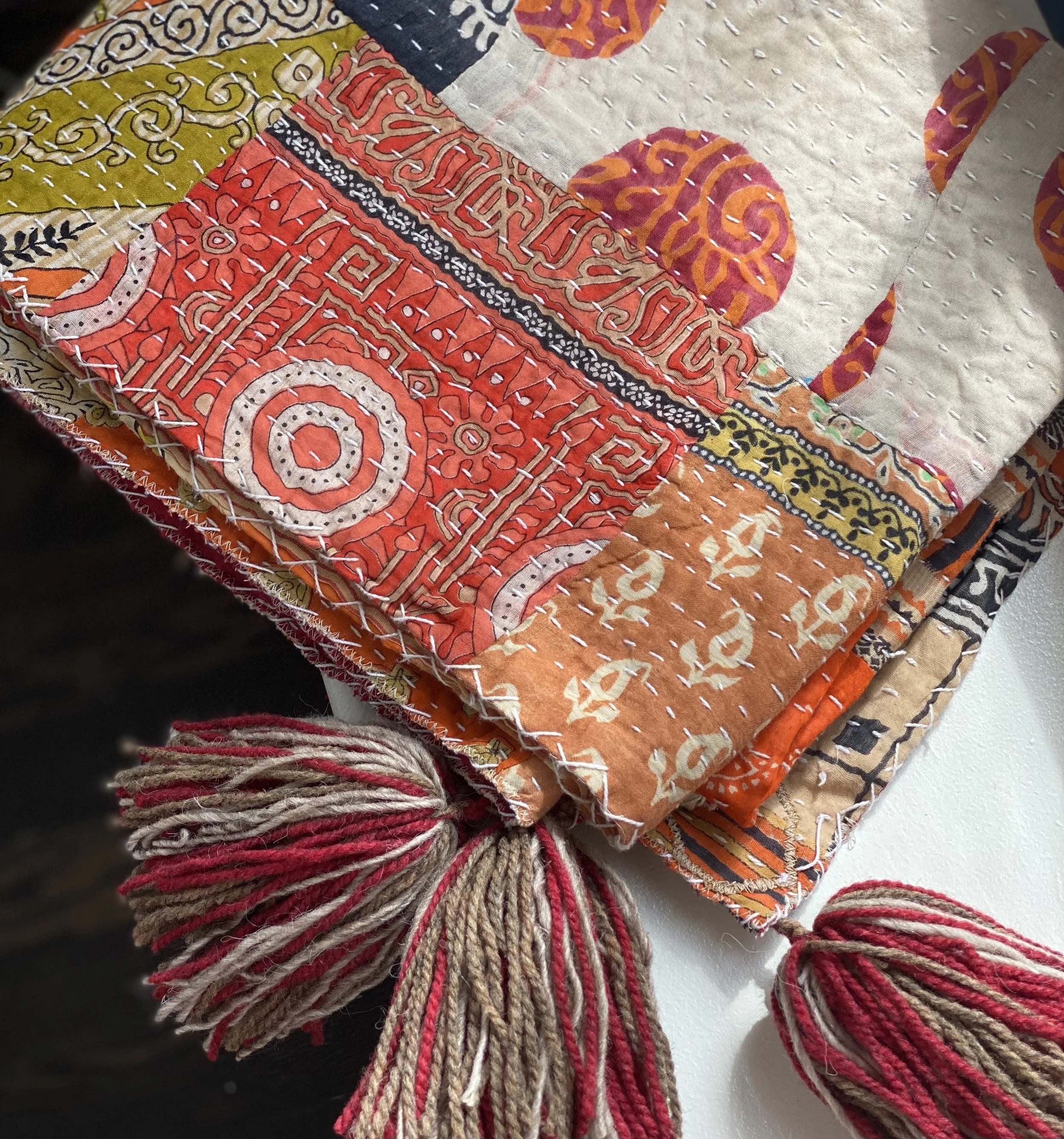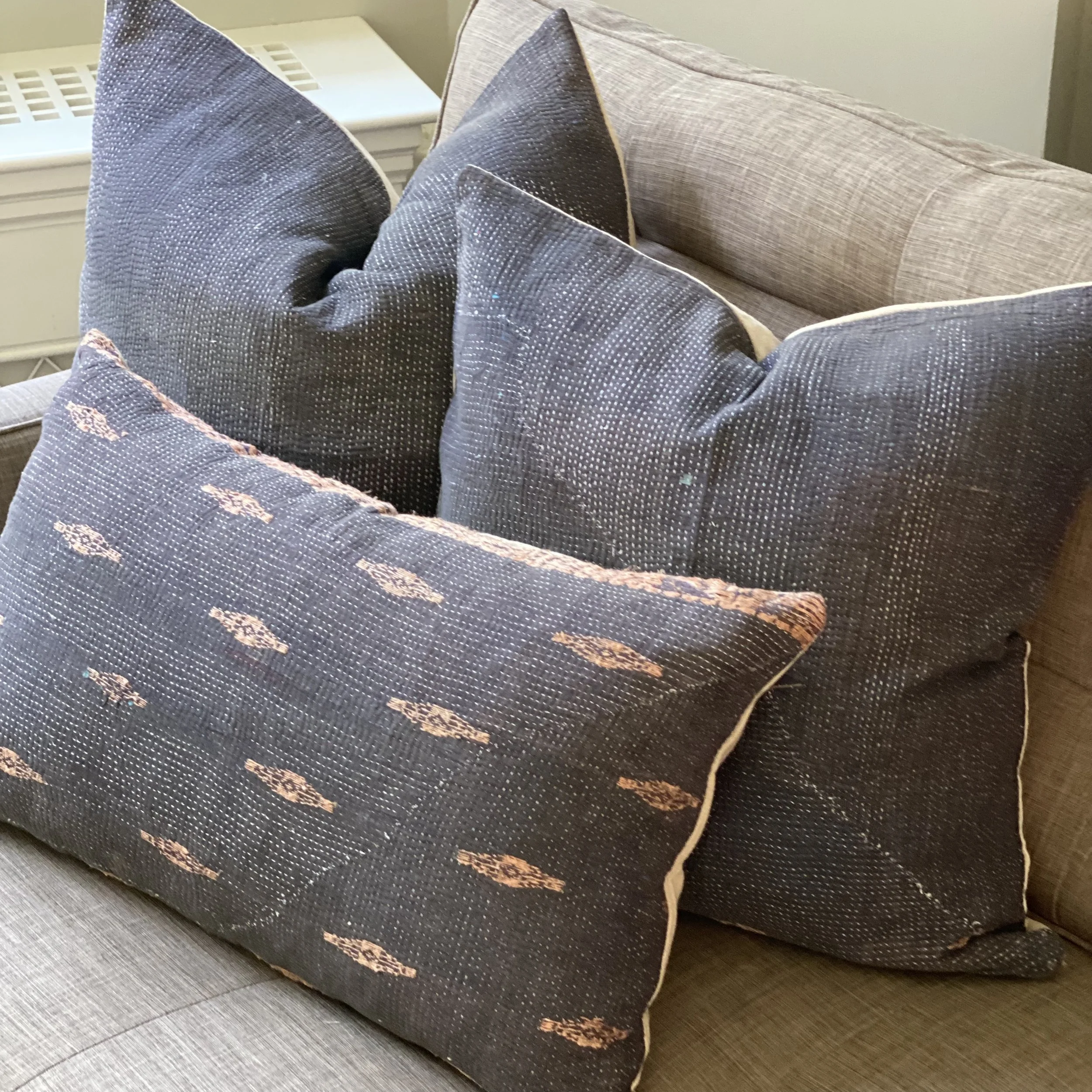 The Face - The face of our pillows are made with organic hand stitched tribal vintage kantha textiles.