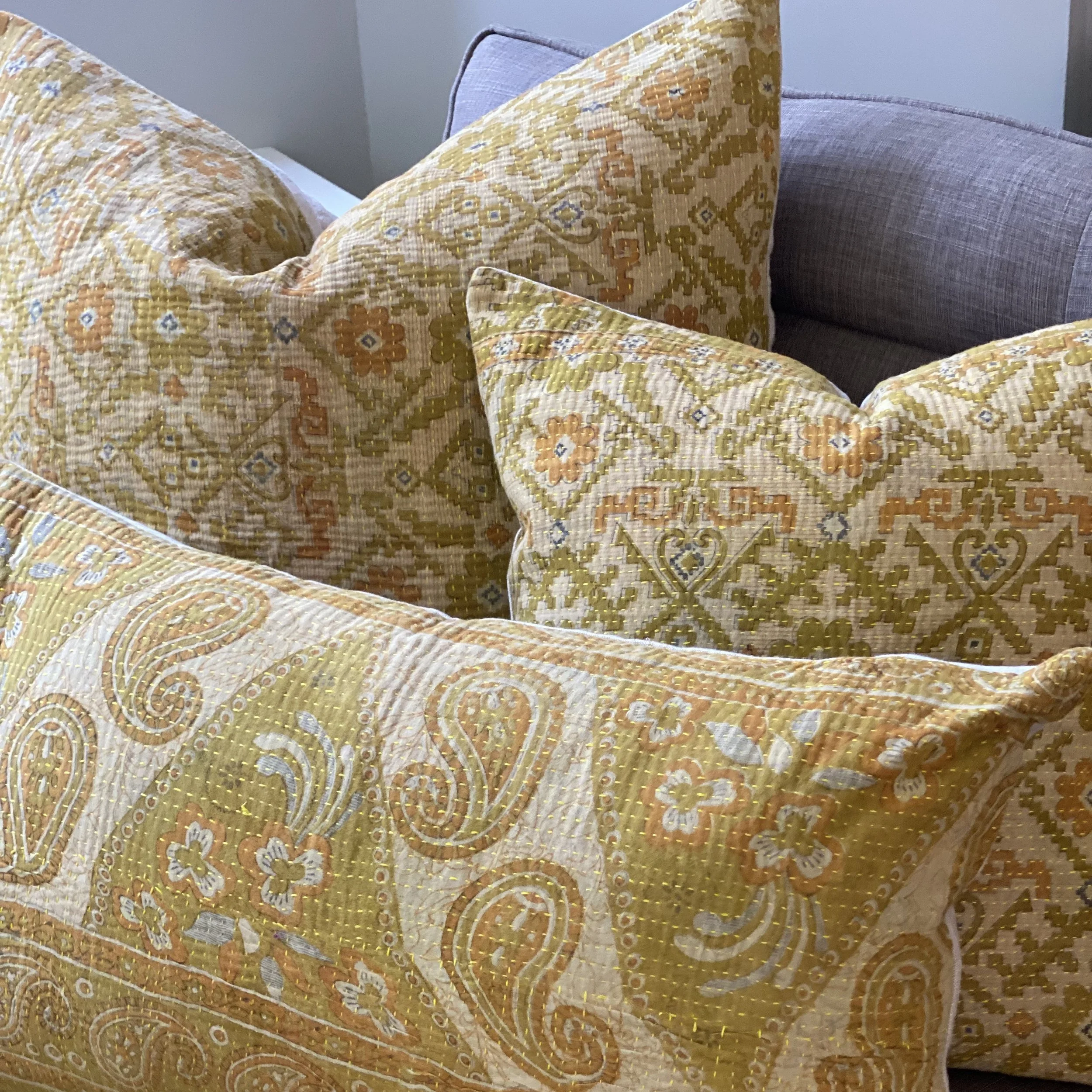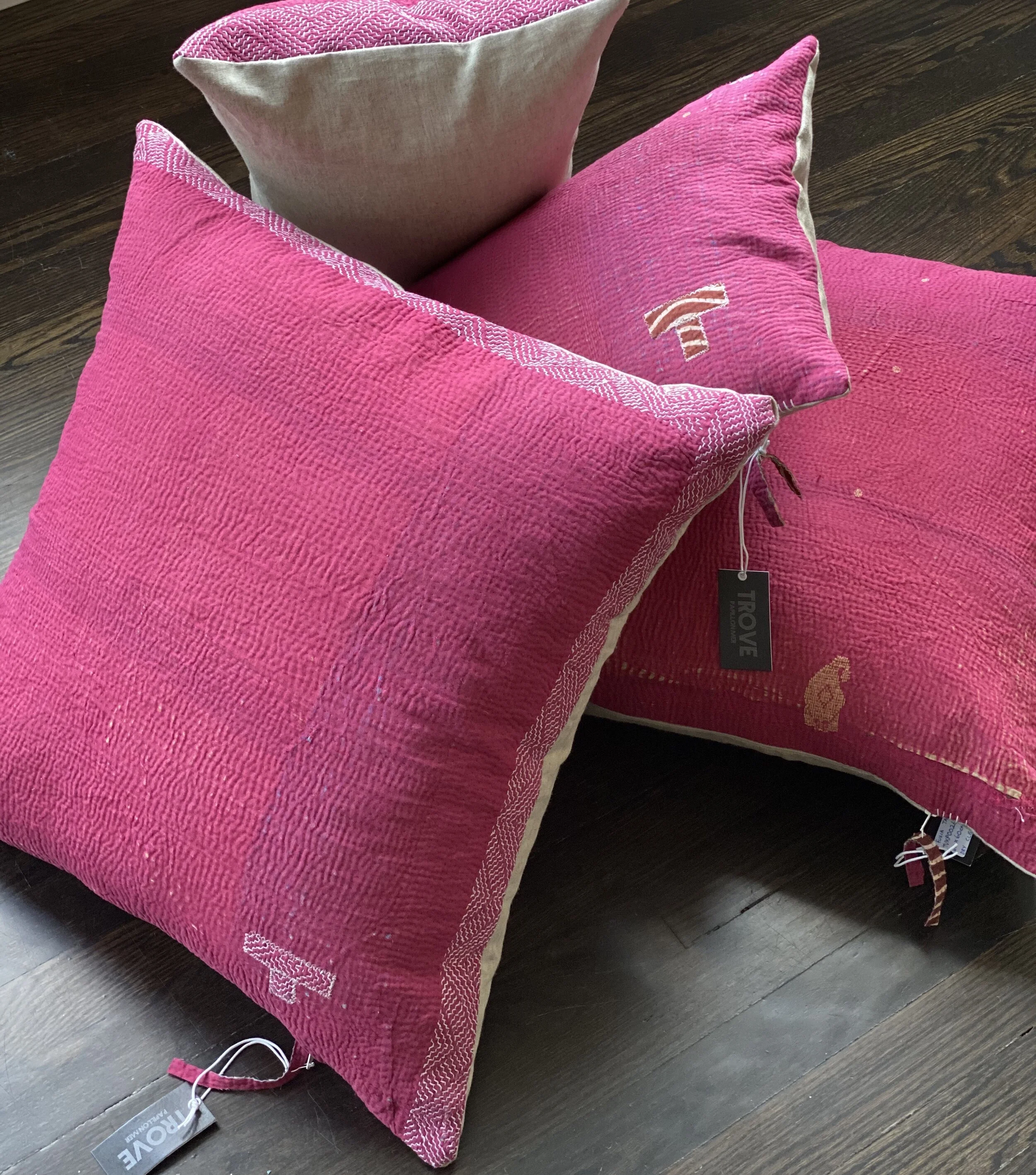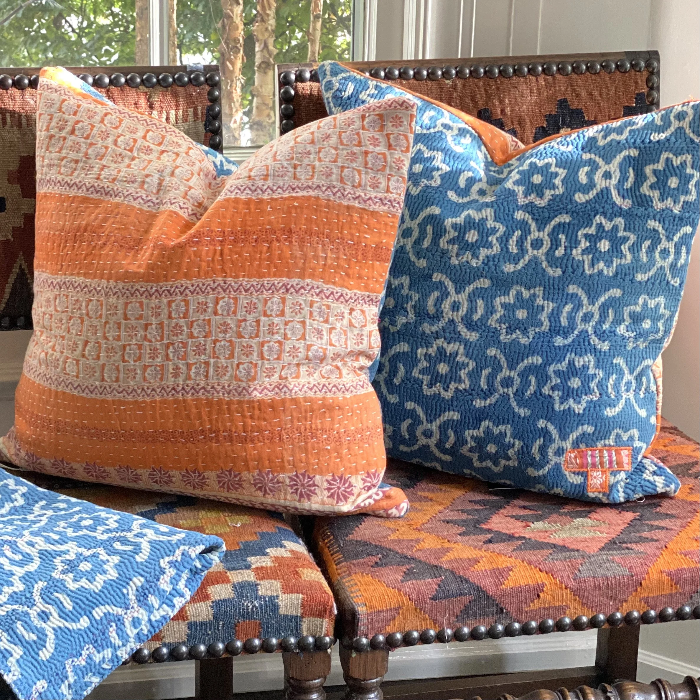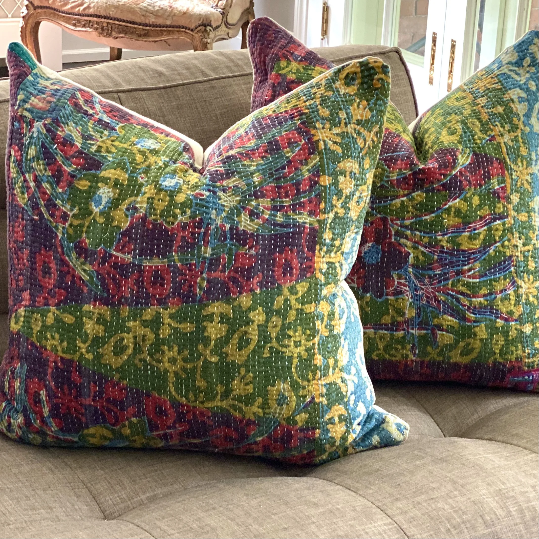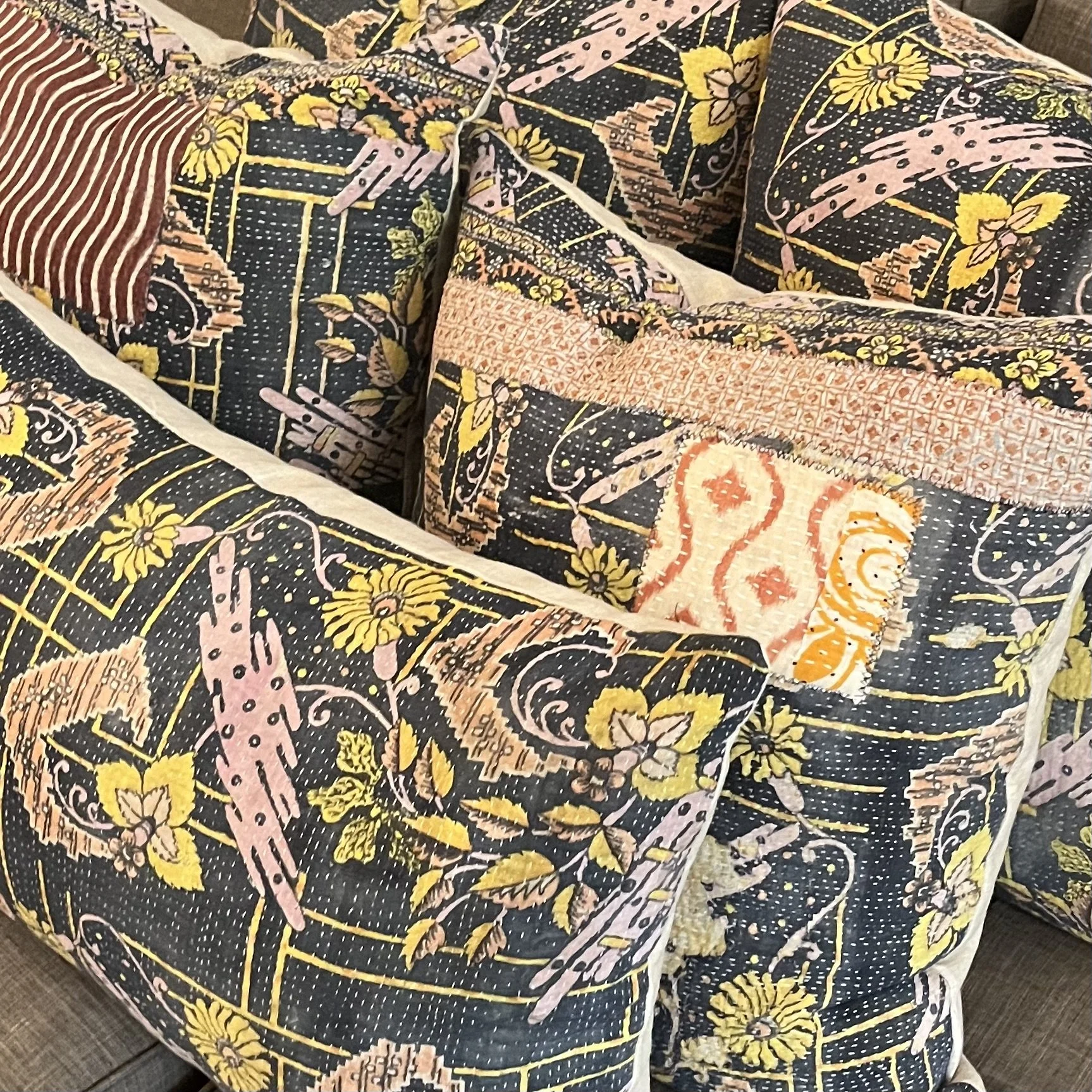 The Face - The face of our pillows are made with organic hand stitched tribal vintage kantha textiles.