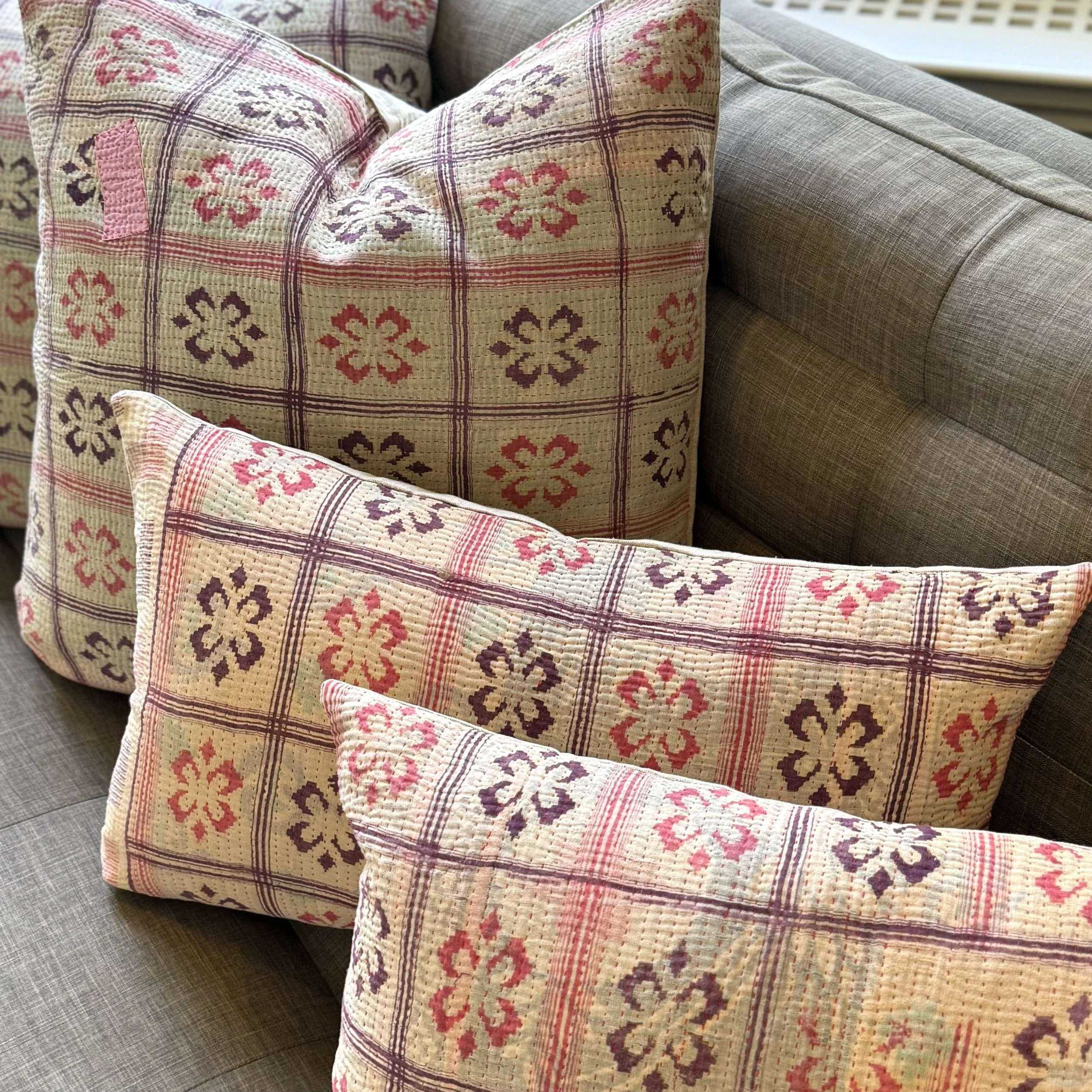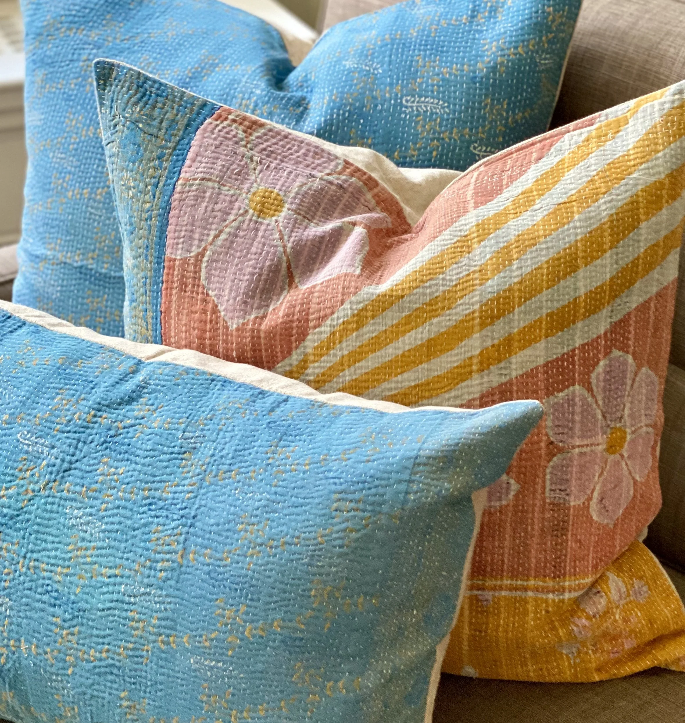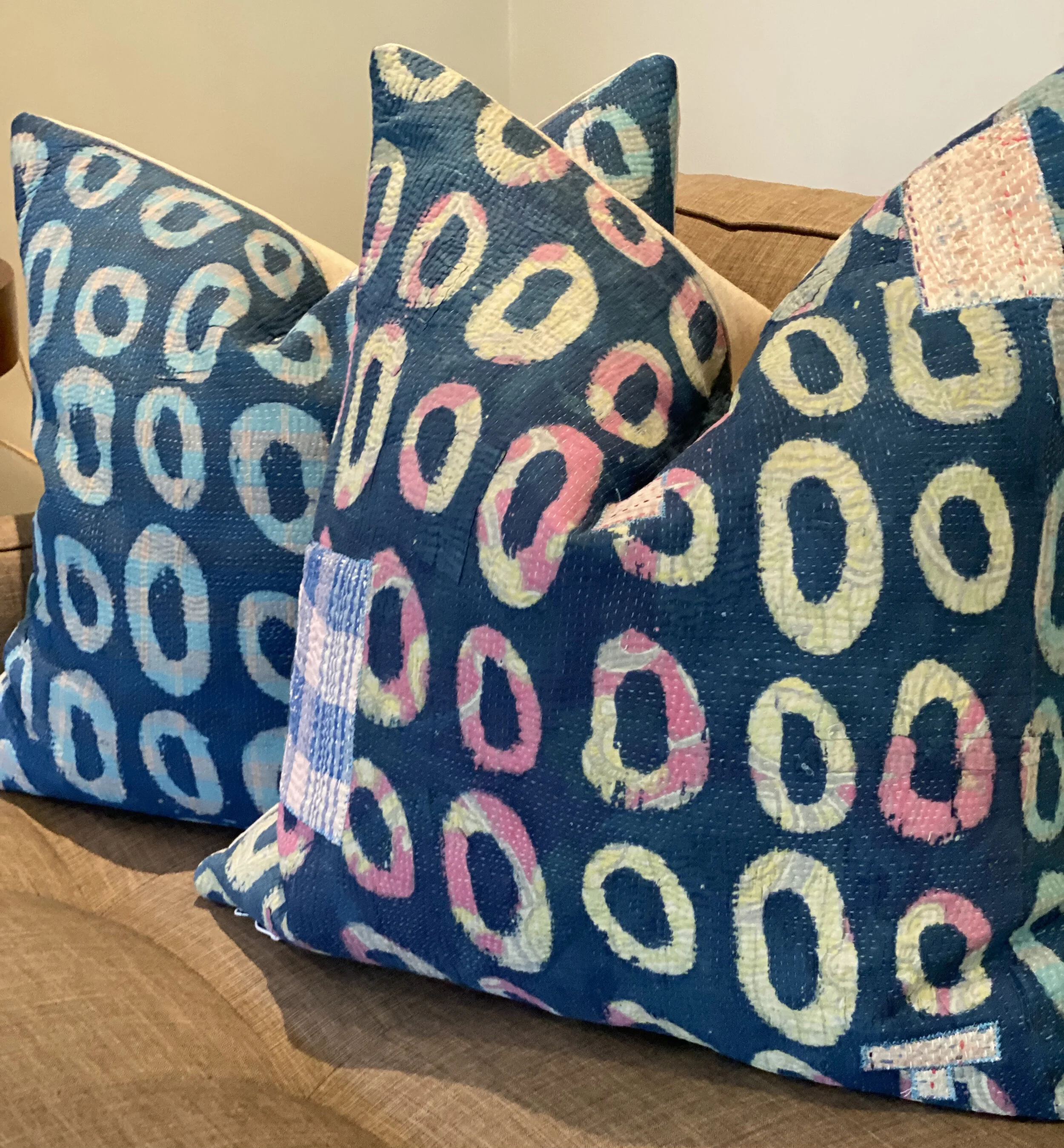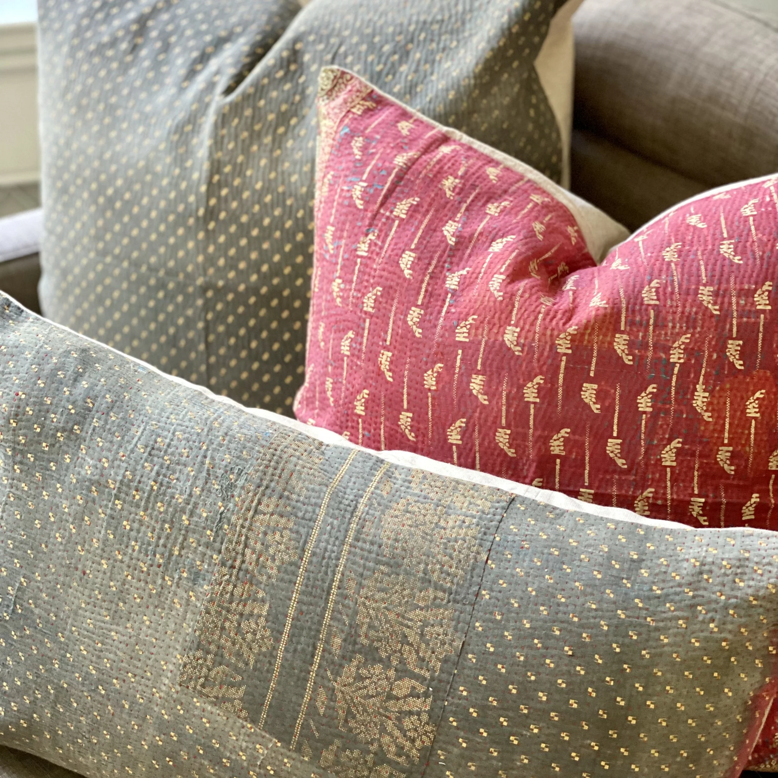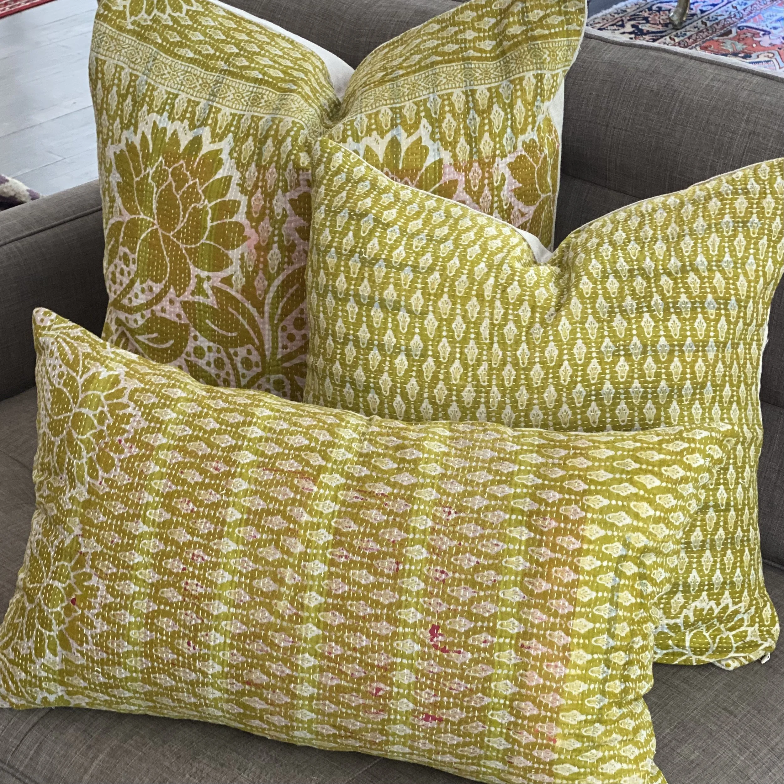 The Face - The face of our pillows are made with organic hand stitched tribal vintage kantha textiles.