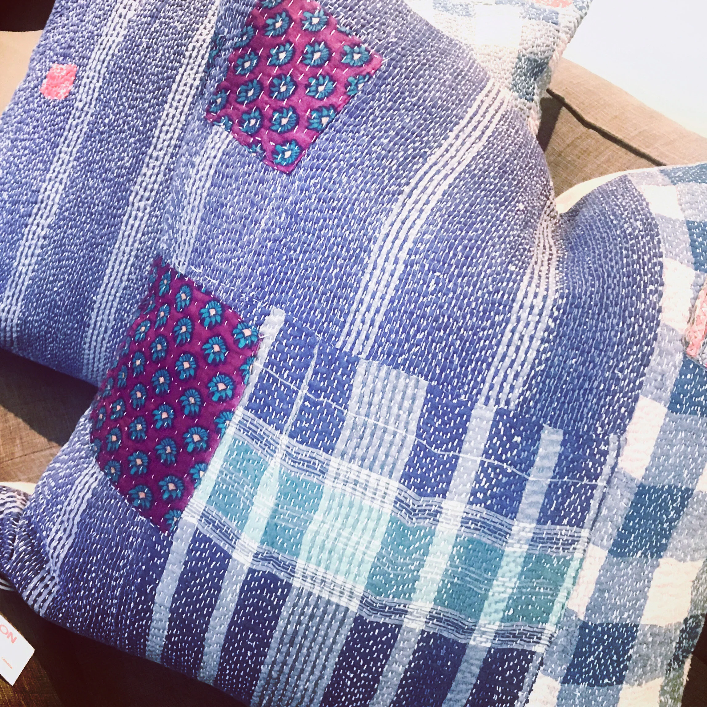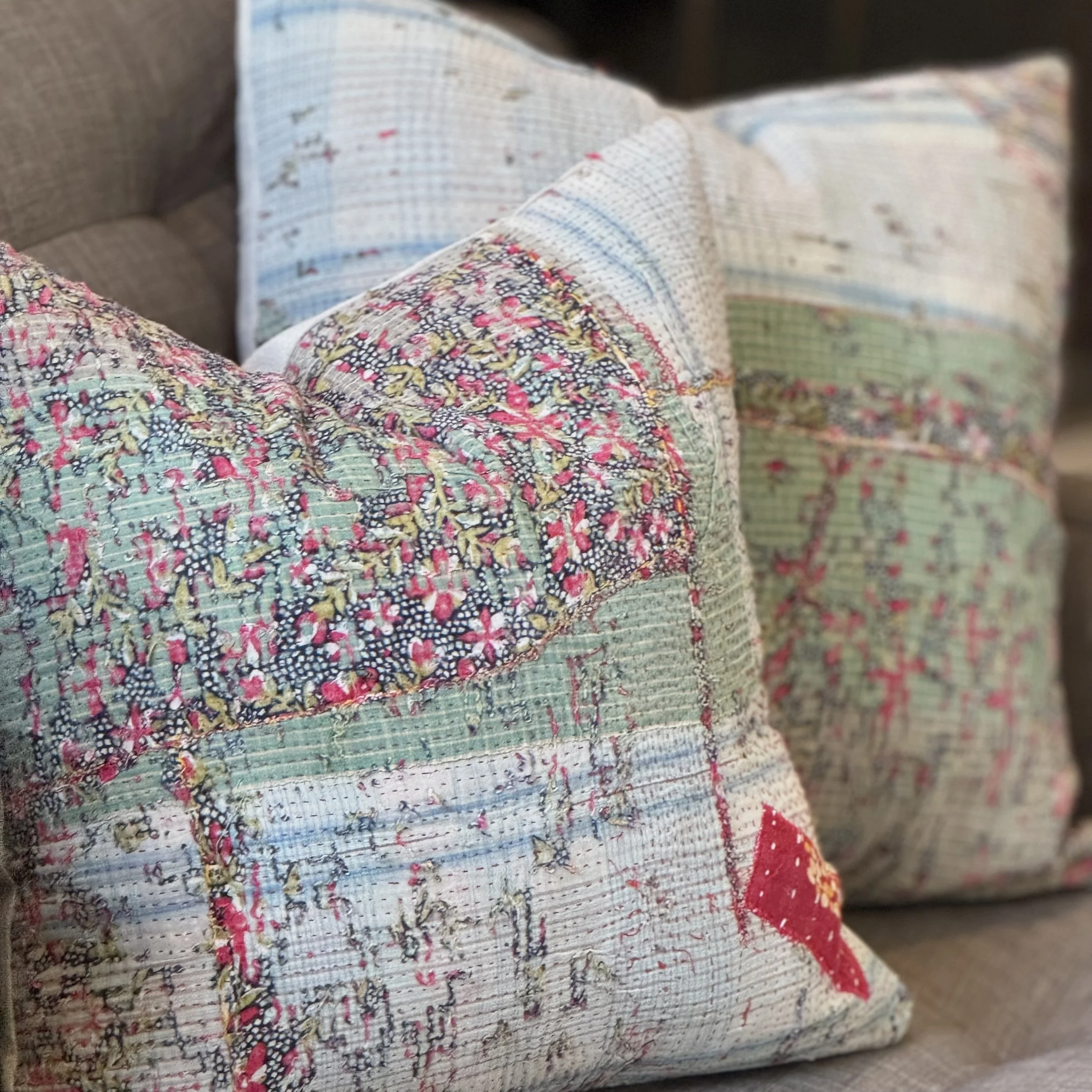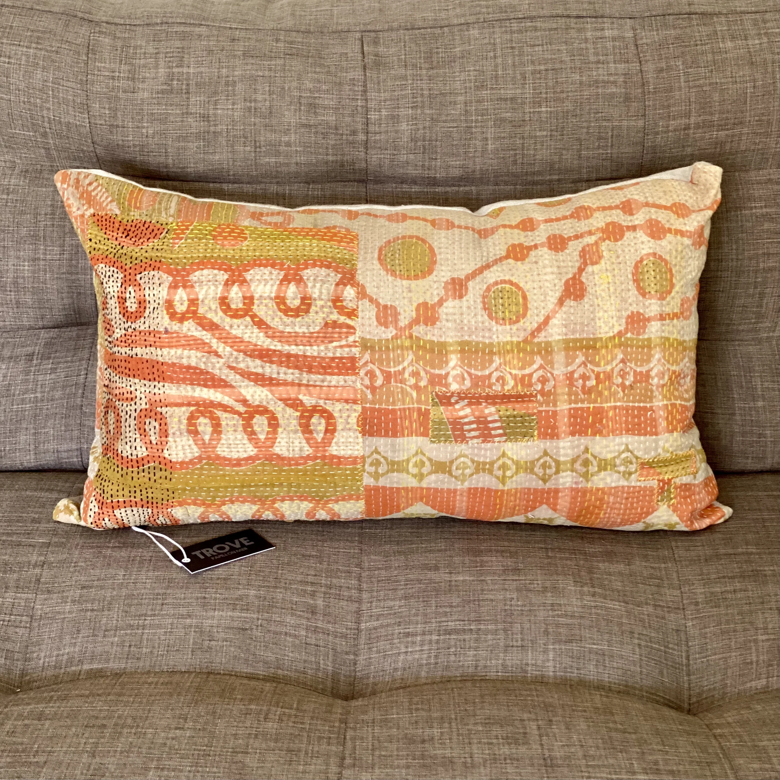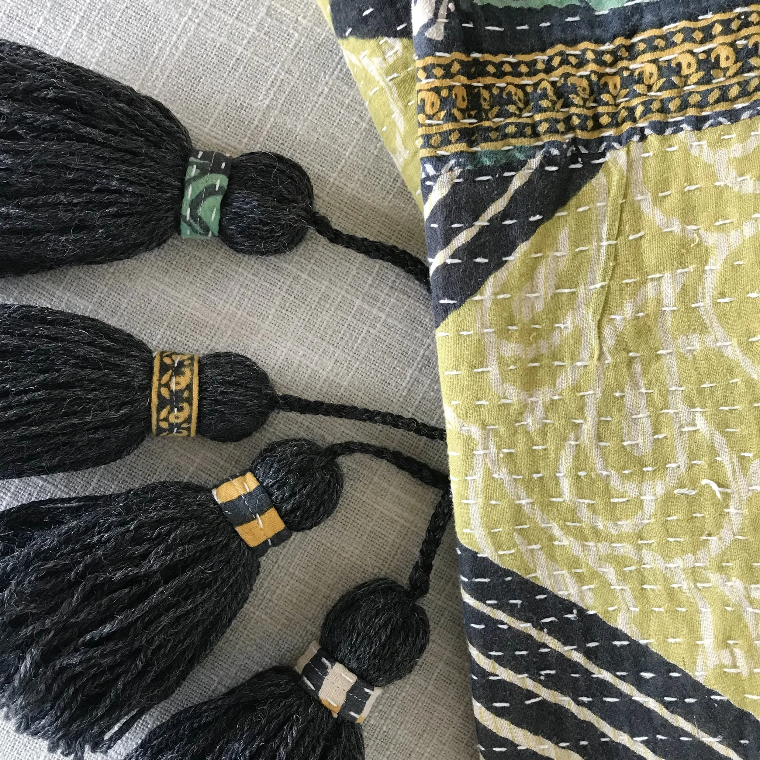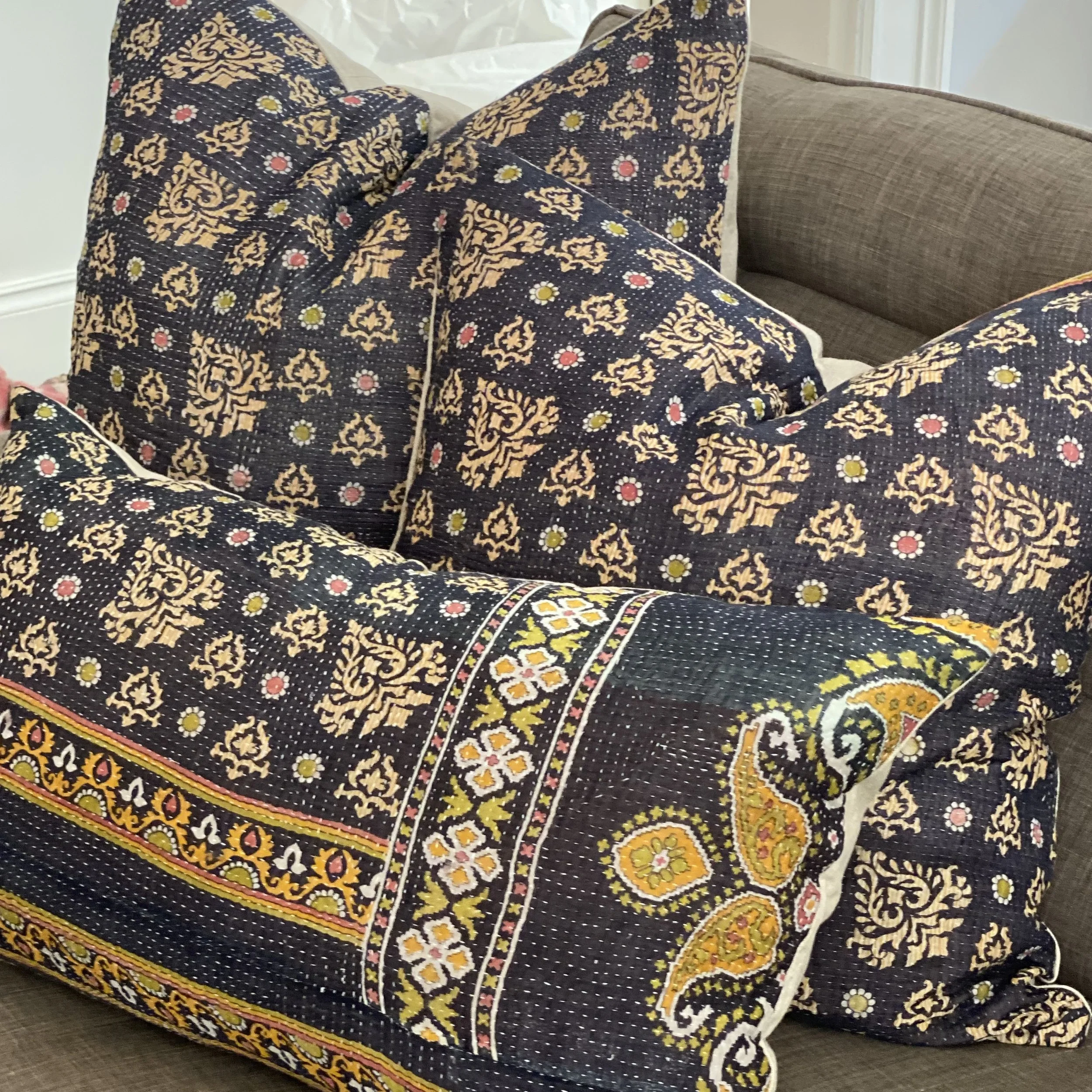 The Face - The face of our pillows are made with organic hand stitched tribal vintage kantha textiles.