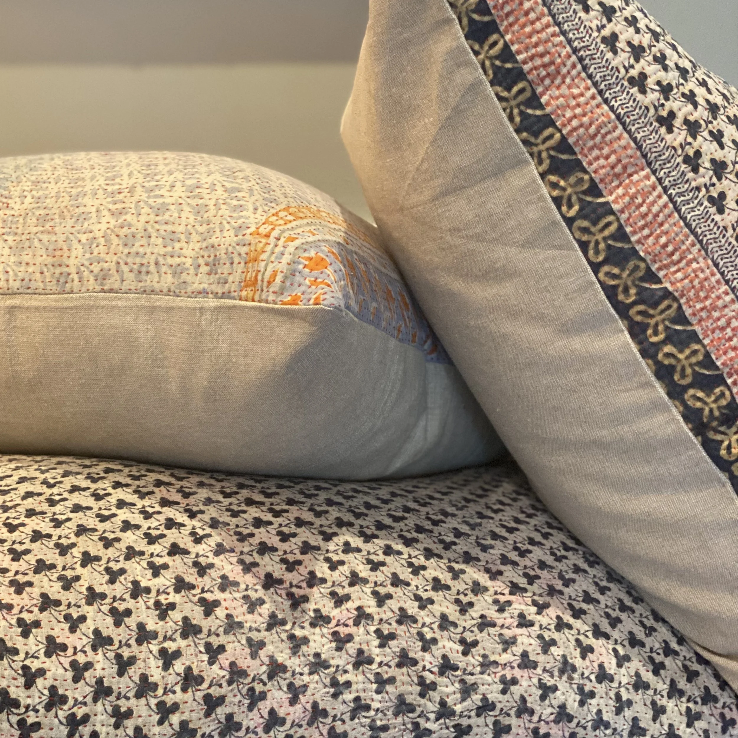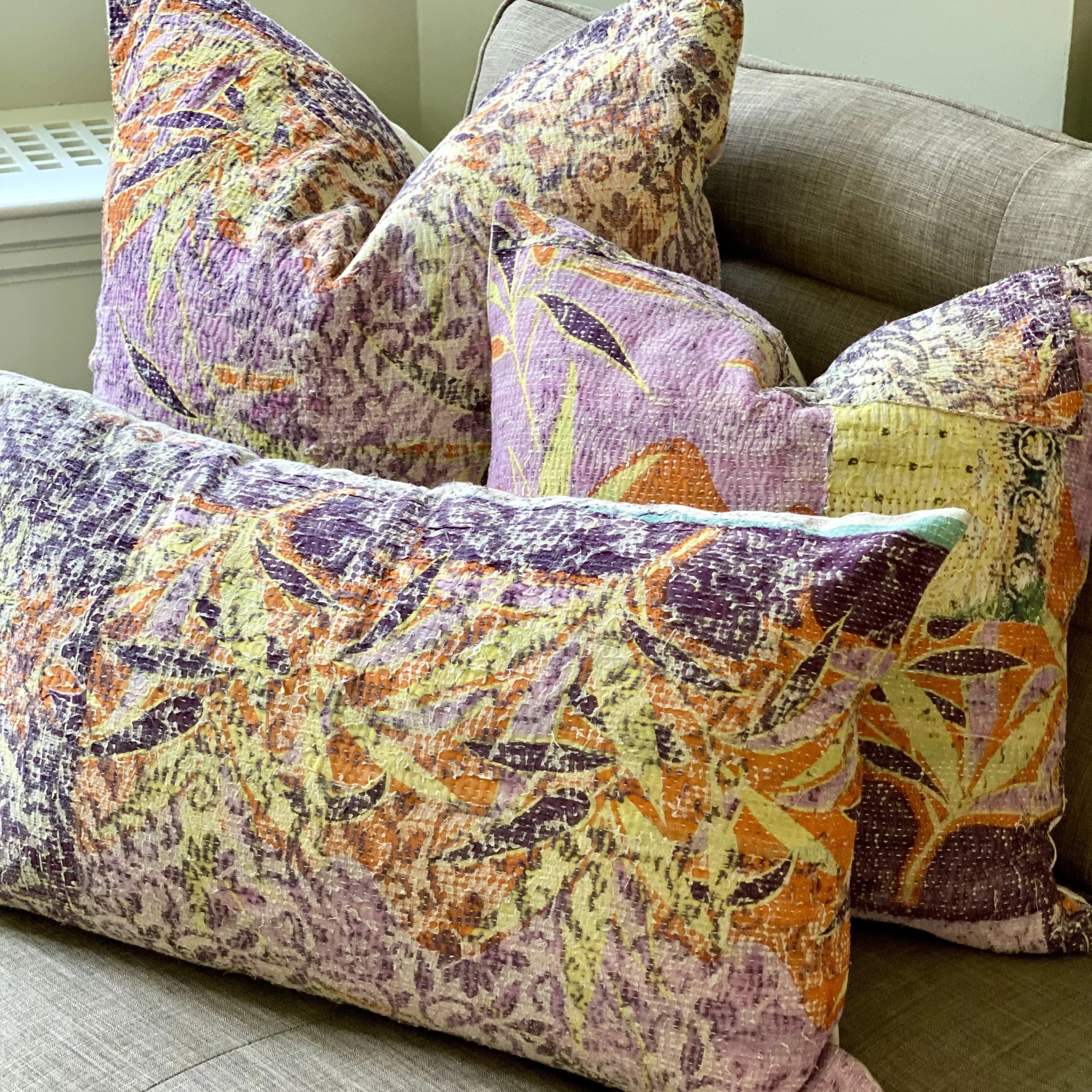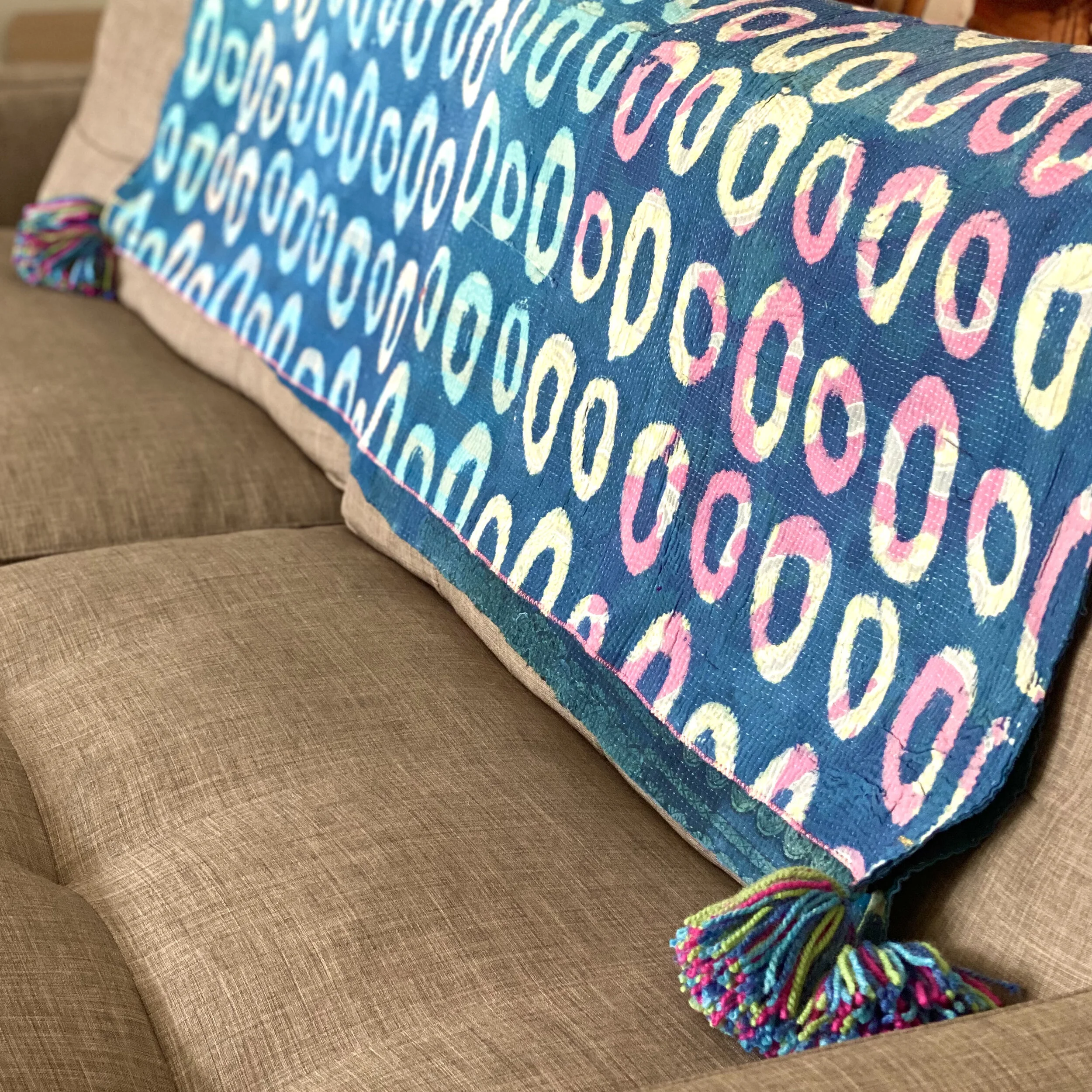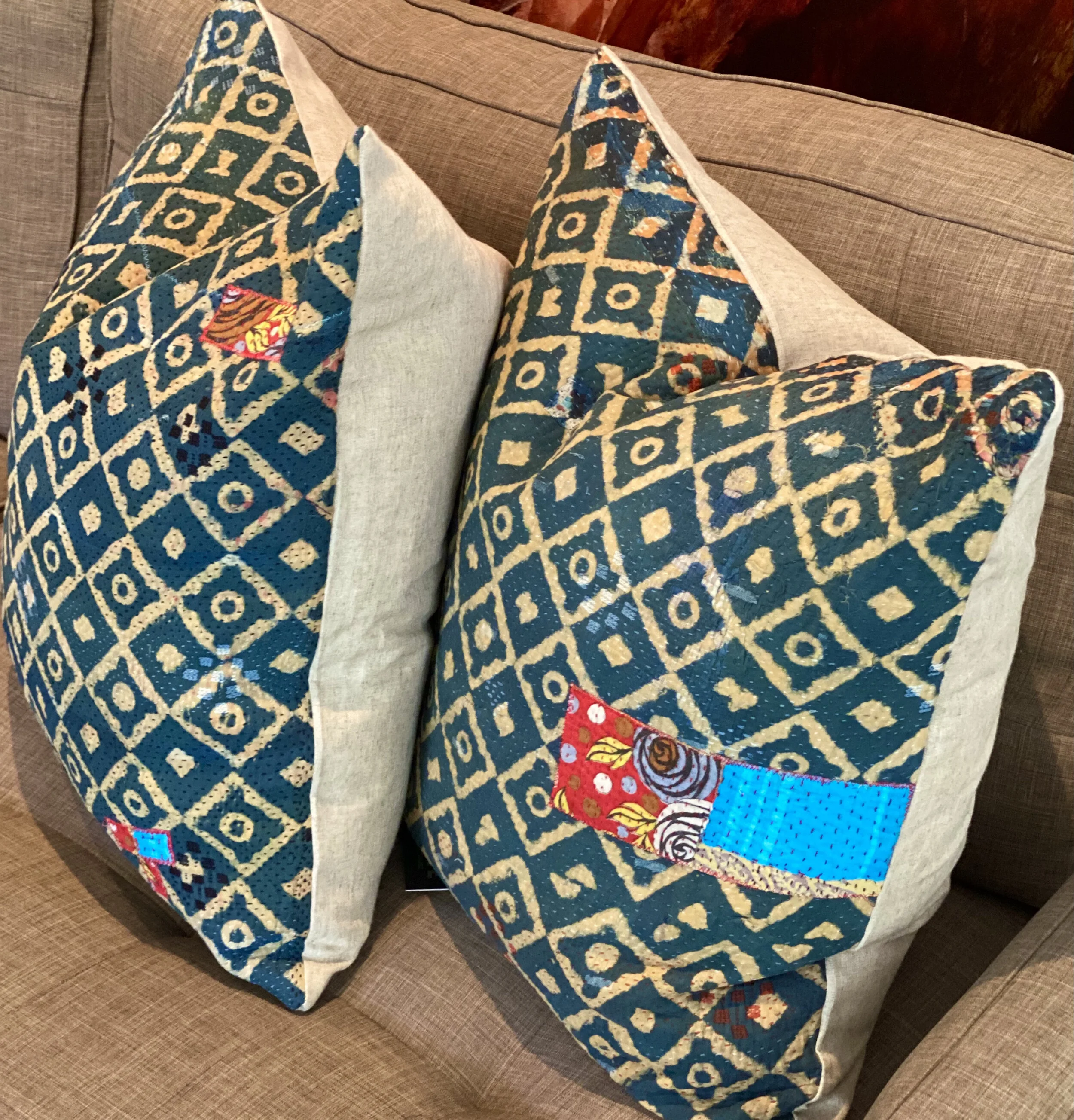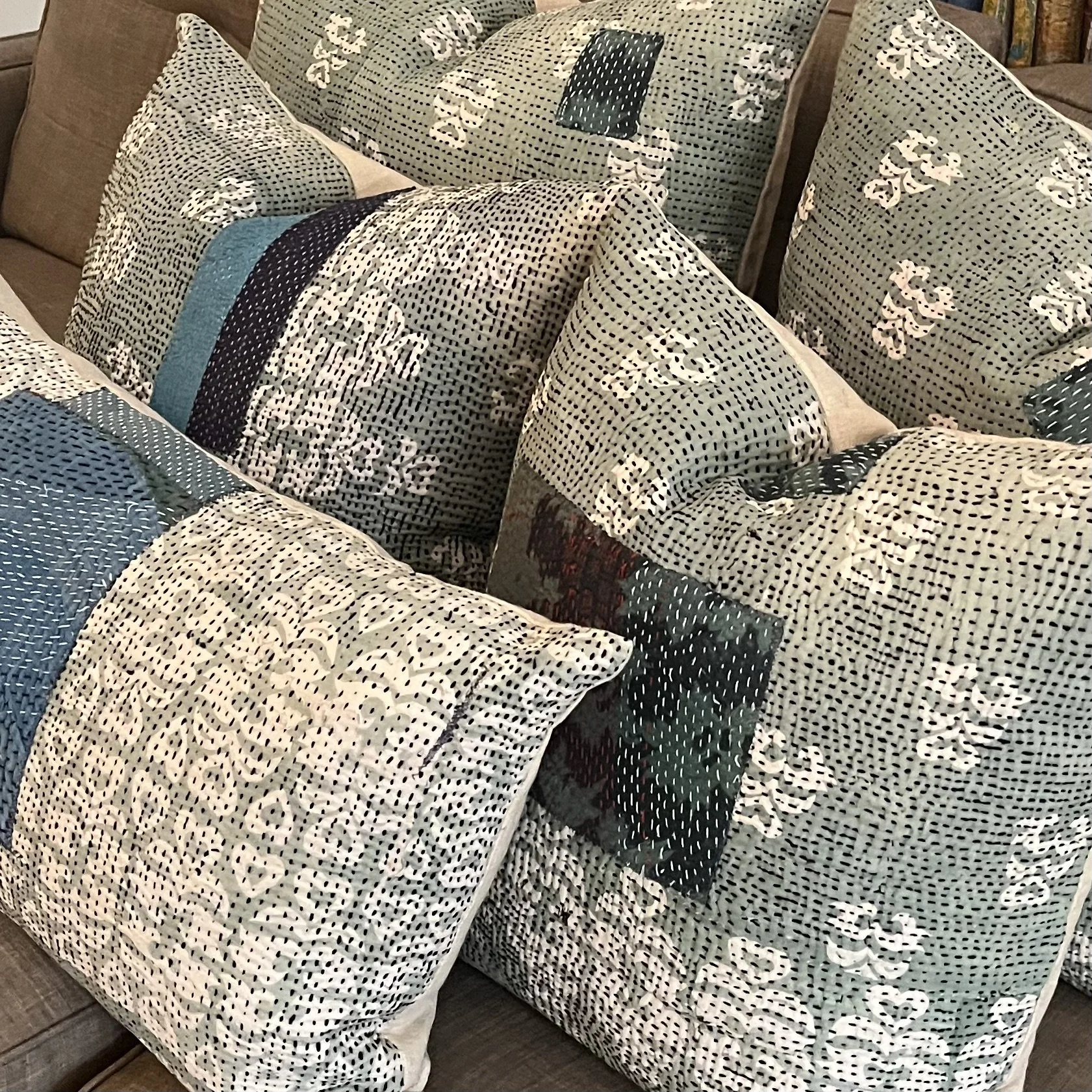 The Face - The face of our pillows are made with organic hand stitched tribal vintage kantha textiles.