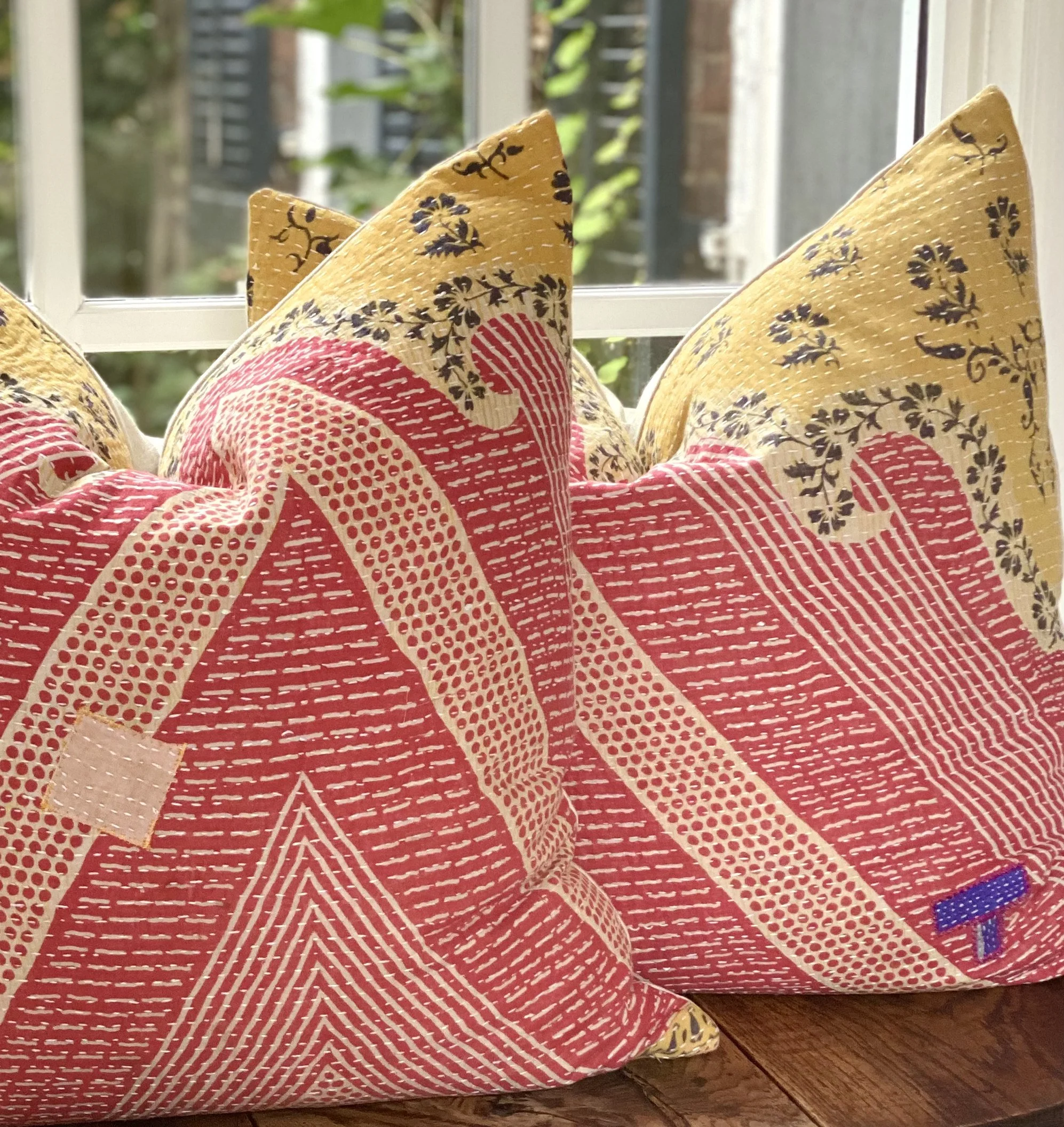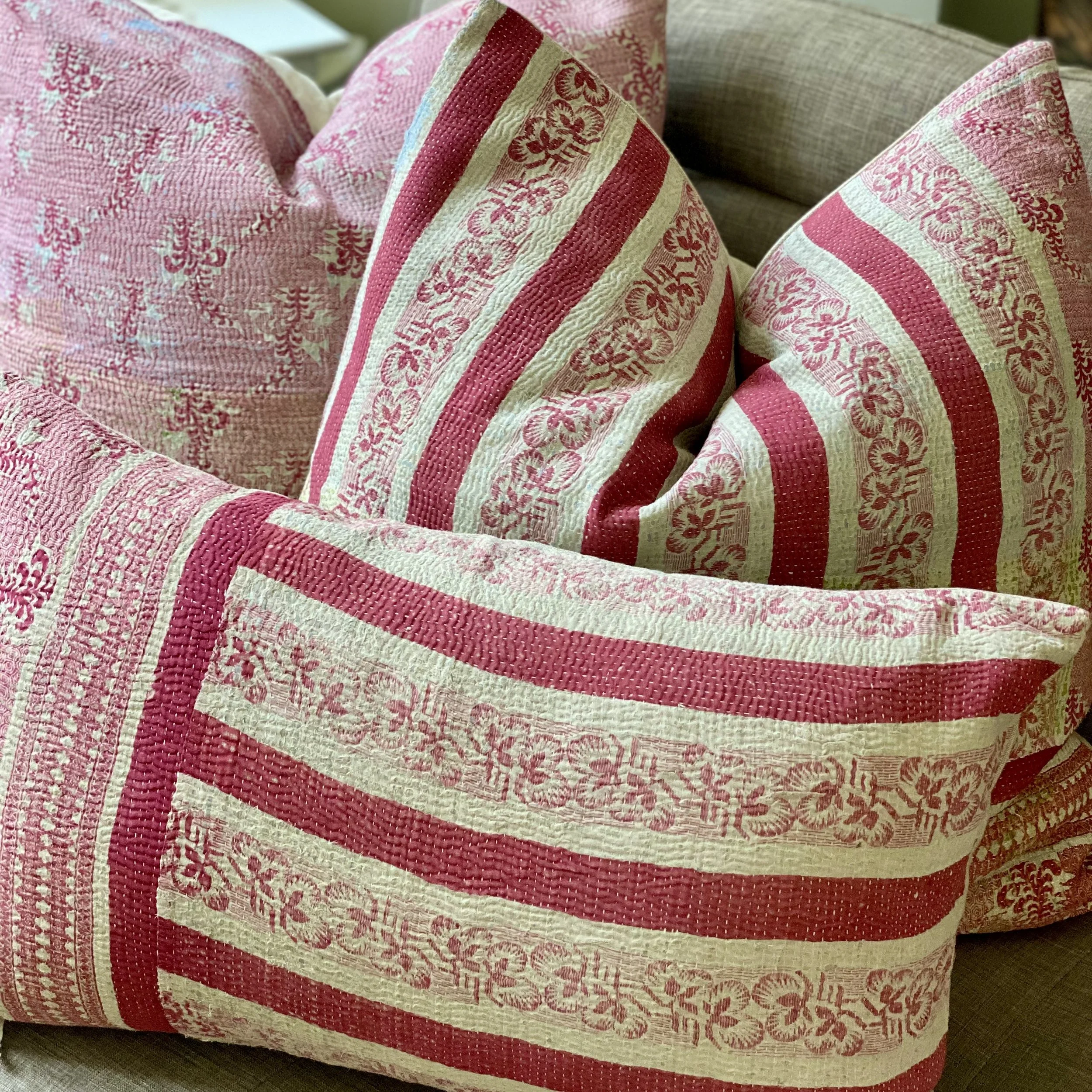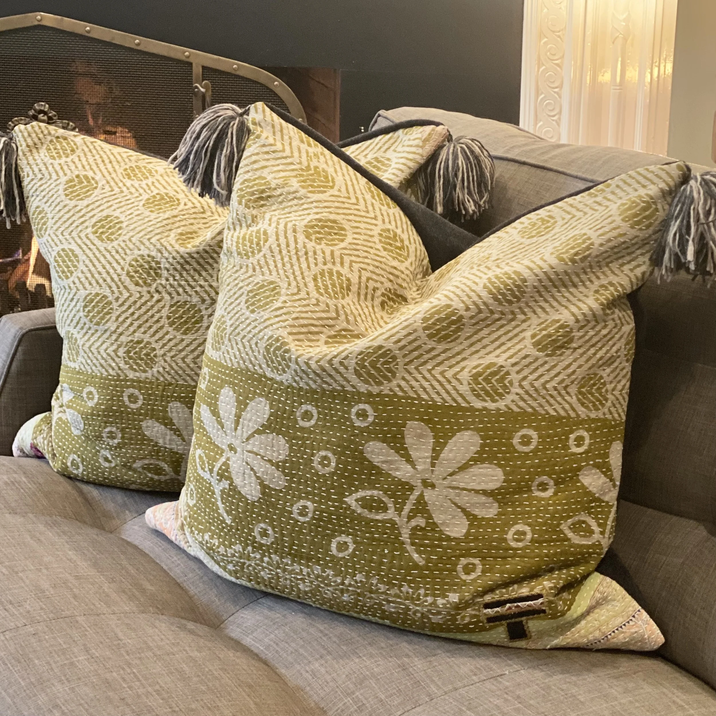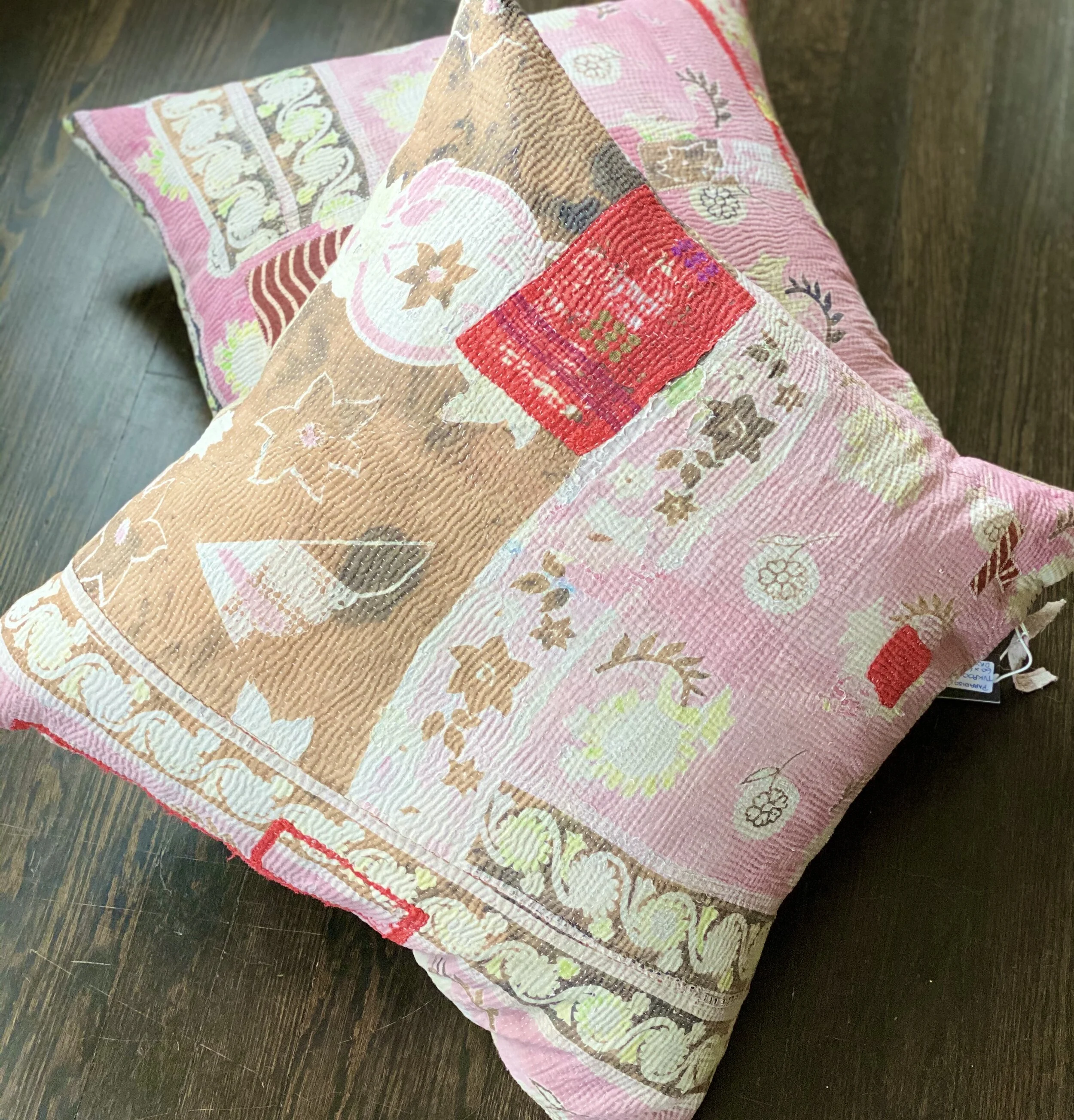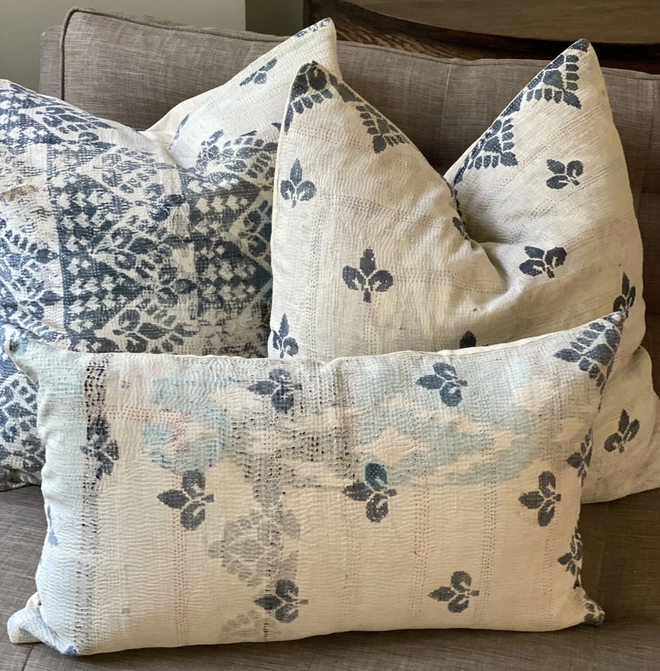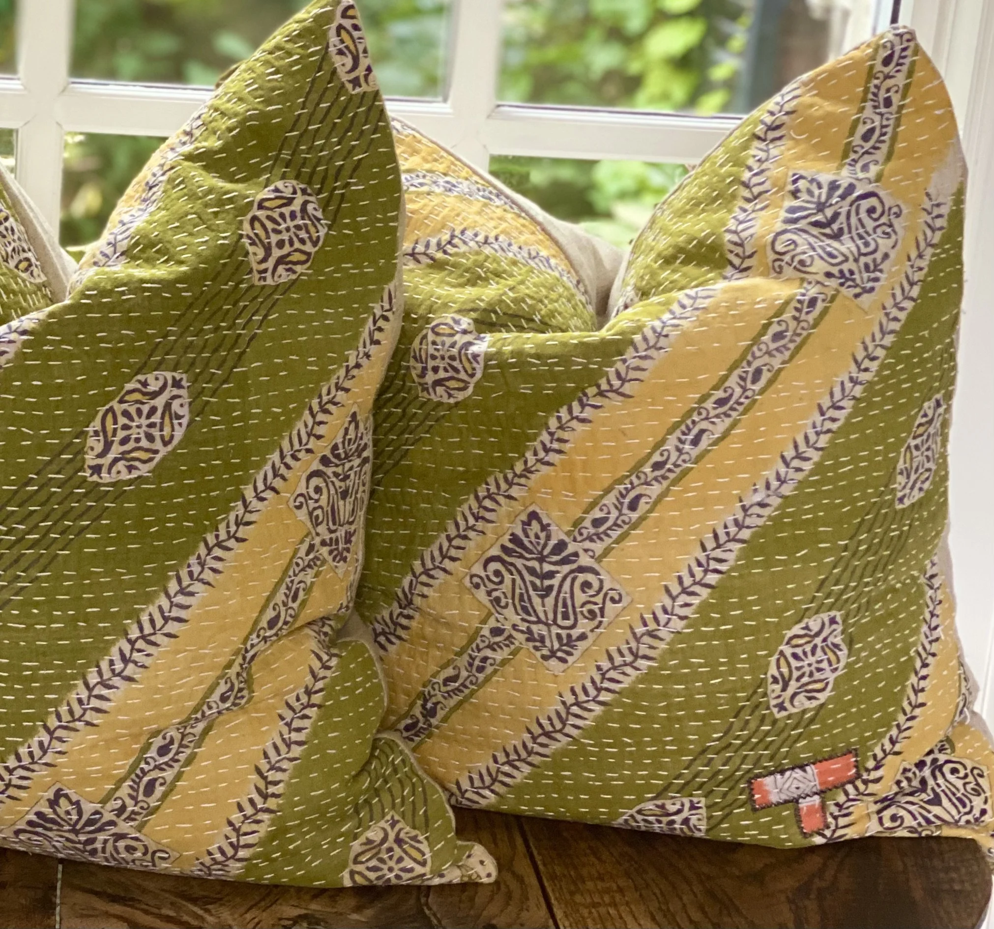The Face - The face of our pillows are made with organic hand stitched tribal vintage kantha textiles.