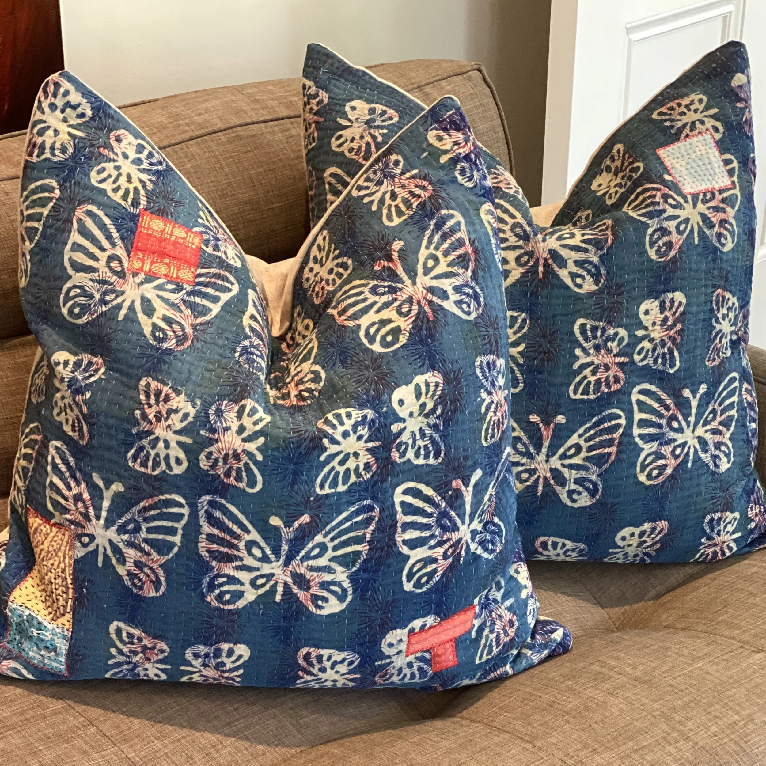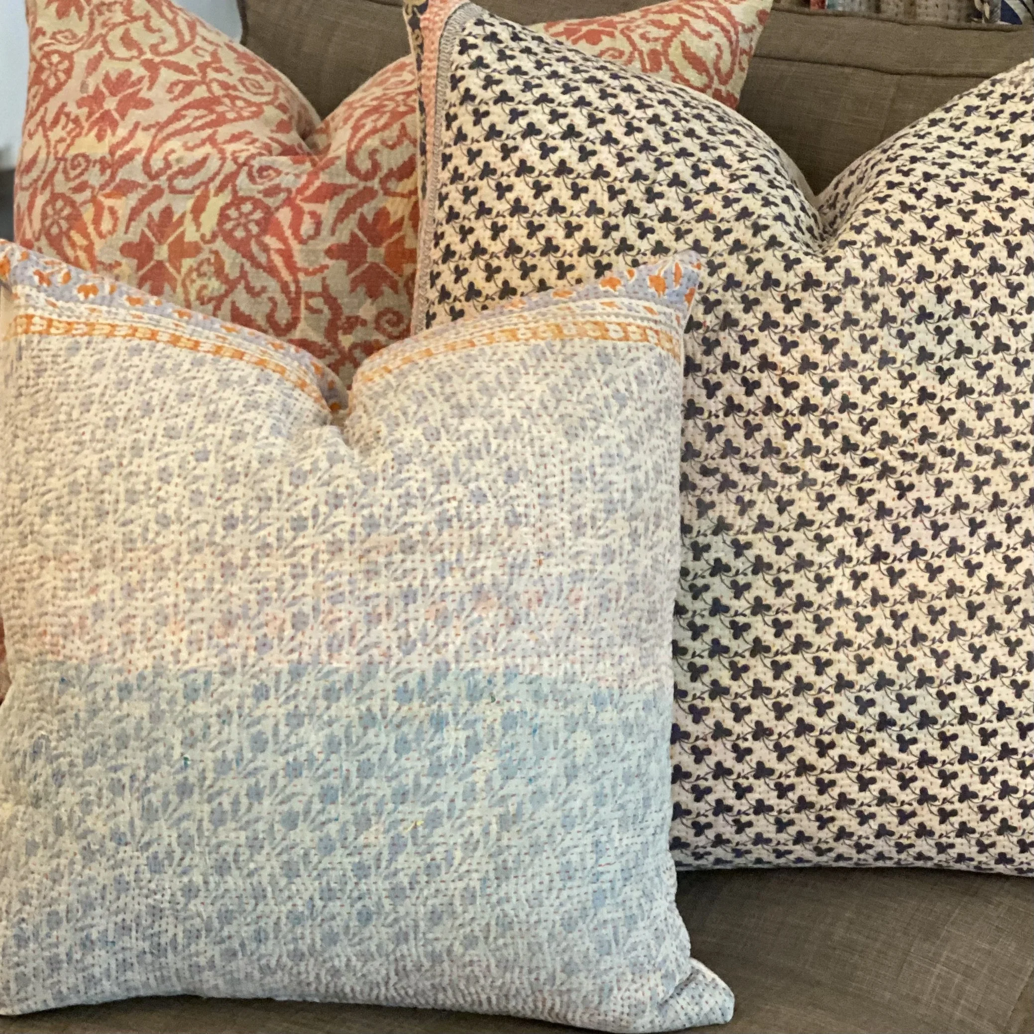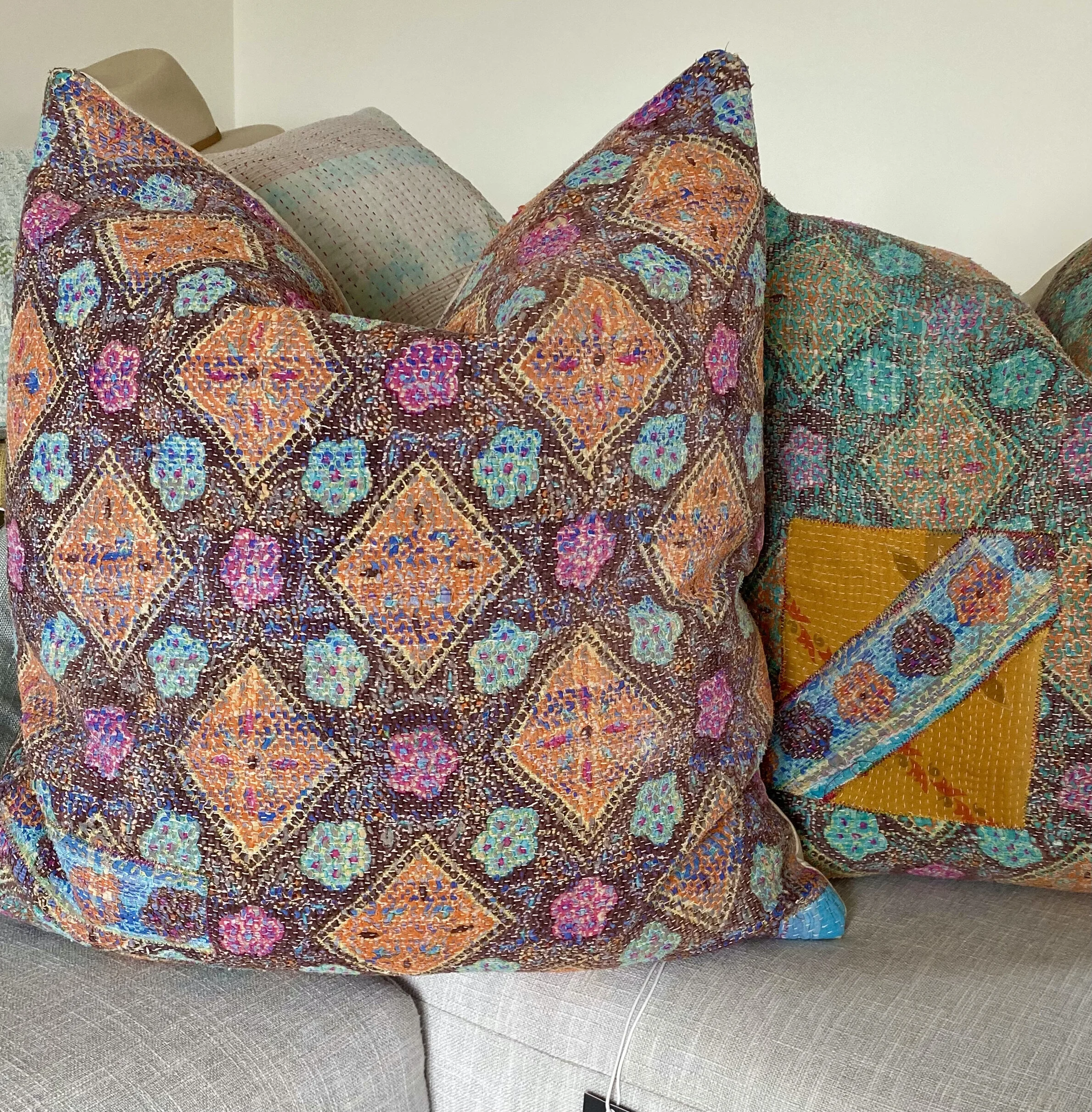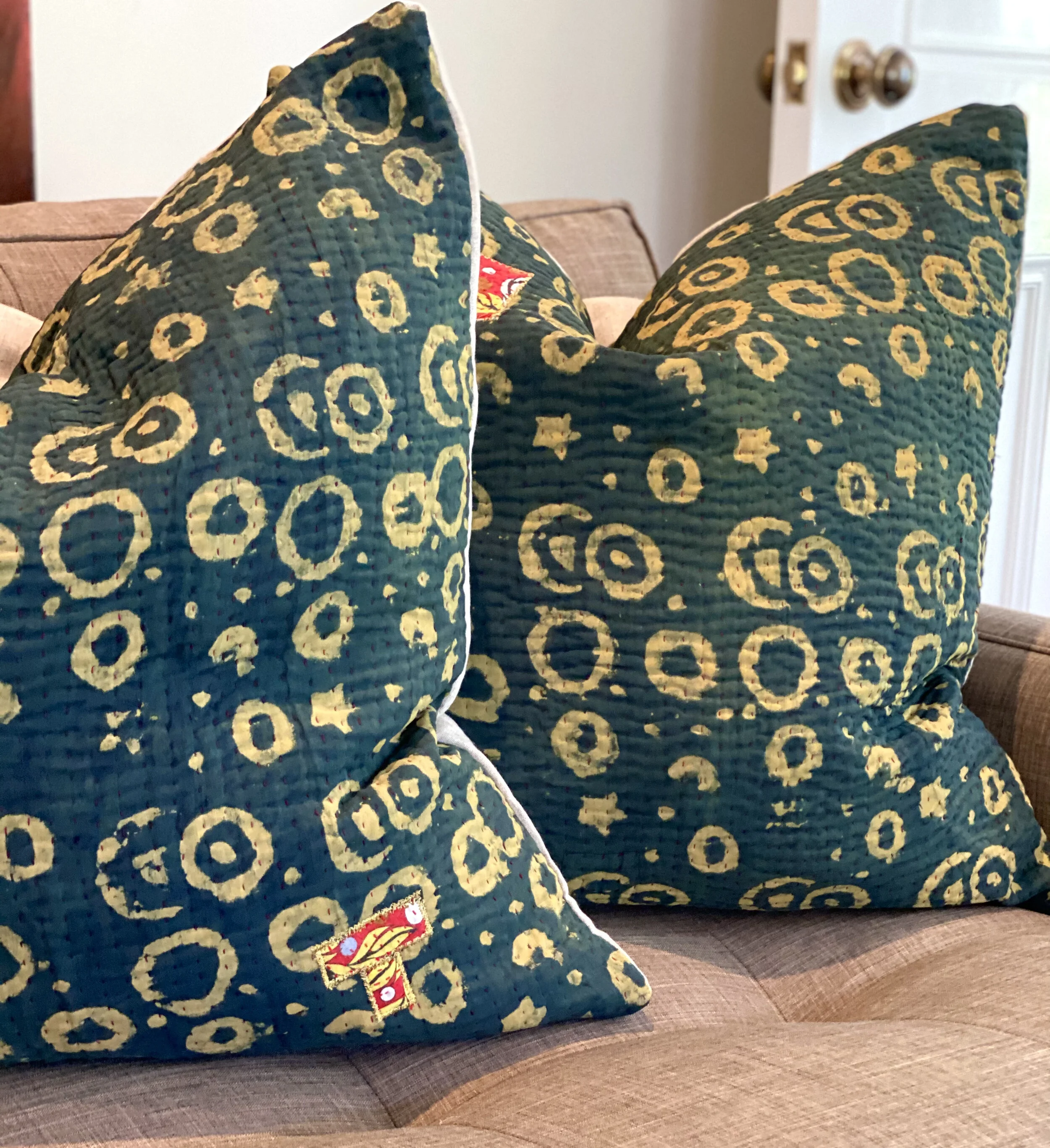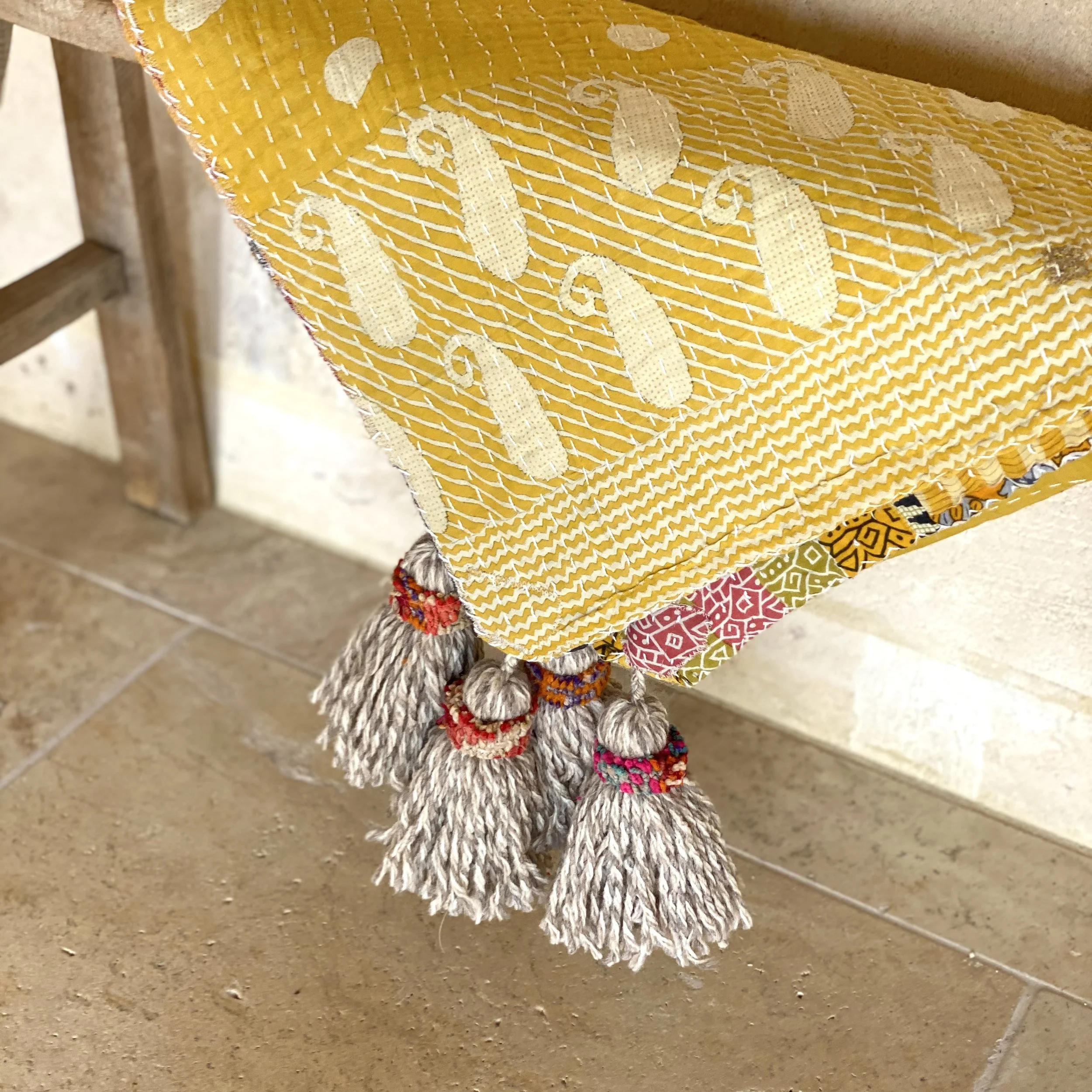 The Face - The face of our pillows are made with organic hand stitched tribal vintage kantha textiles.