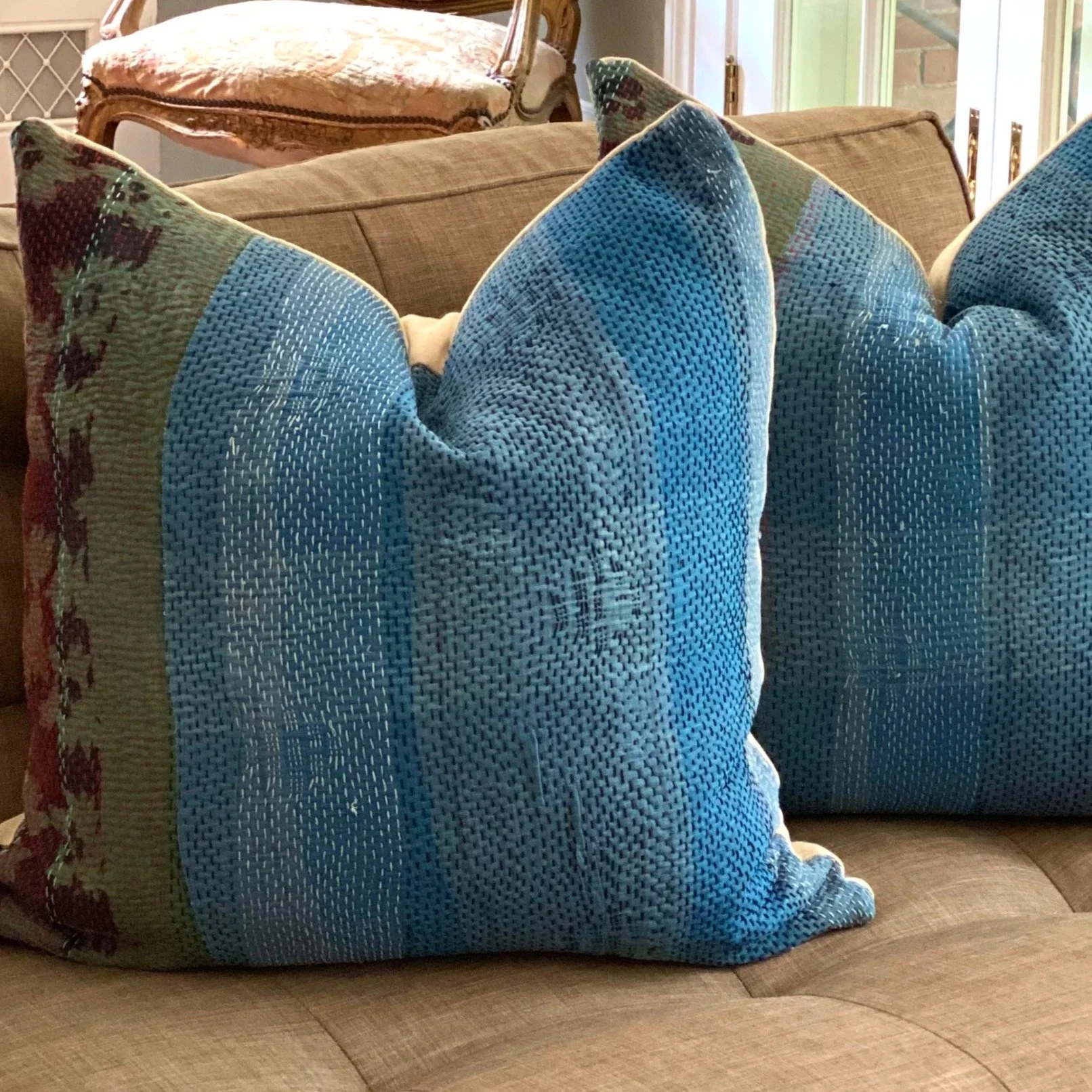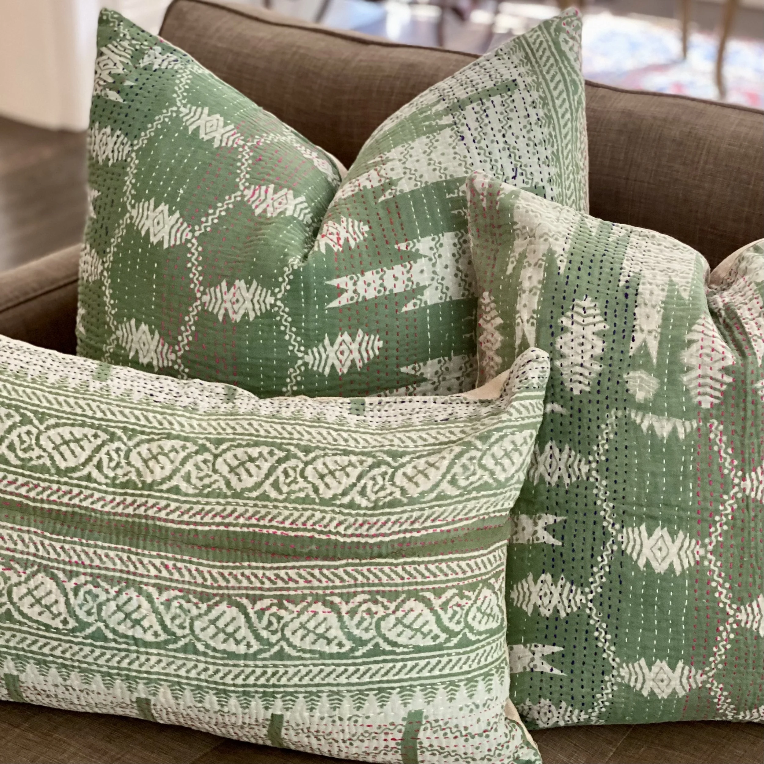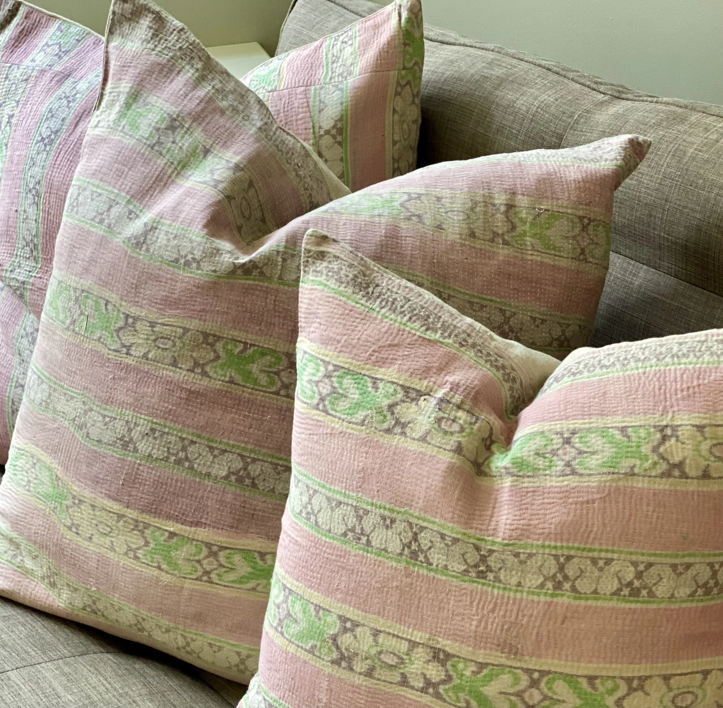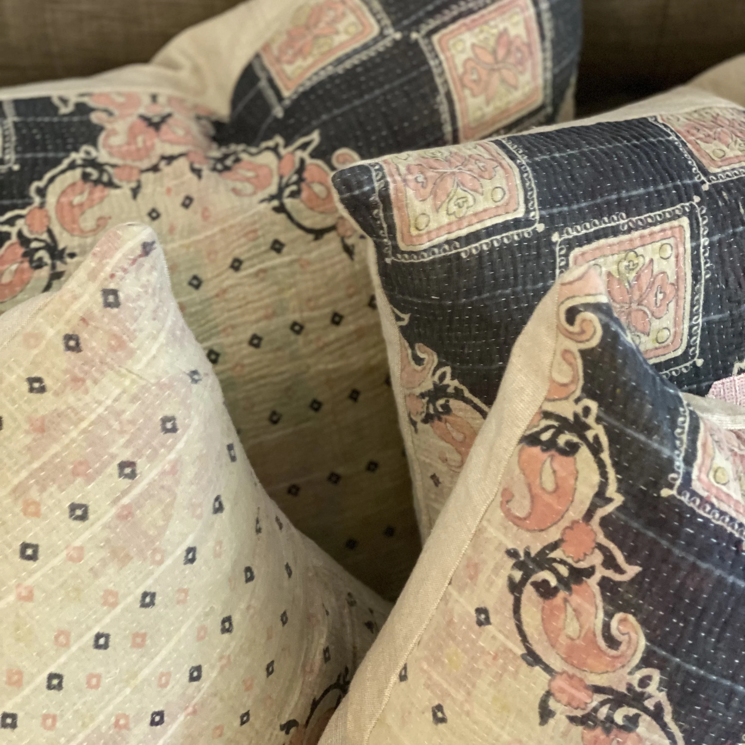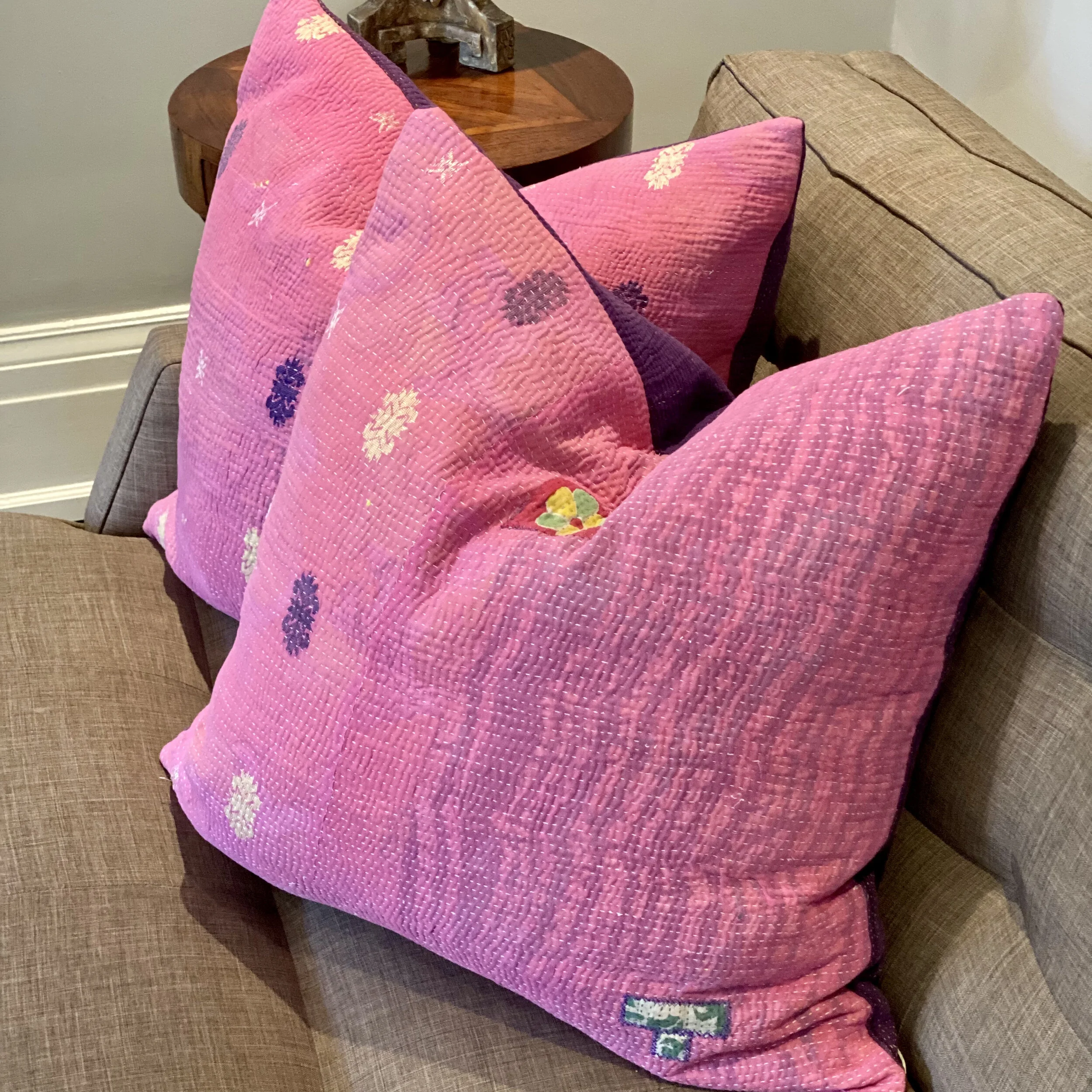 The Face - The face of our pillows are made with organic hand stitched tribal vintage kantha textiles.