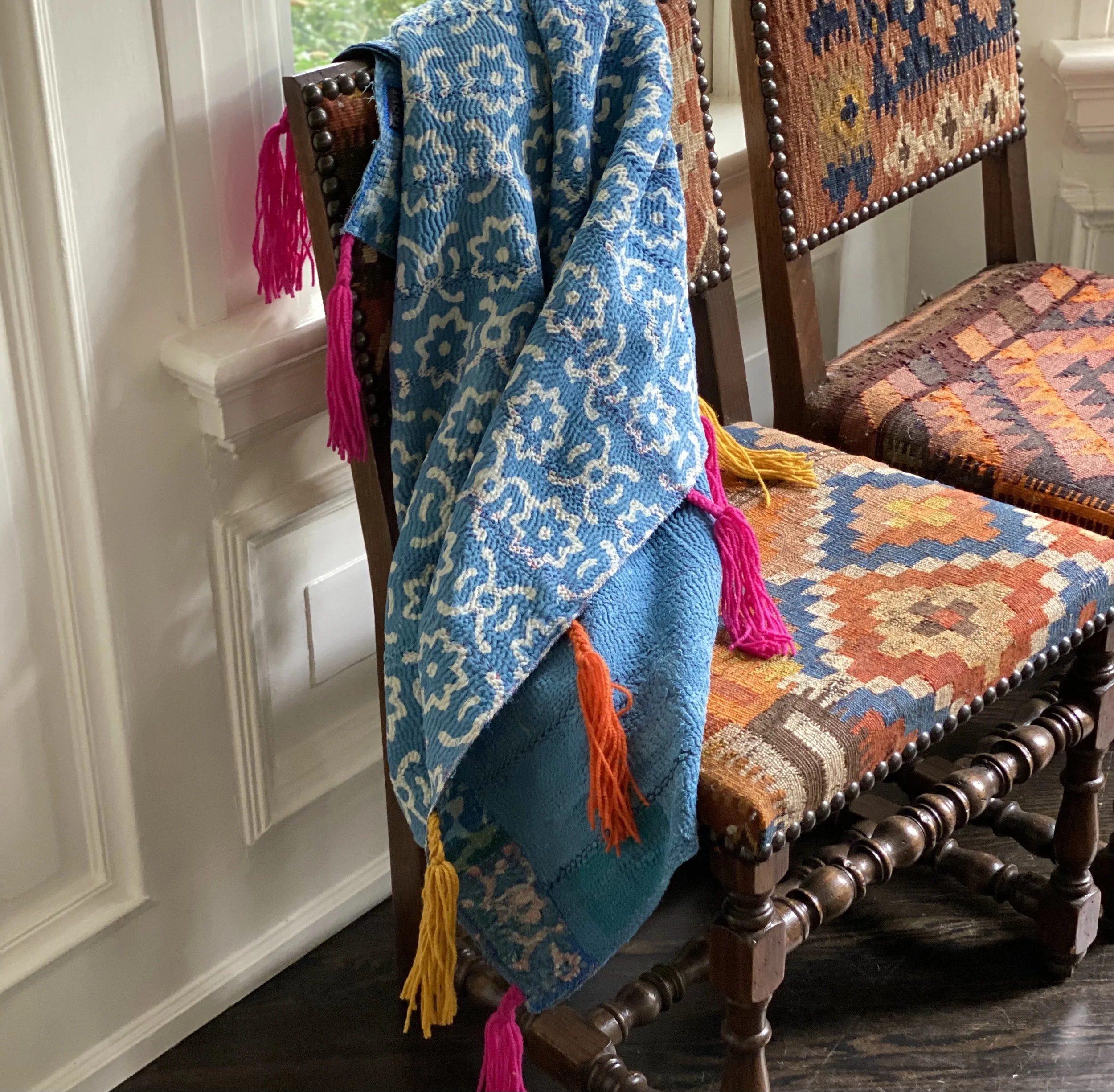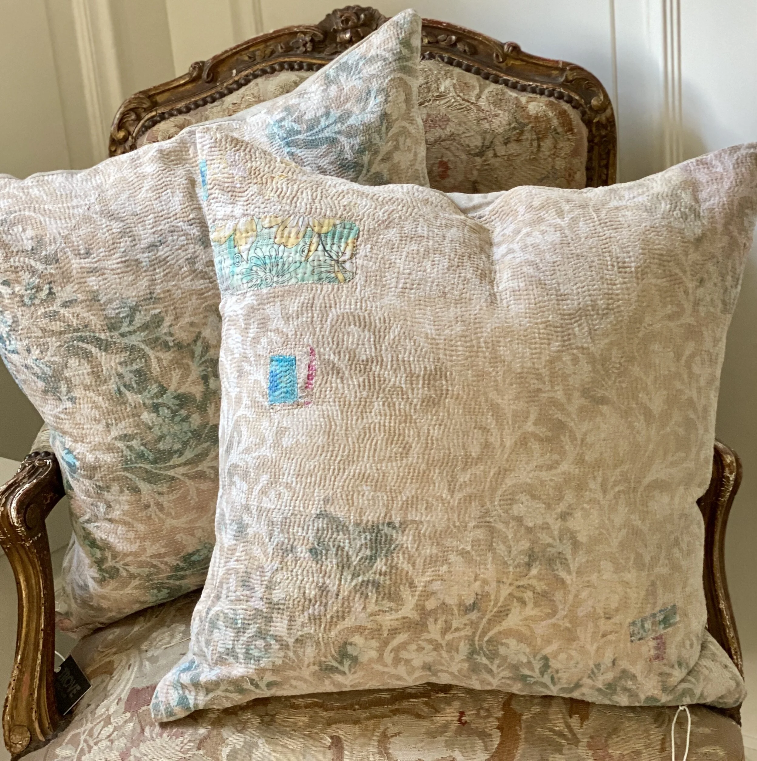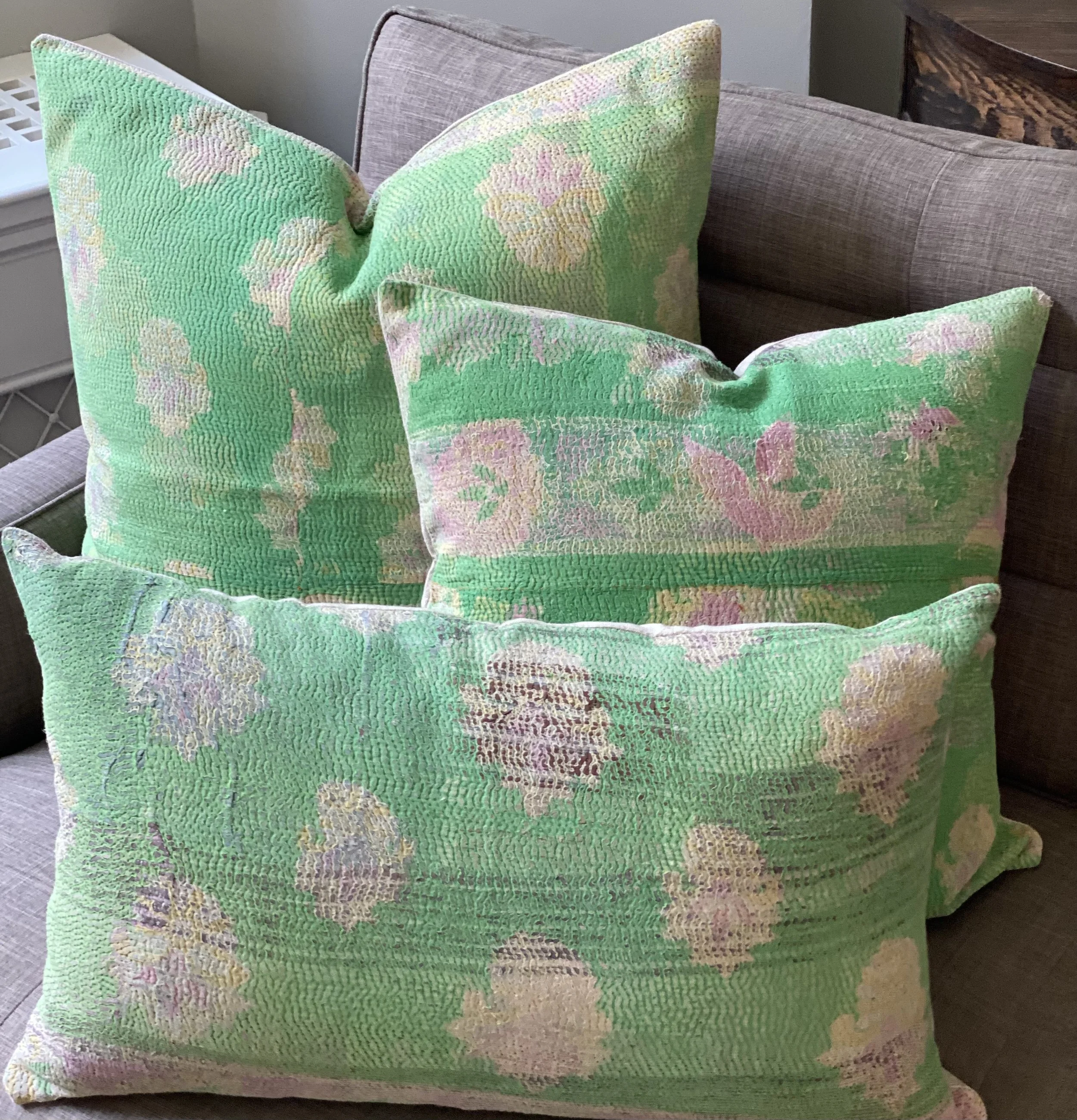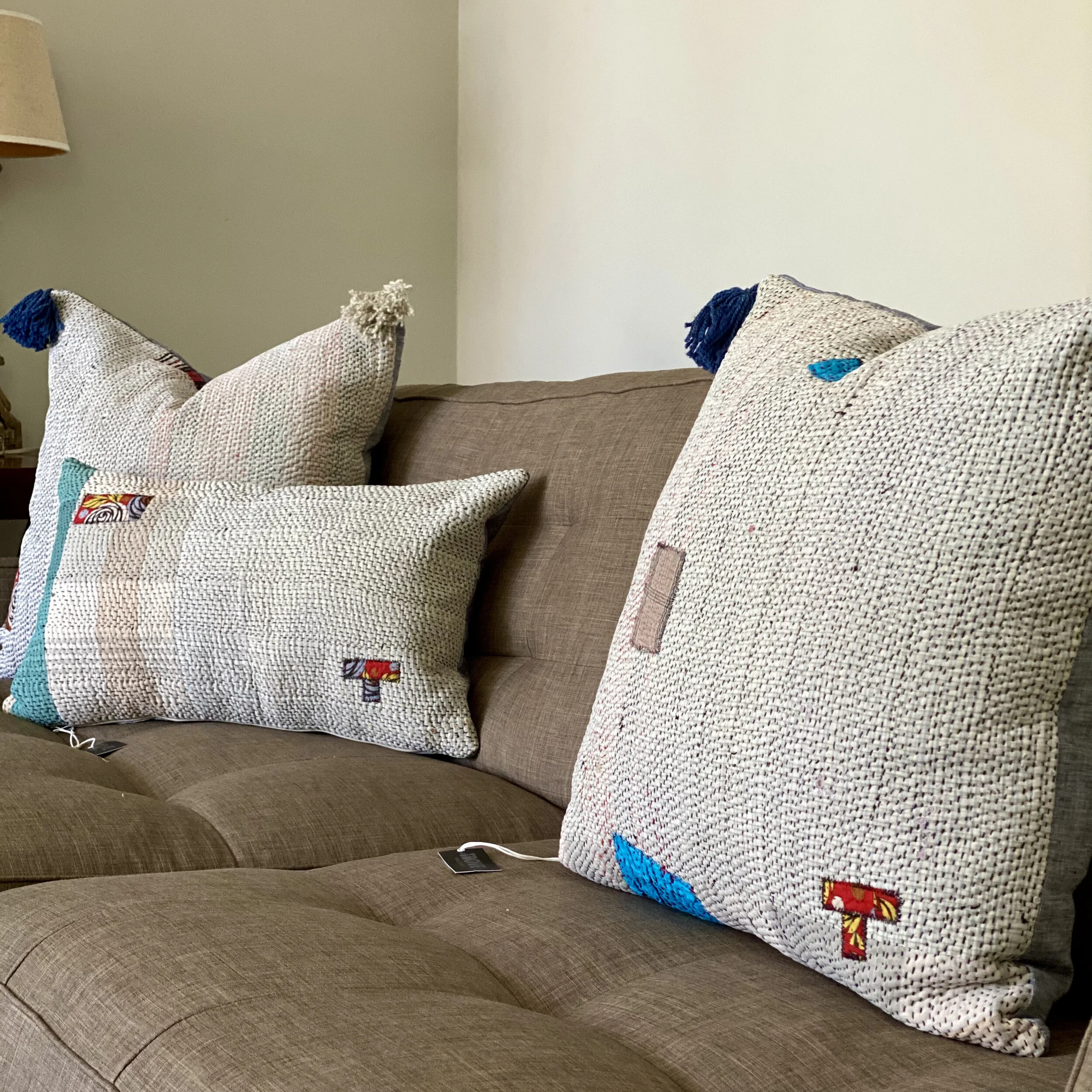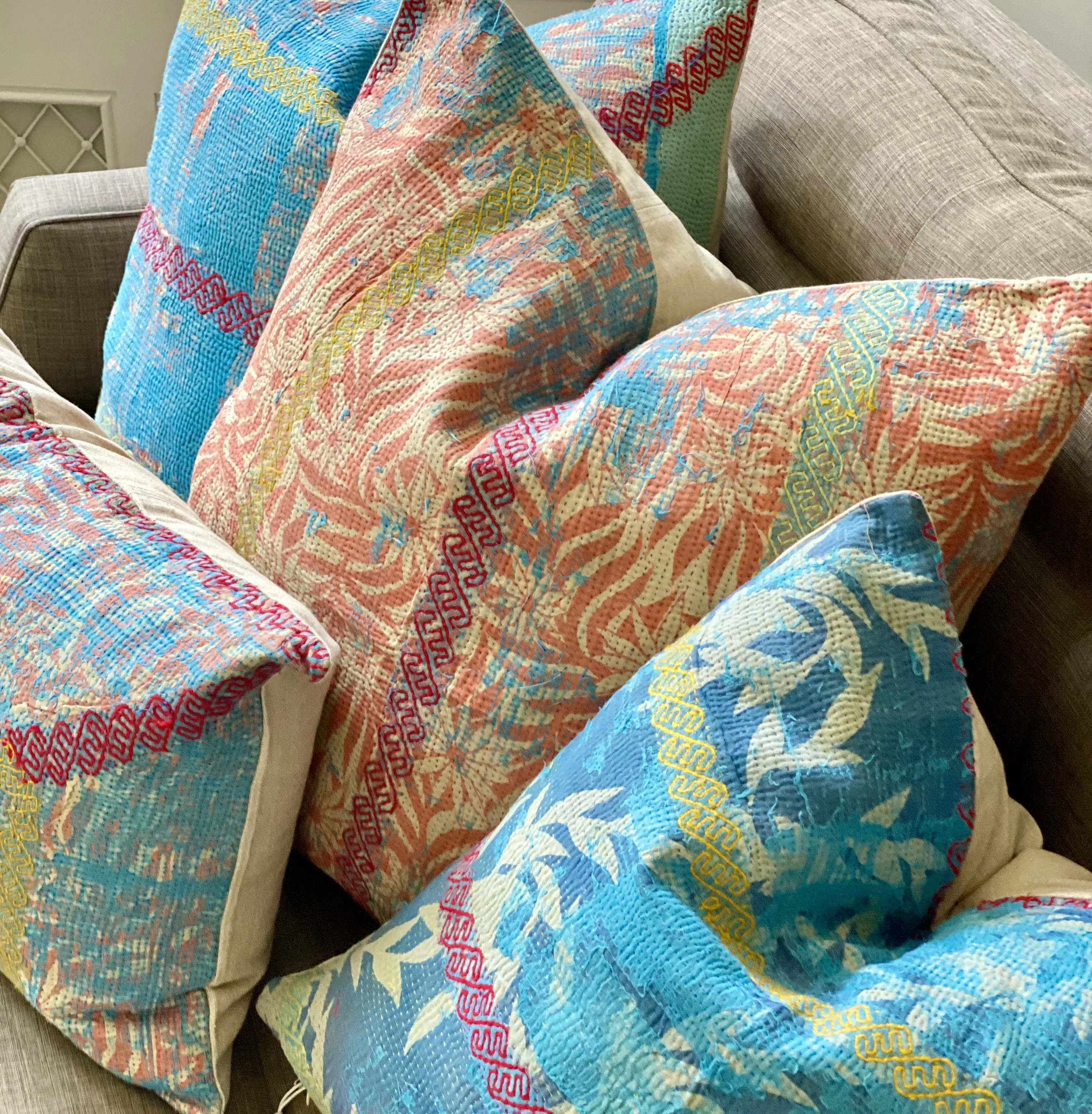 The Face - The face of our pillows are made with organic hand stitched tribal vintage kantha textiles.