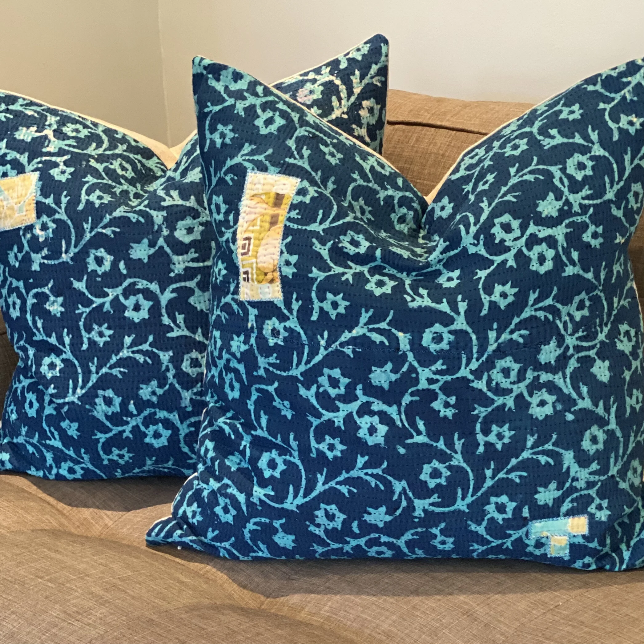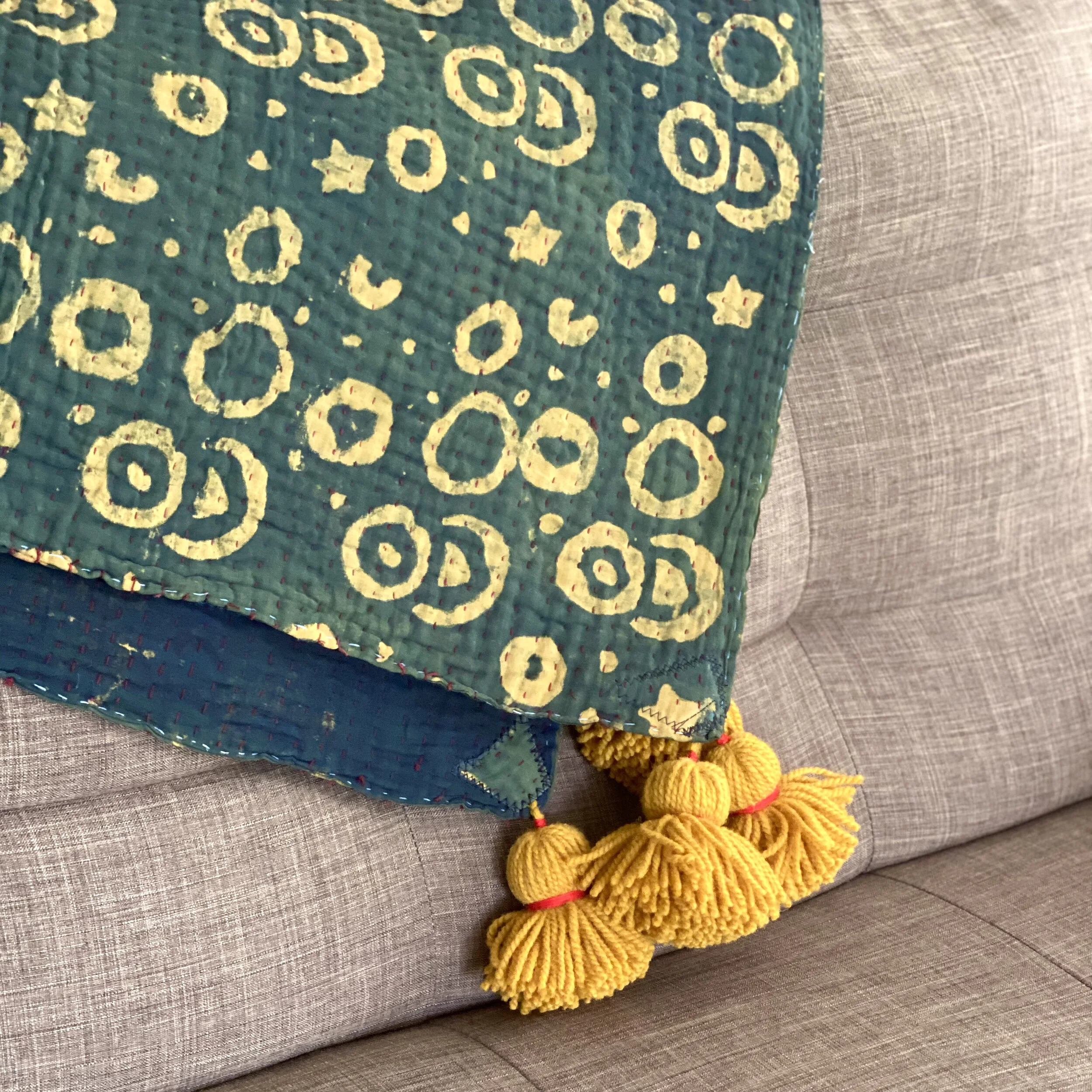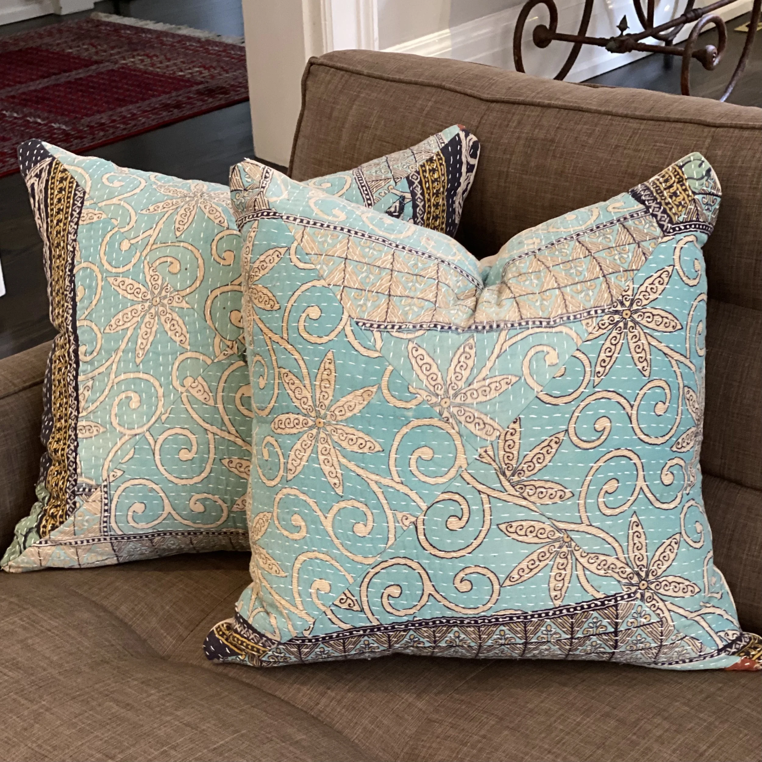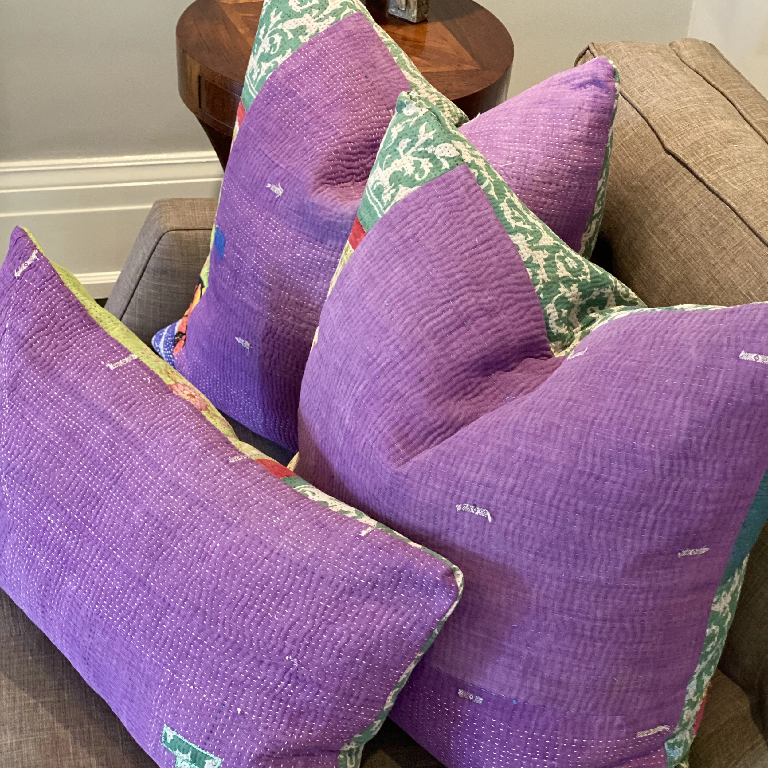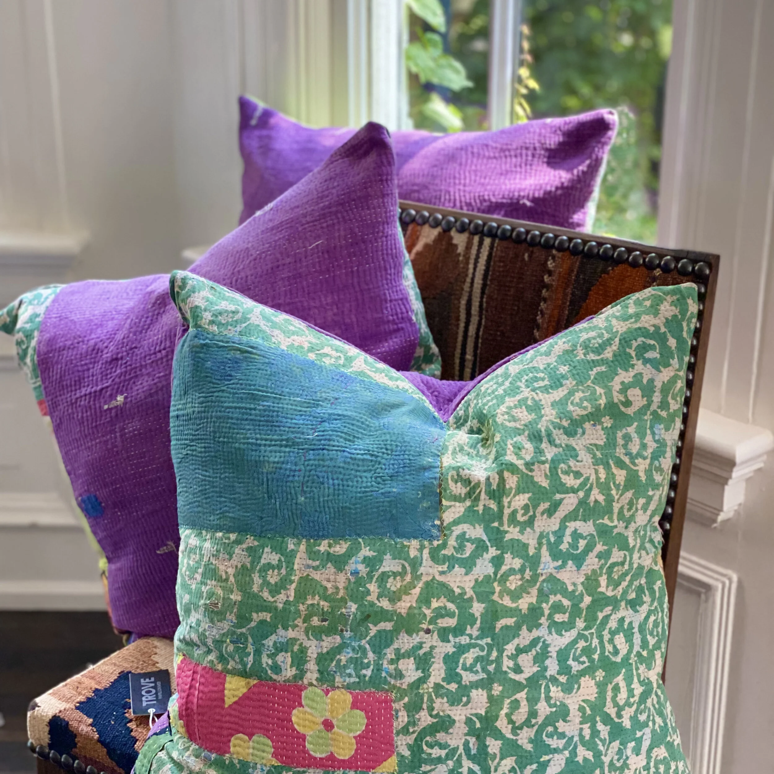 The Face - The face of our pillows are made with organic hand stitched tribal vintage kantha textiles.