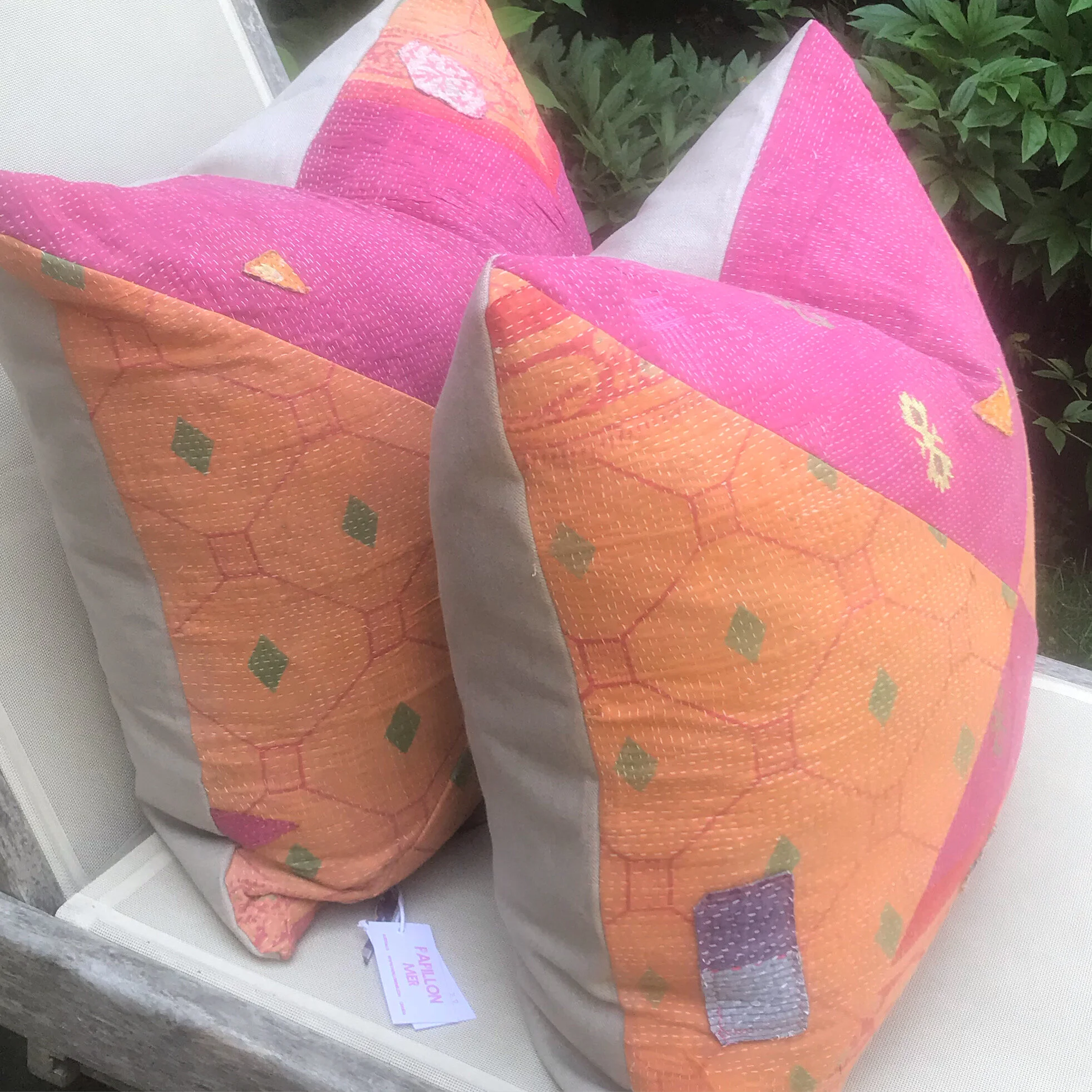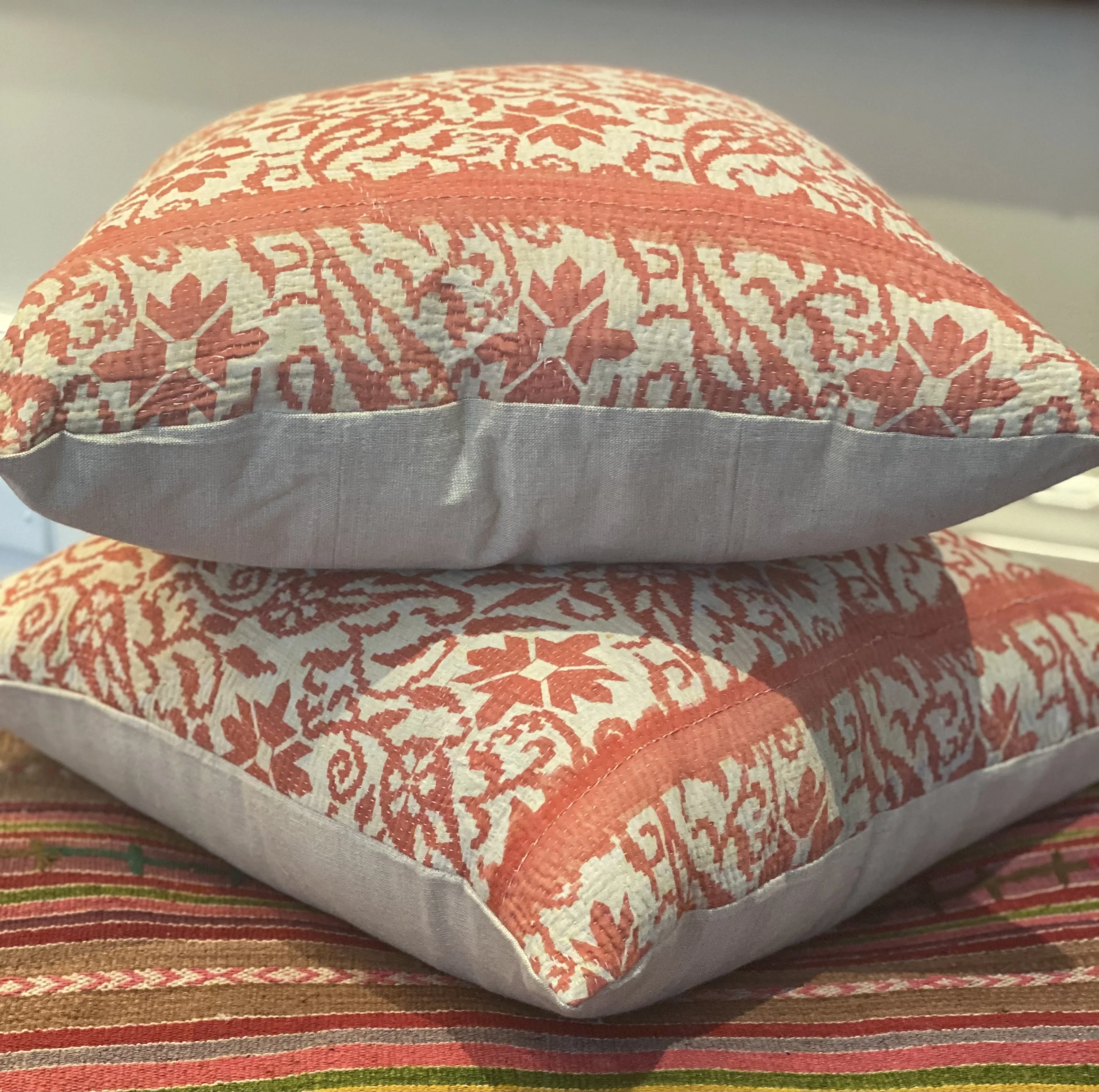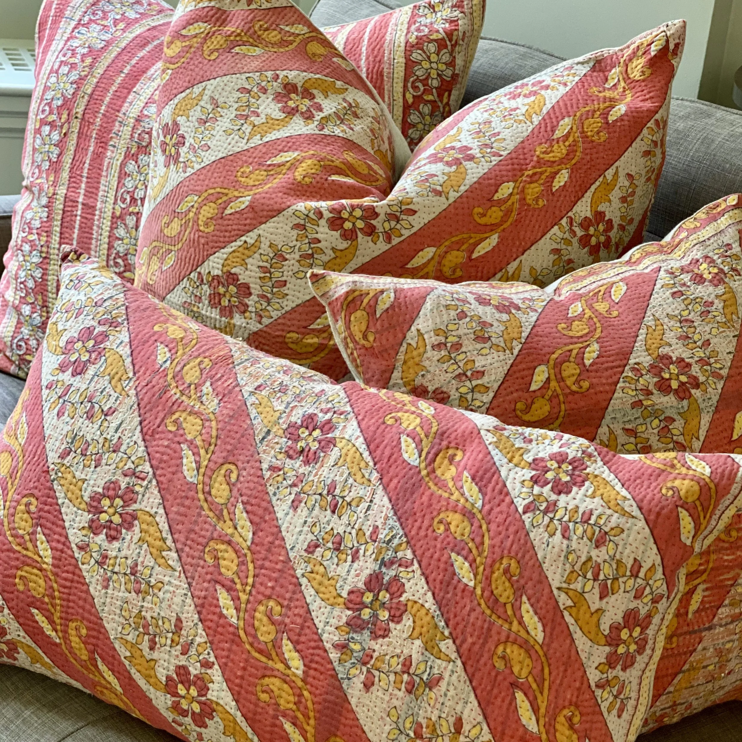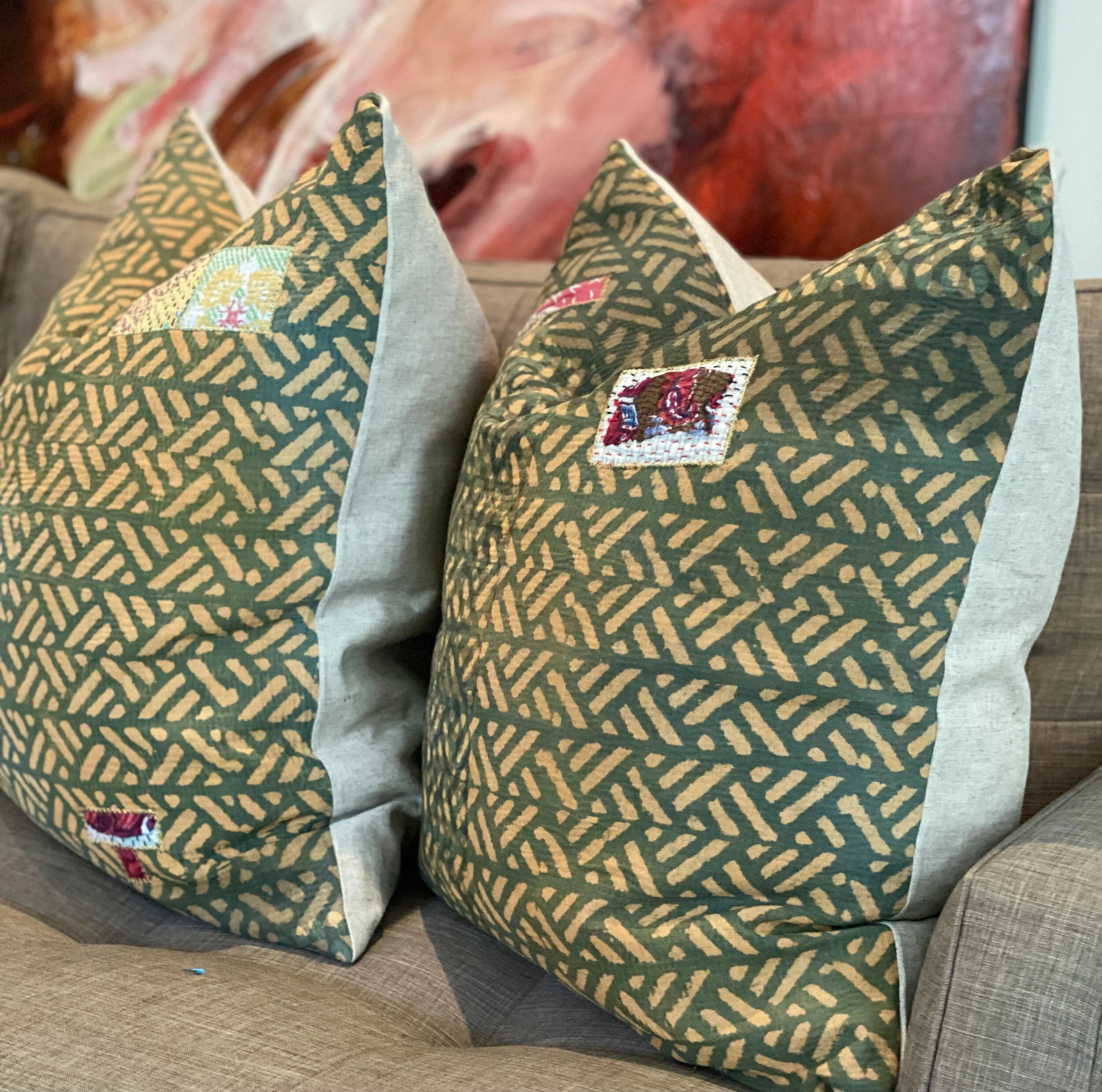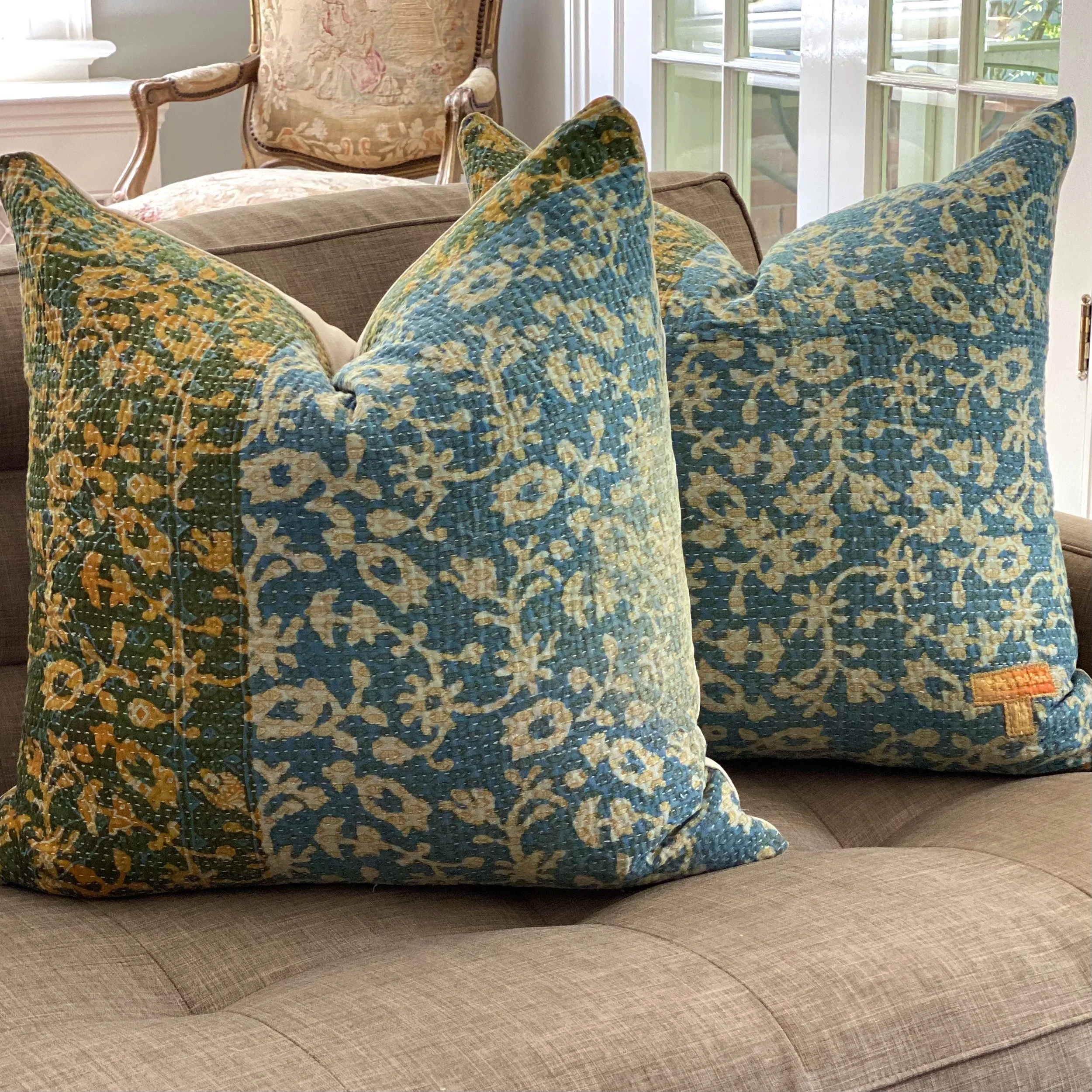 The Face - The face of our pillows are made with organic hand stitched tribal vintage kantha textiles.