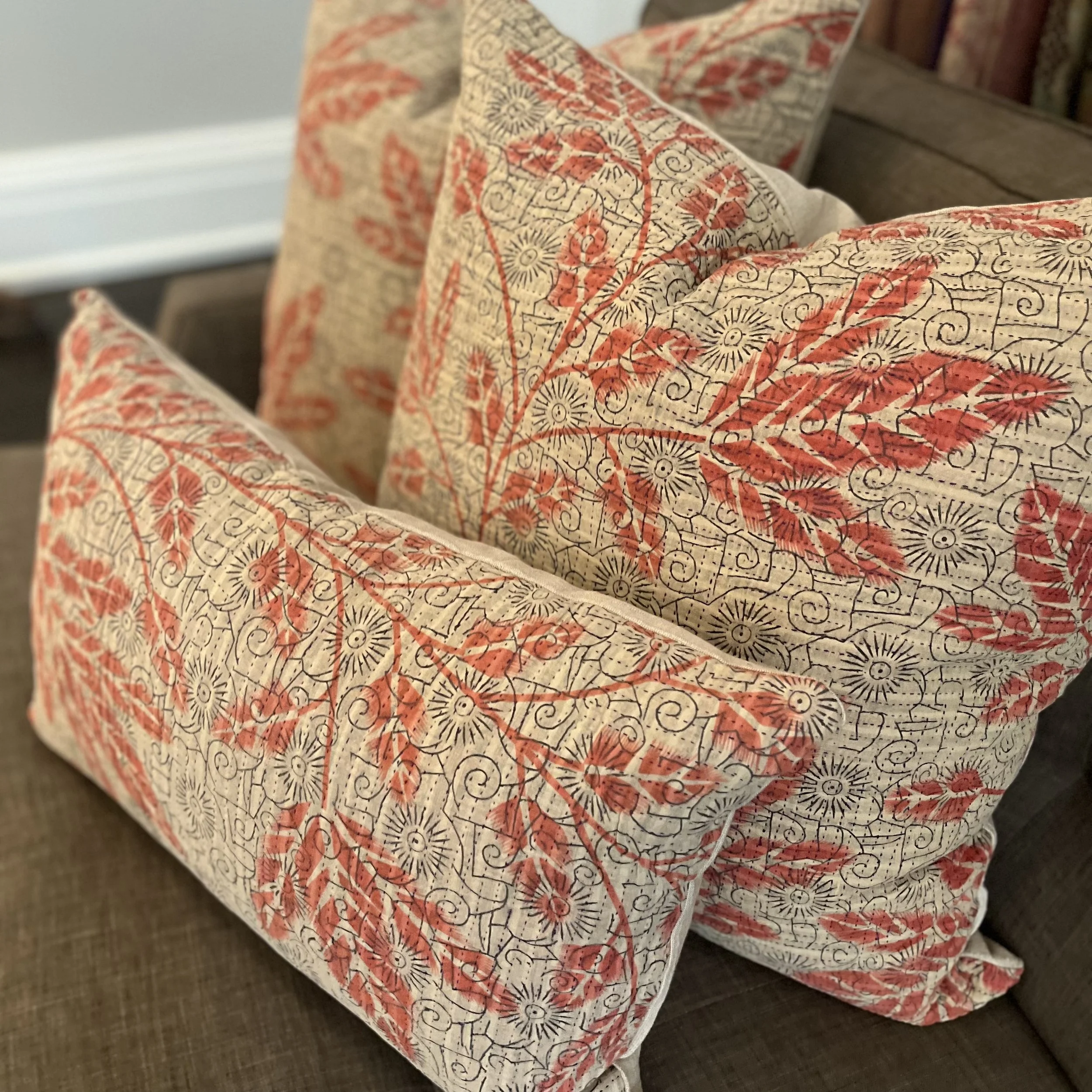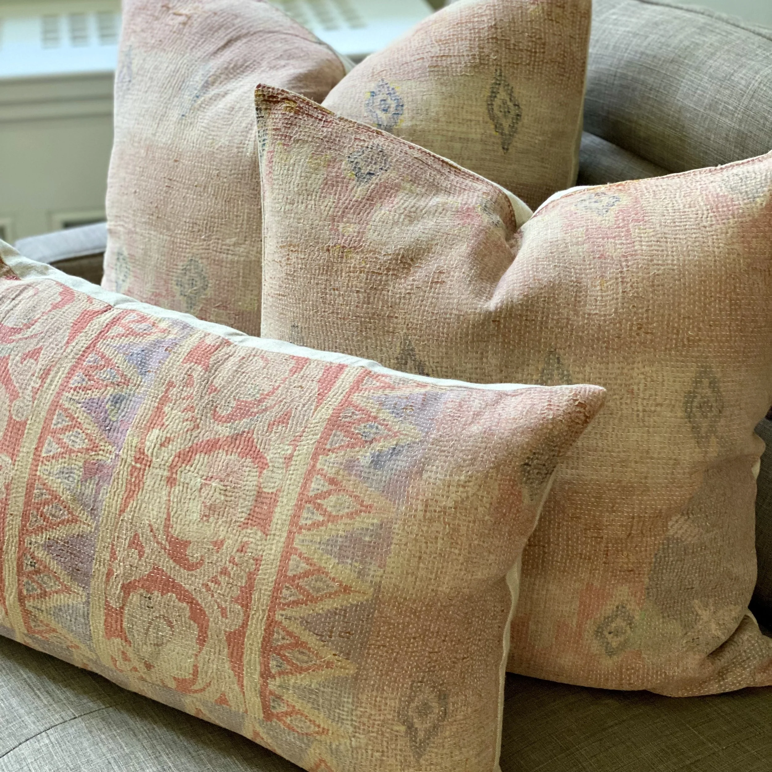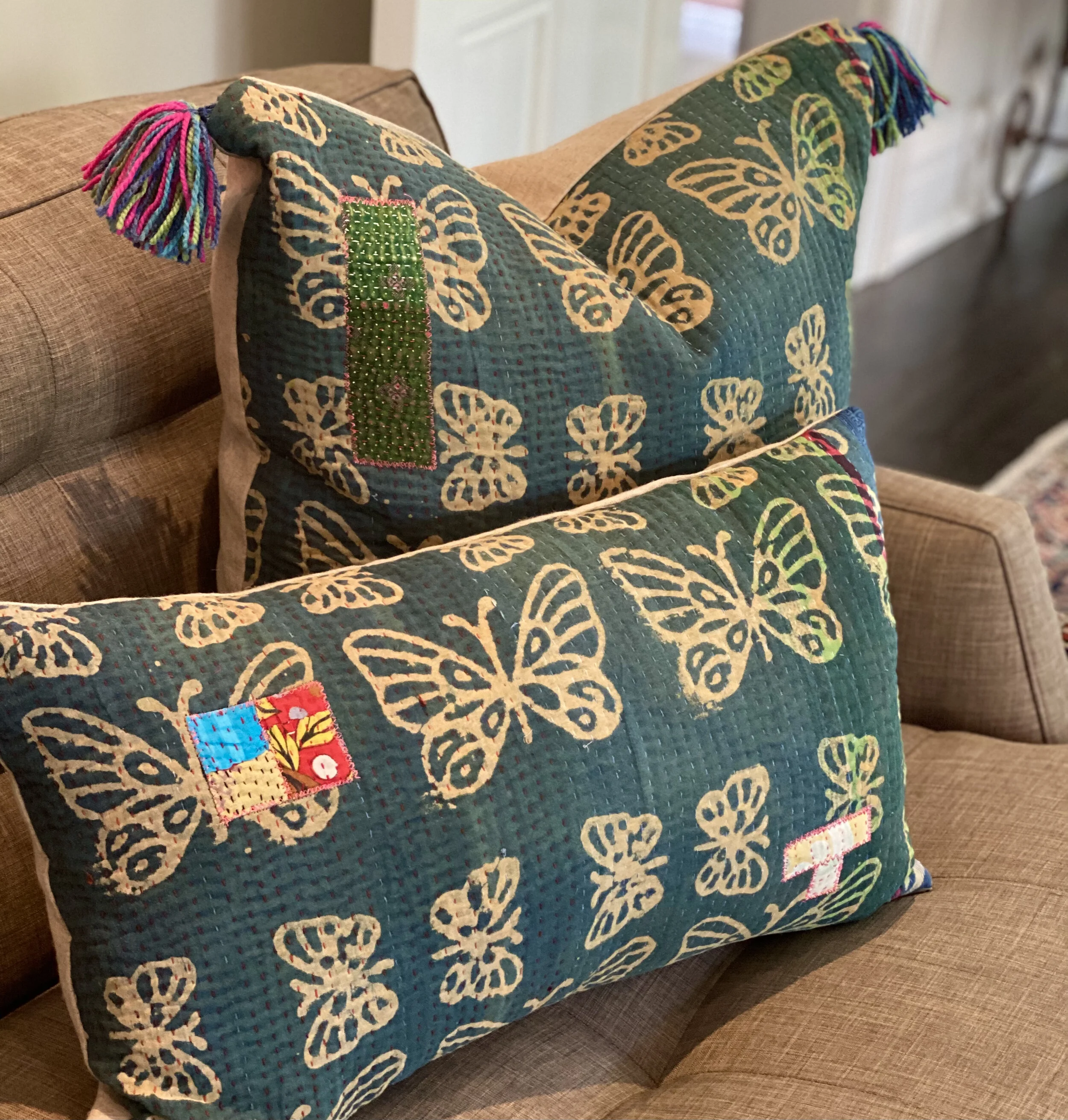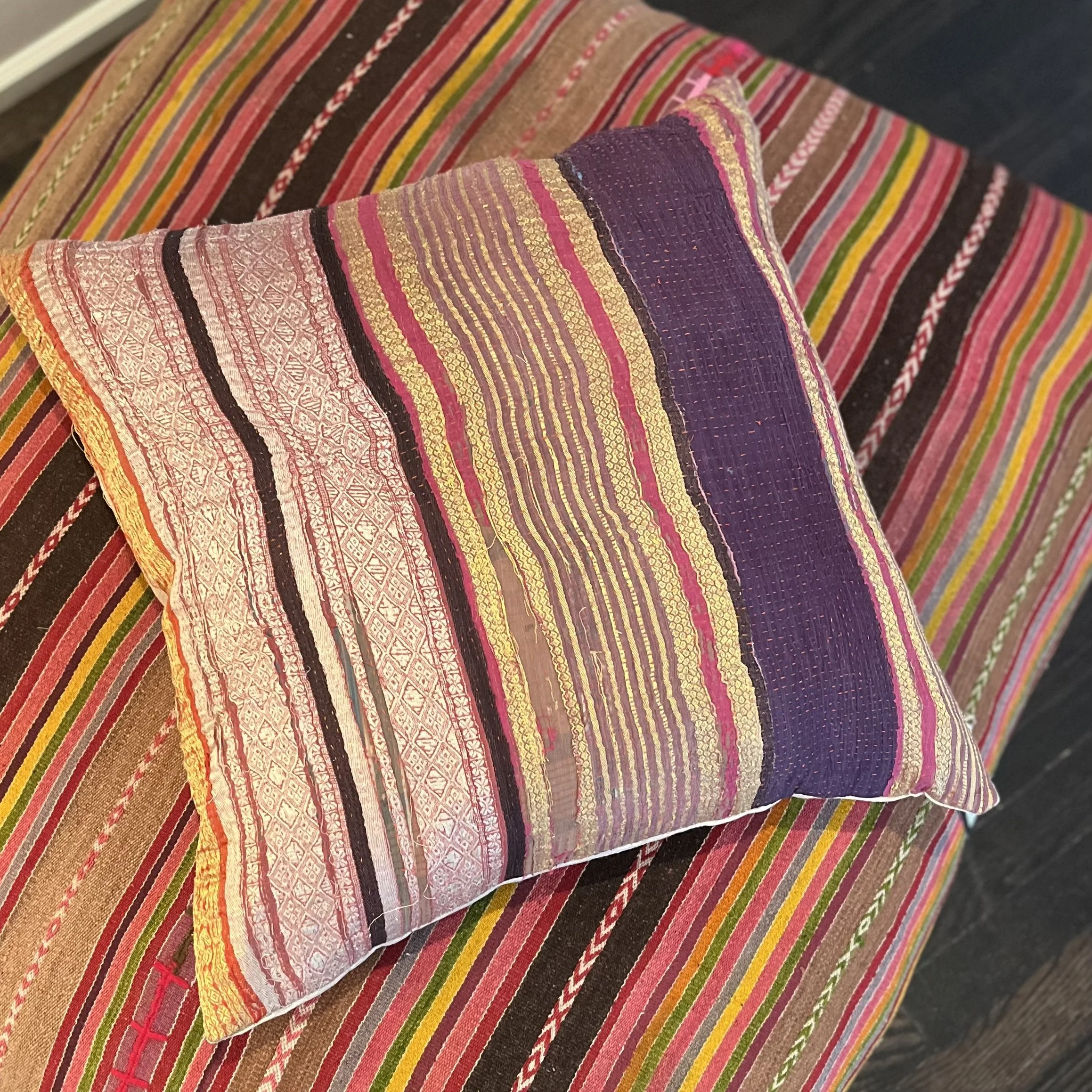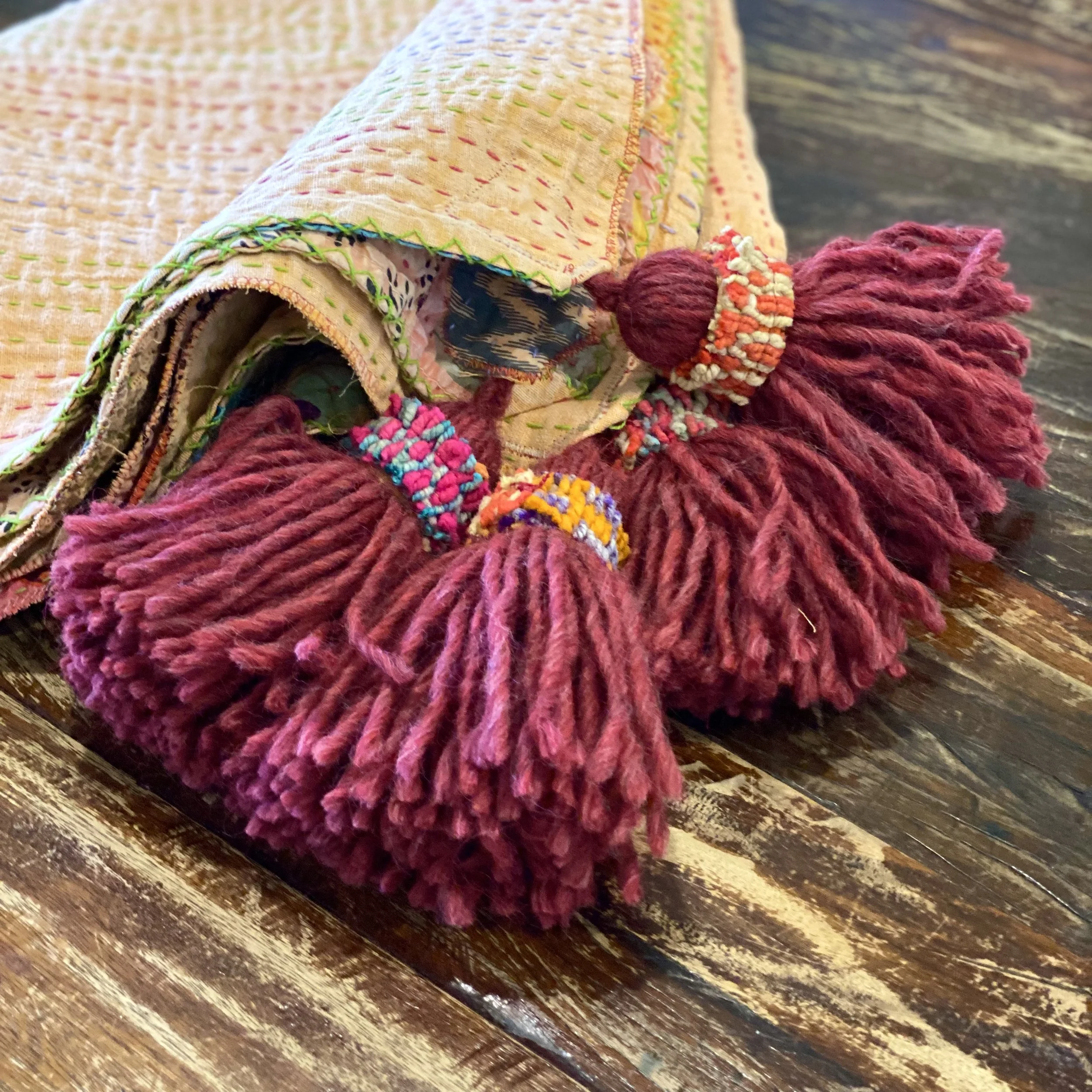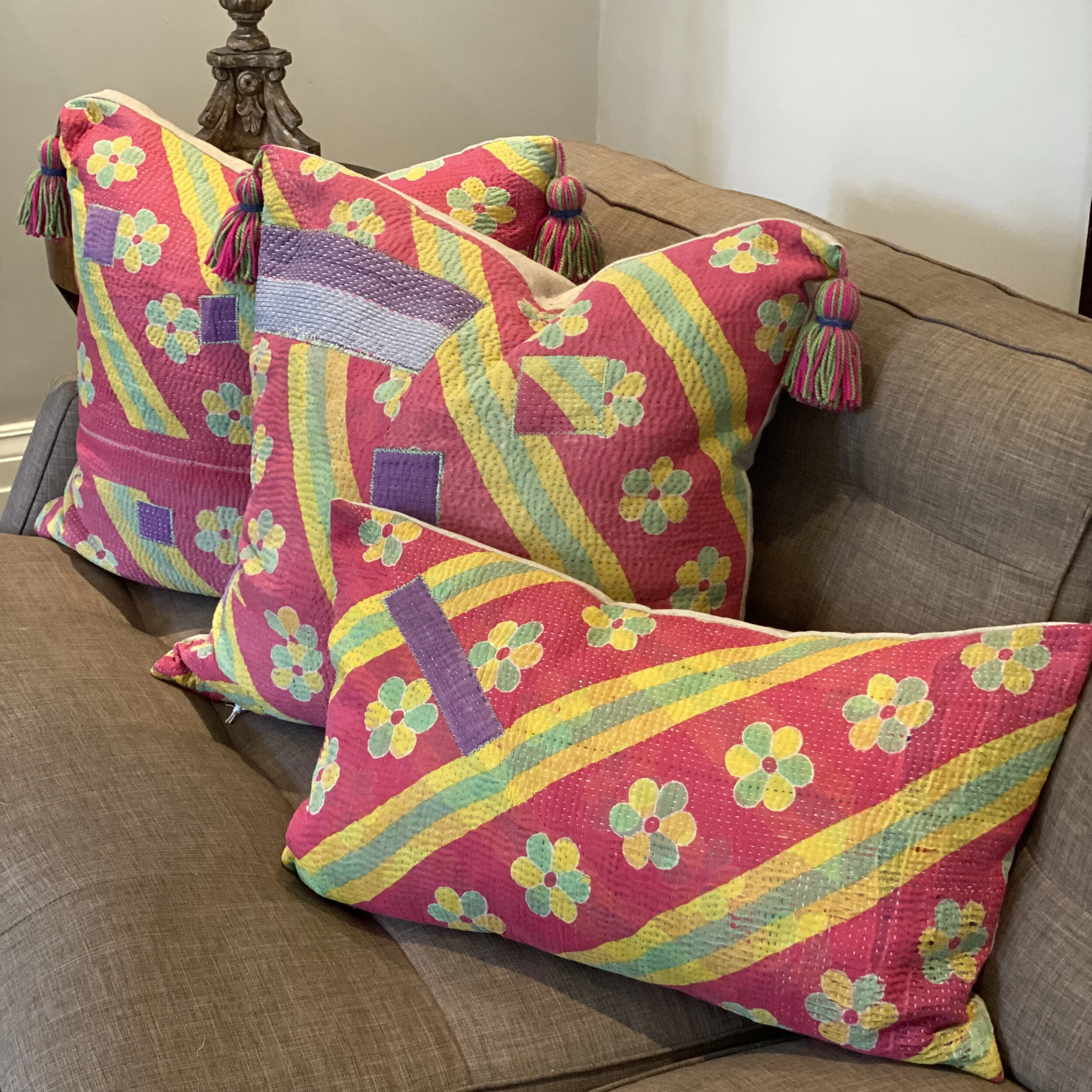 The Face - The face of our pillows are made with organic hand stitched tribal vintage kantha textiles.