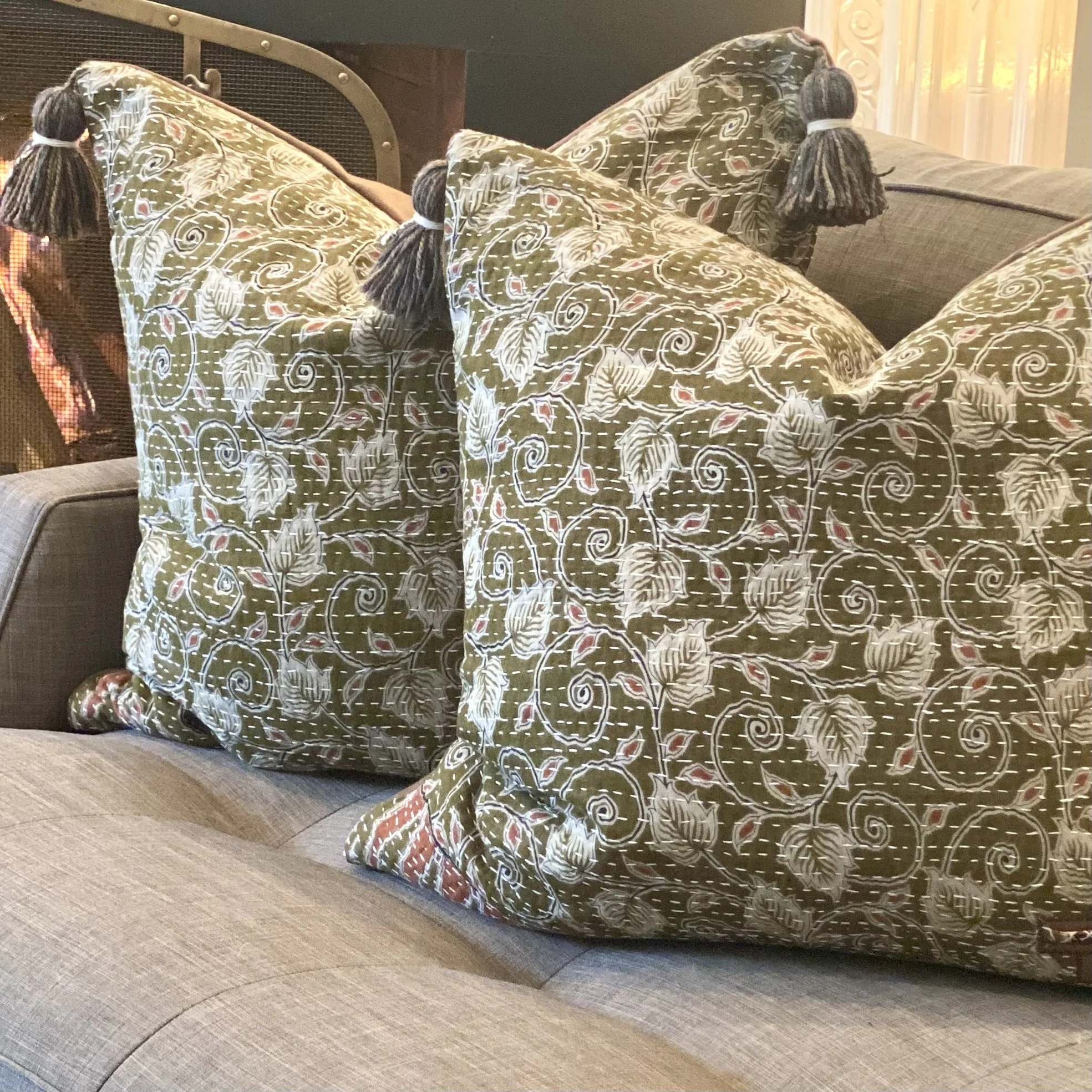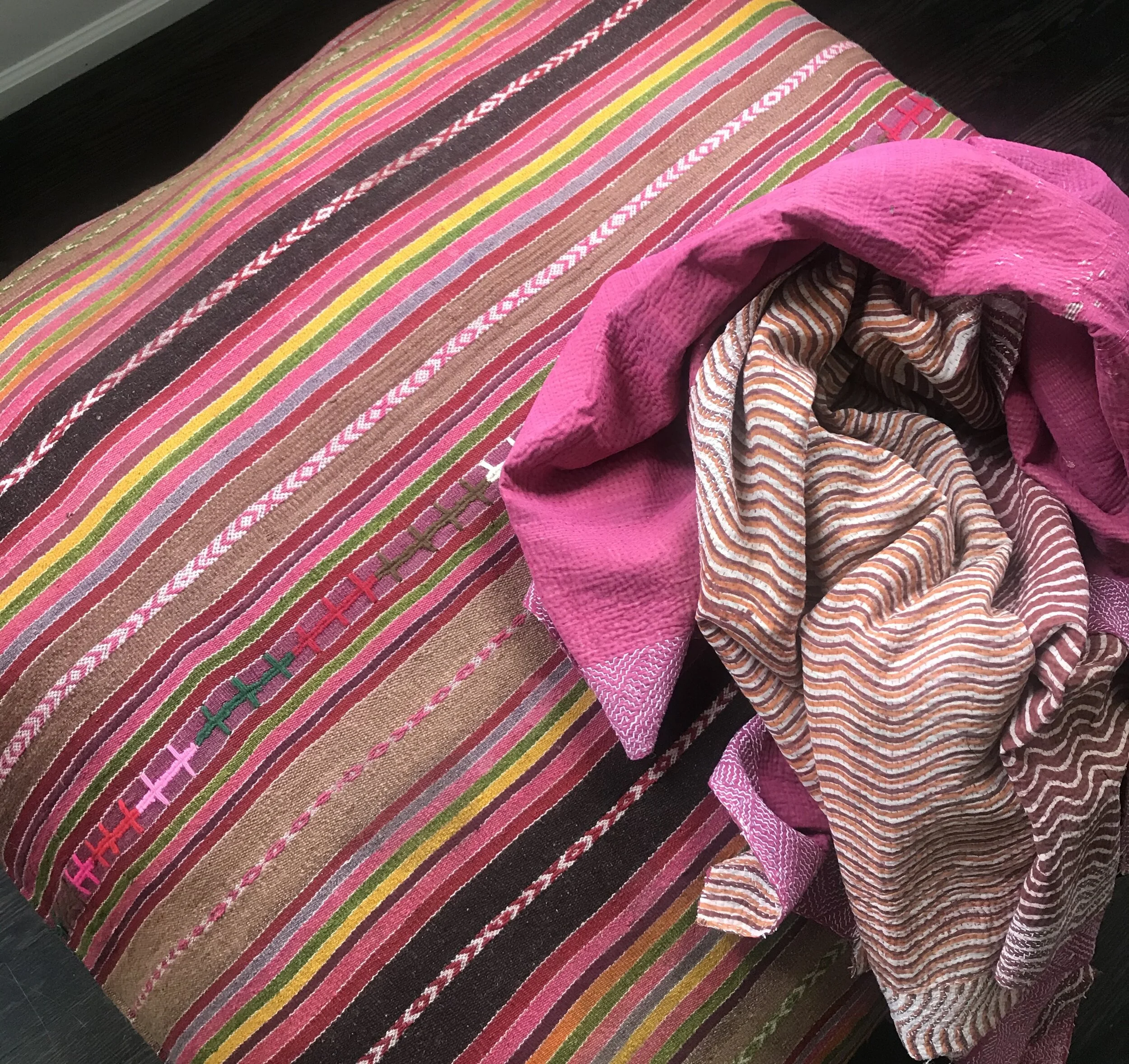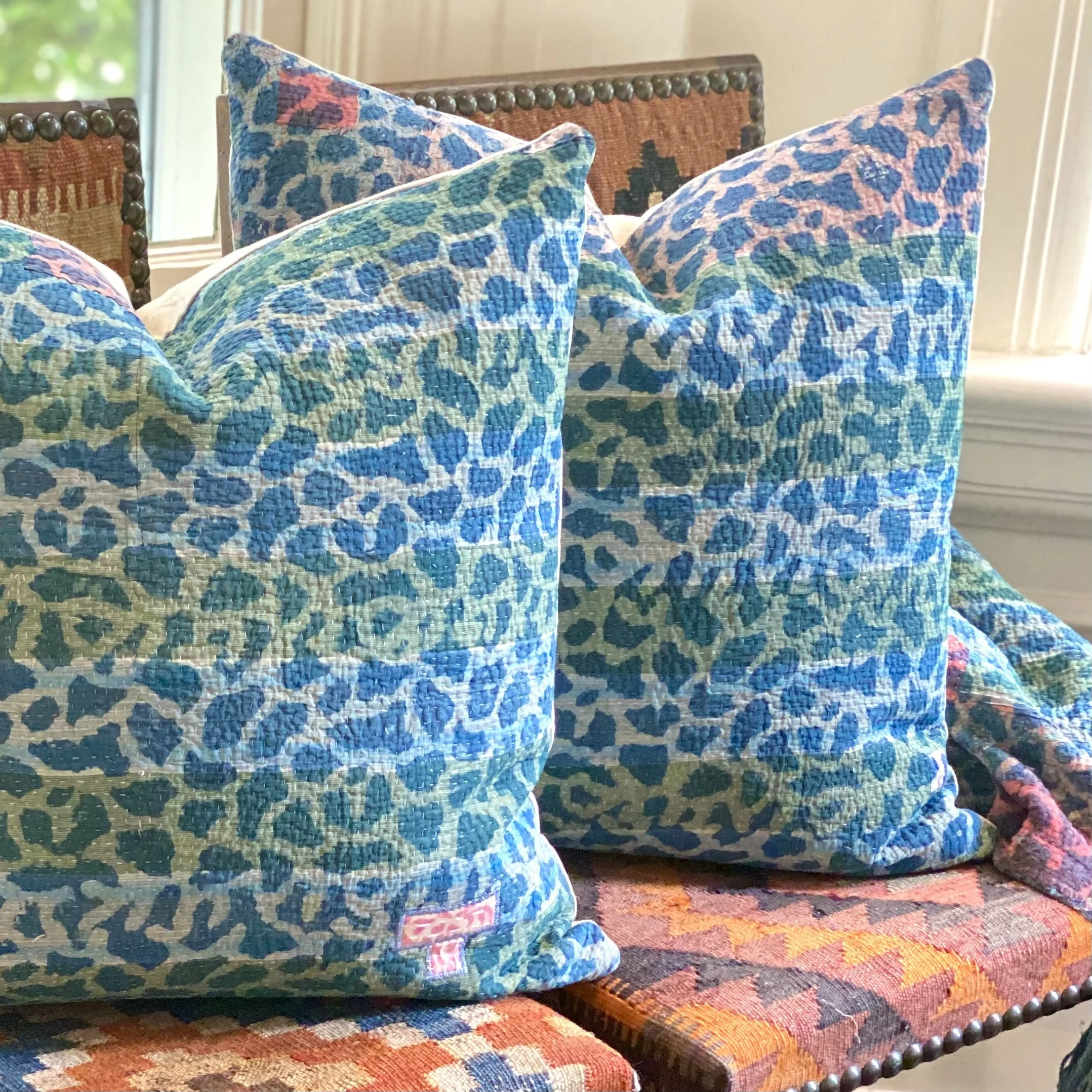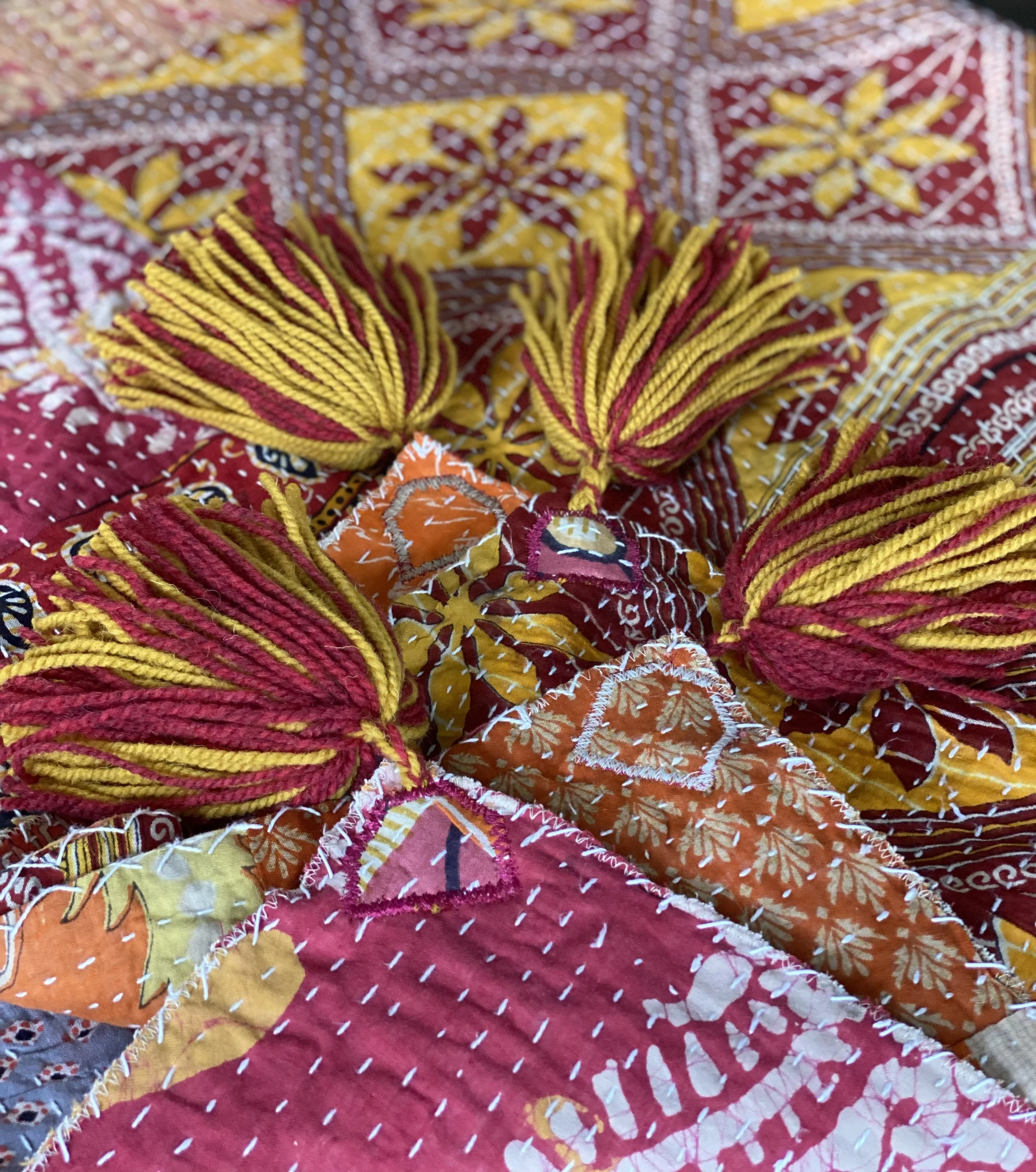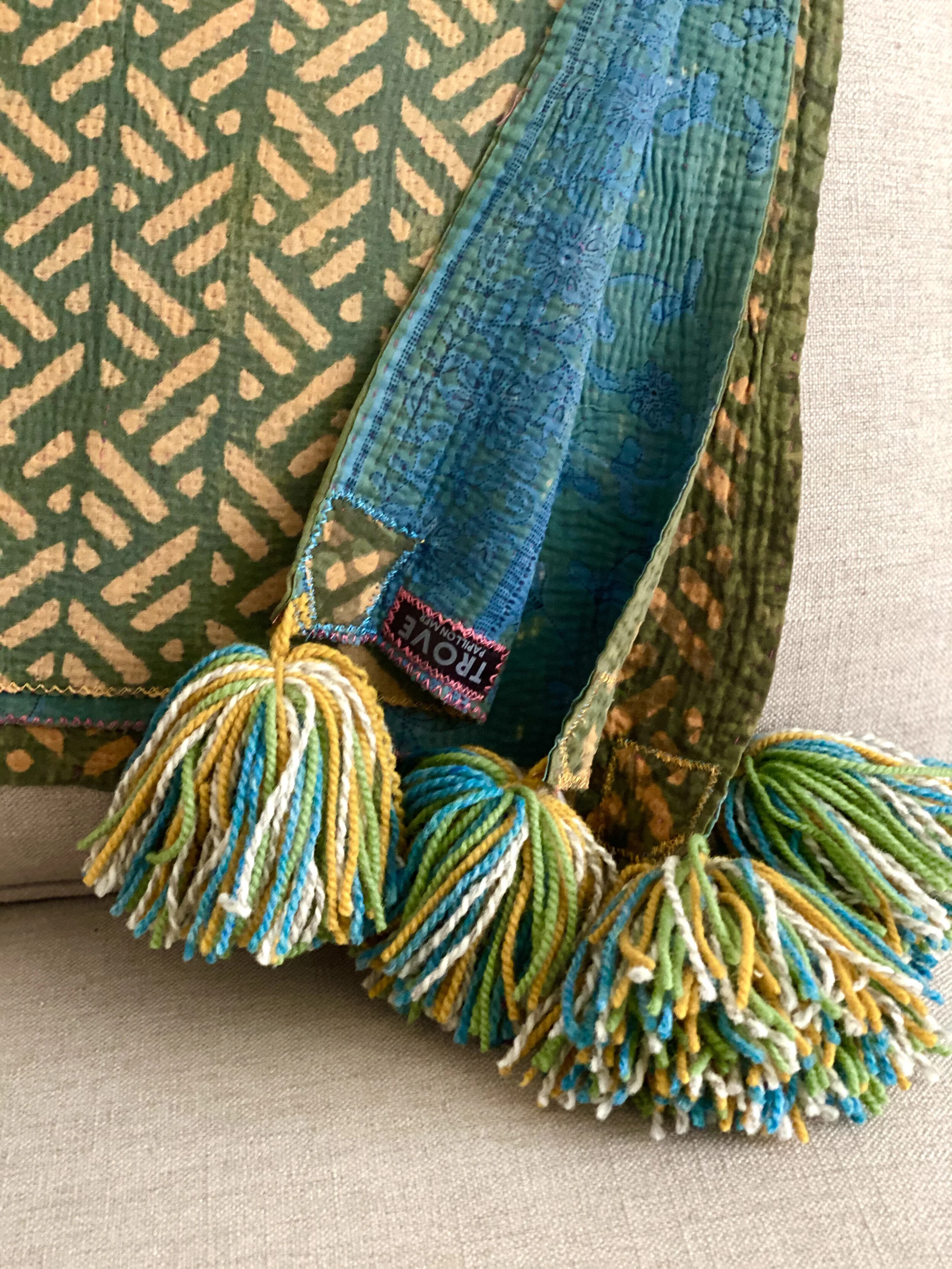 The Face - The face of our pillows are made with organic hand stitched tribal vintage kantha textiles.