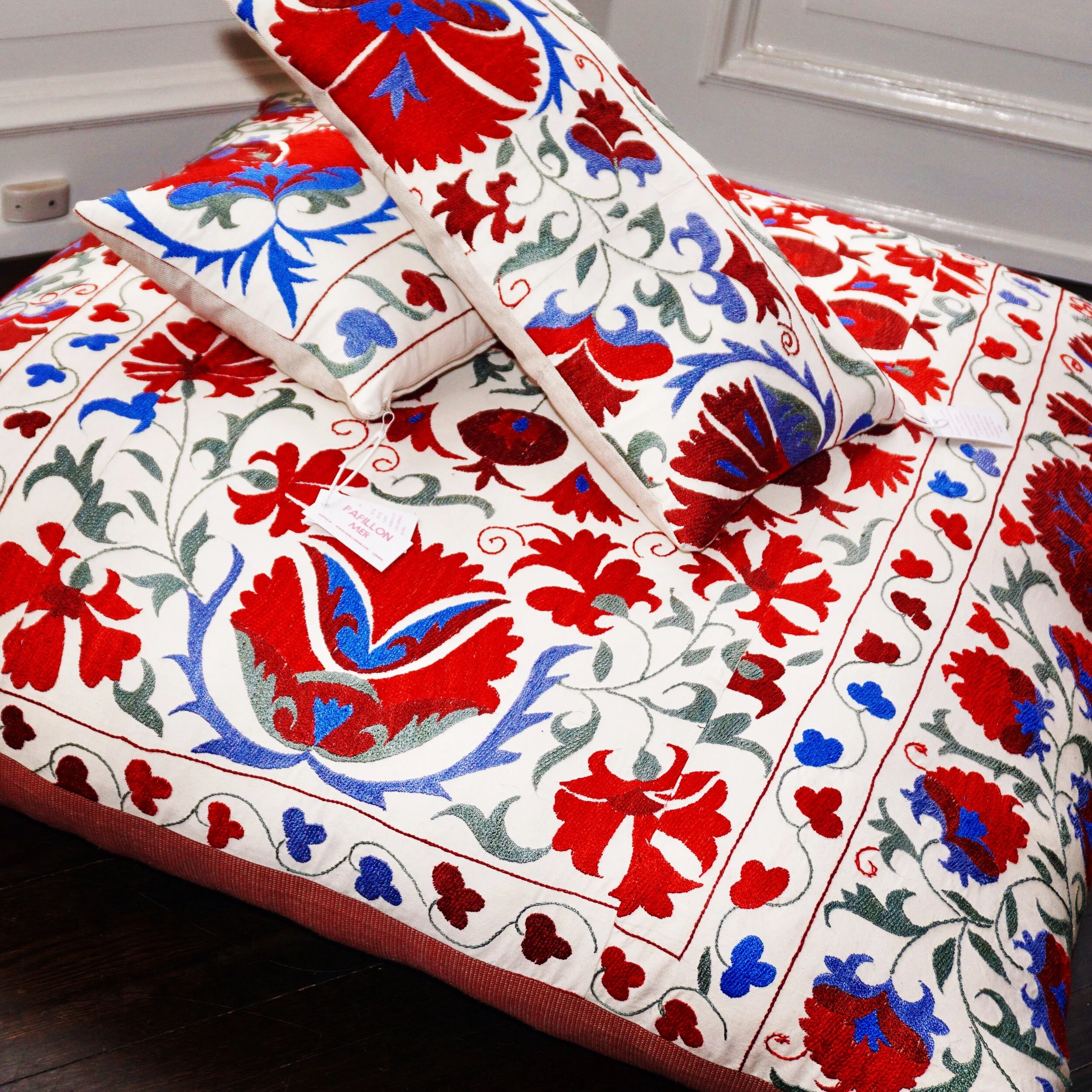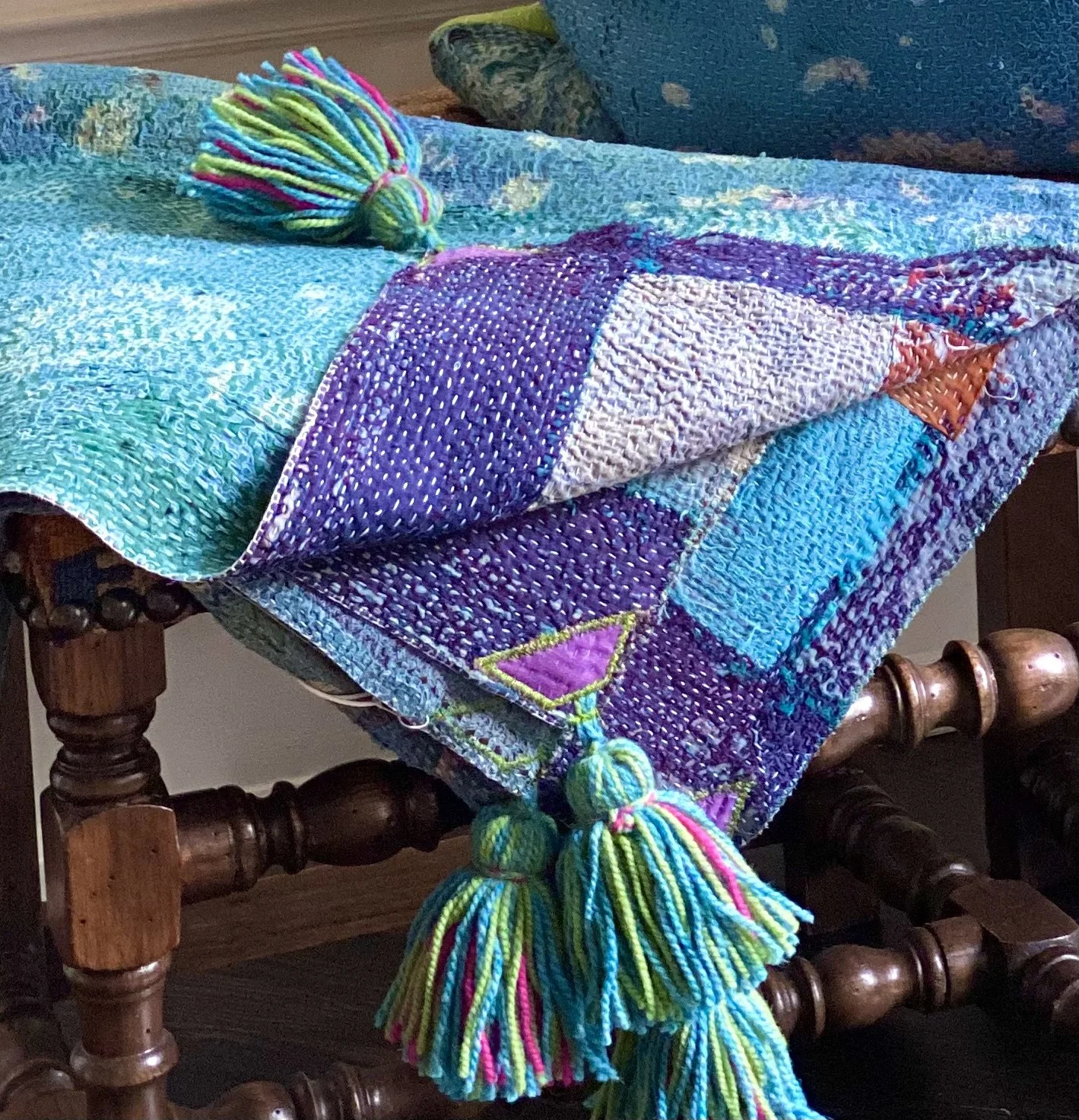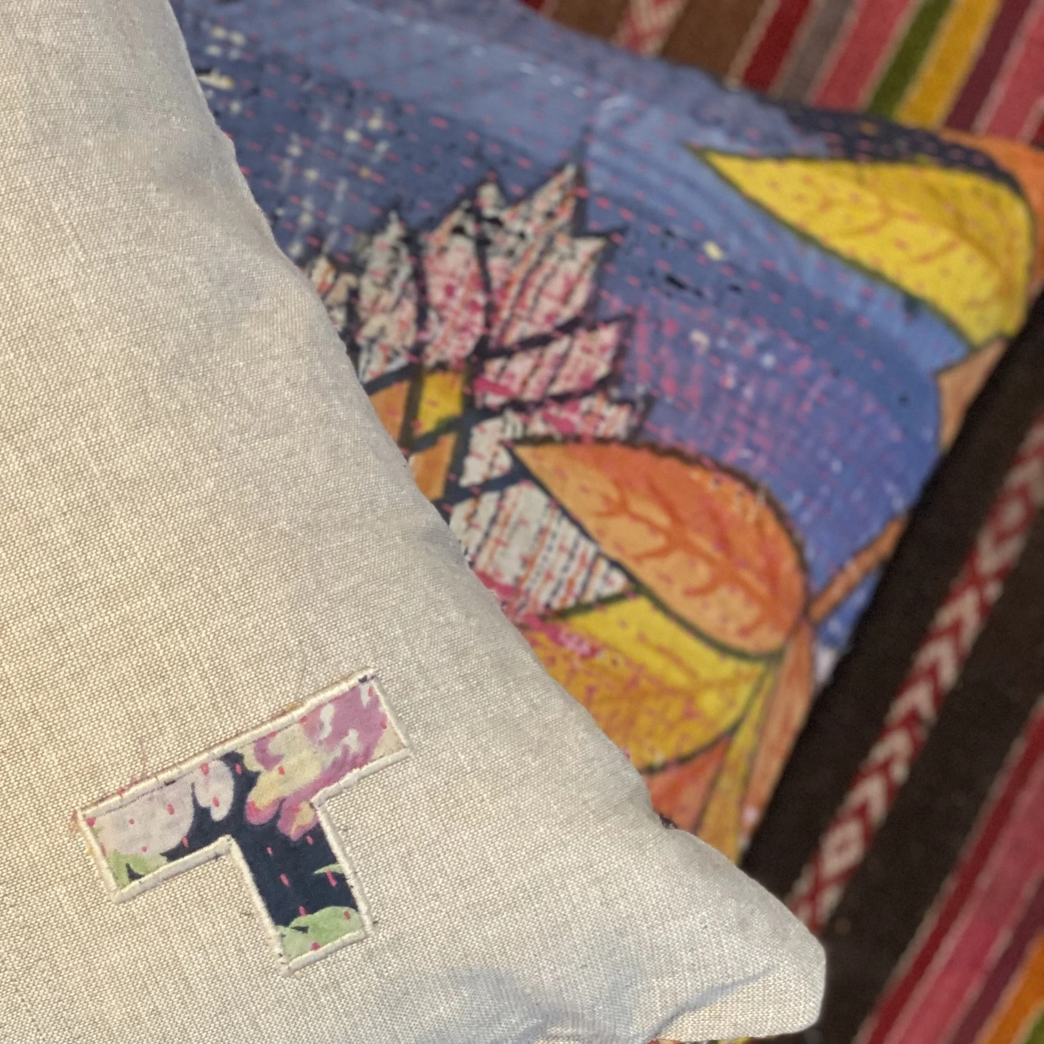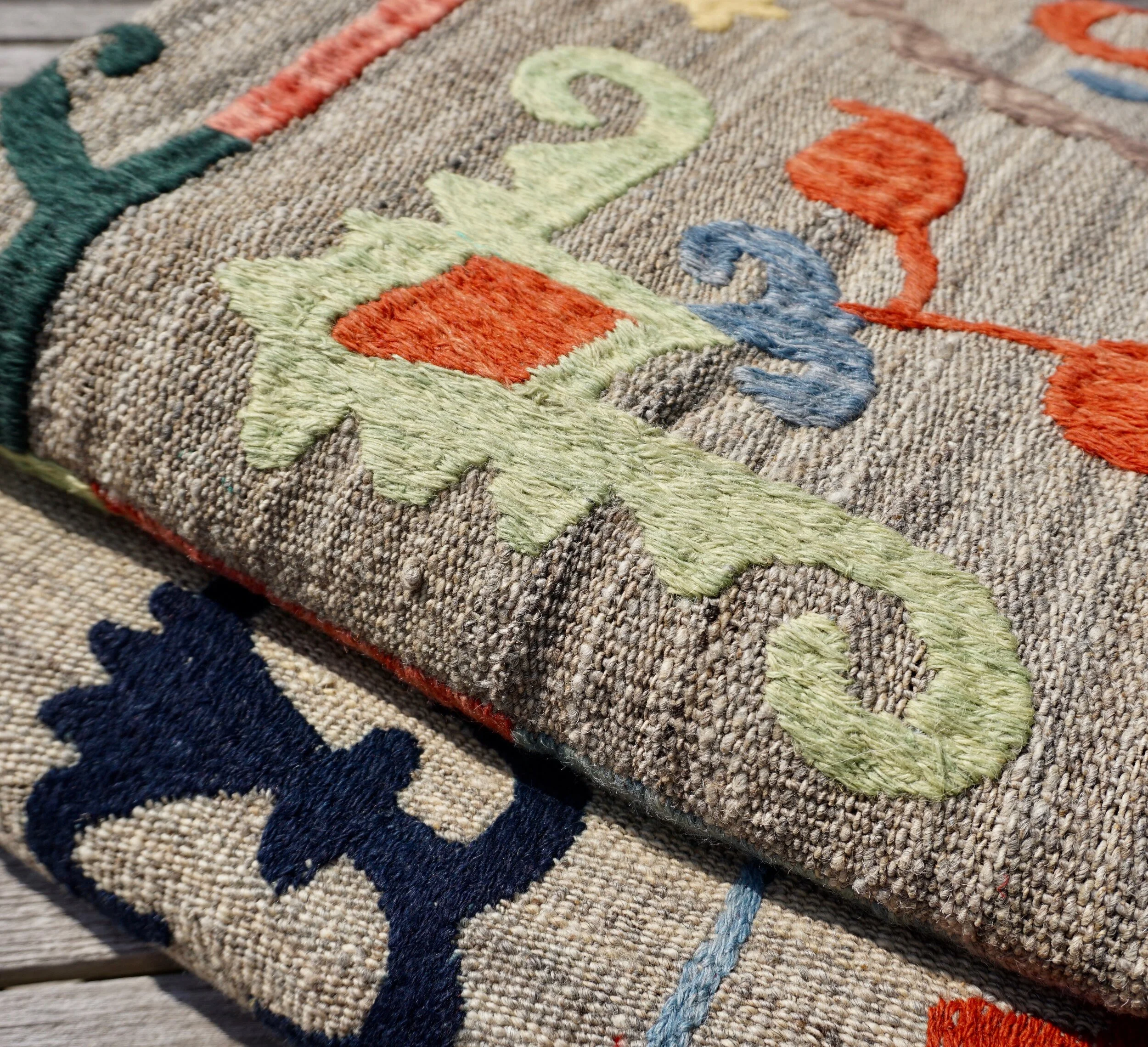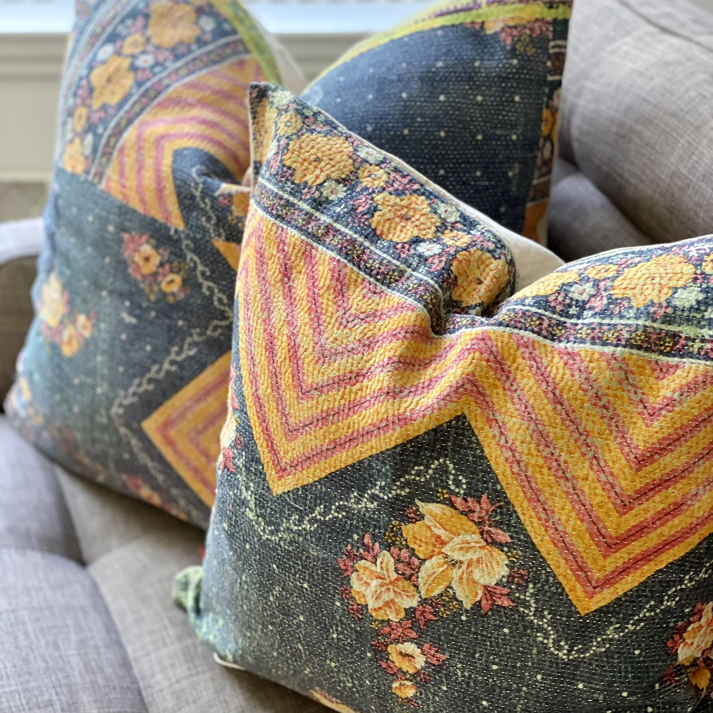 The Face - The face of our pillows are made with organic hand stitched tribal vintage kantha textiles.